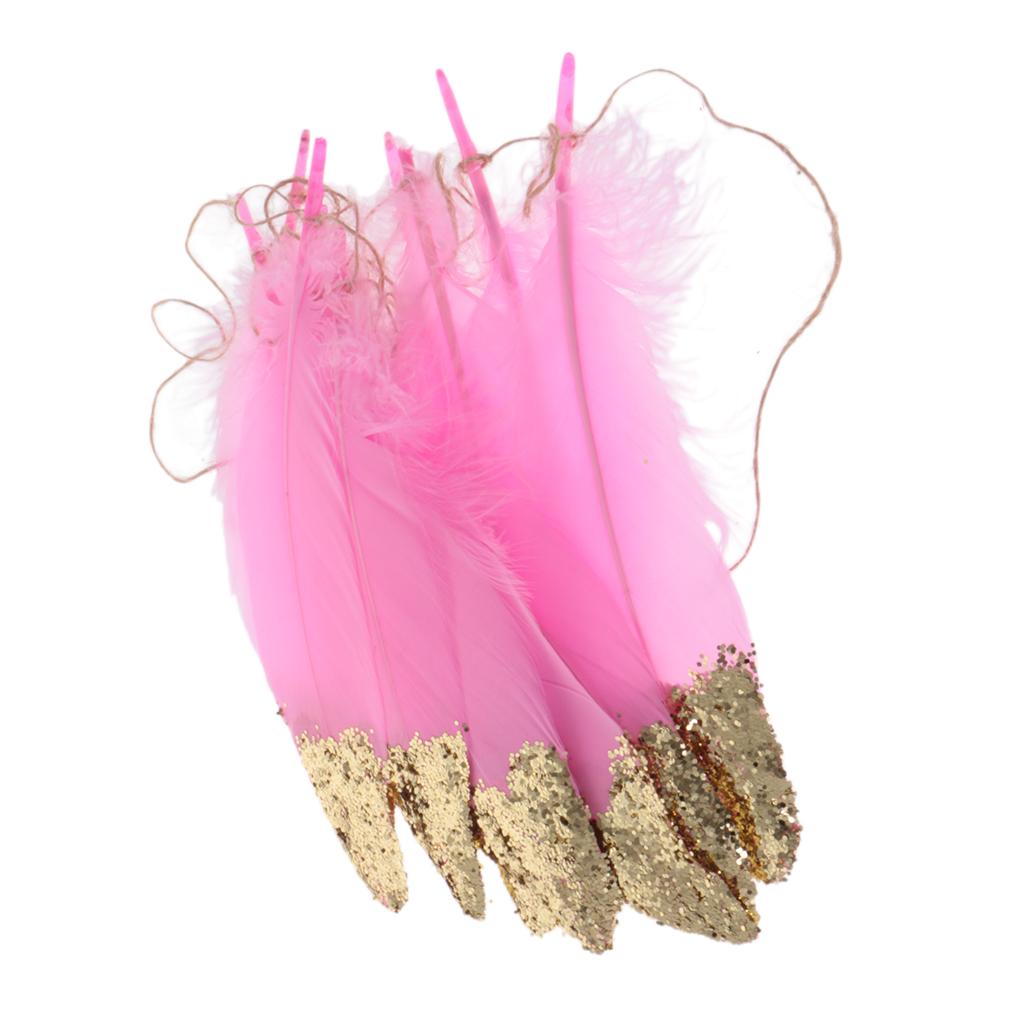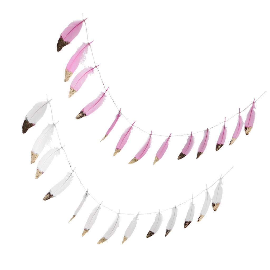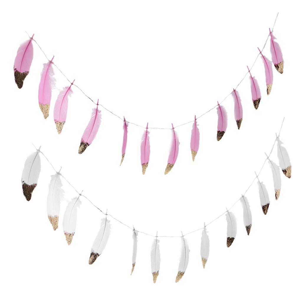 2x Boho Gold Dipped Pink /White Feather Bunting Tassel Garland Hanging Decor