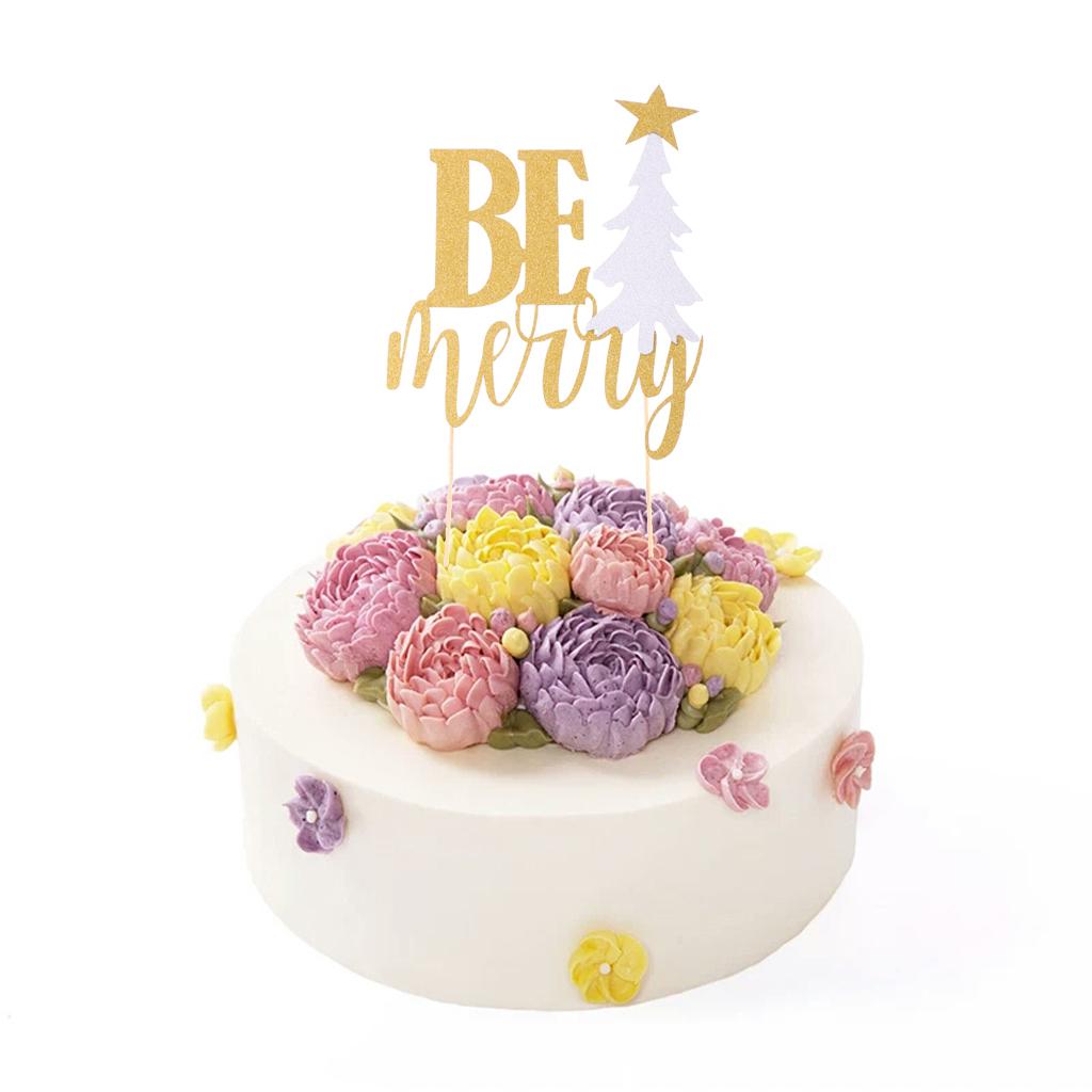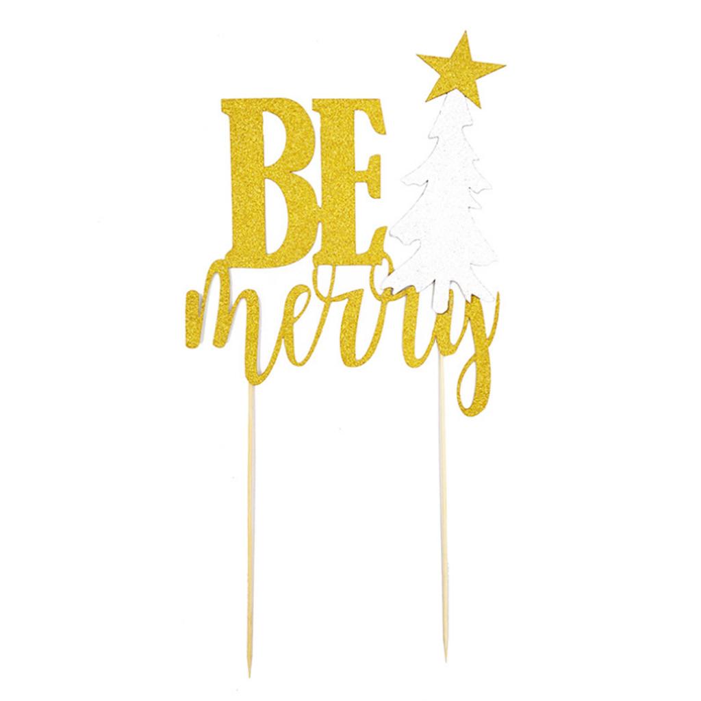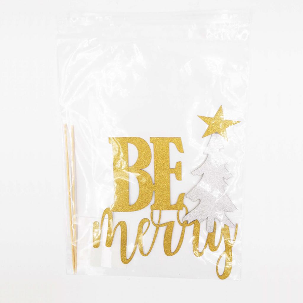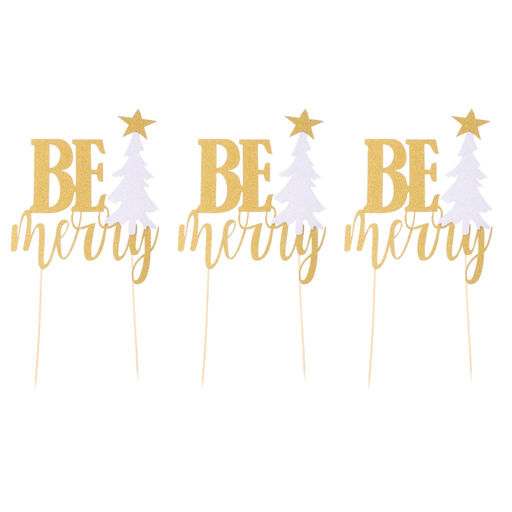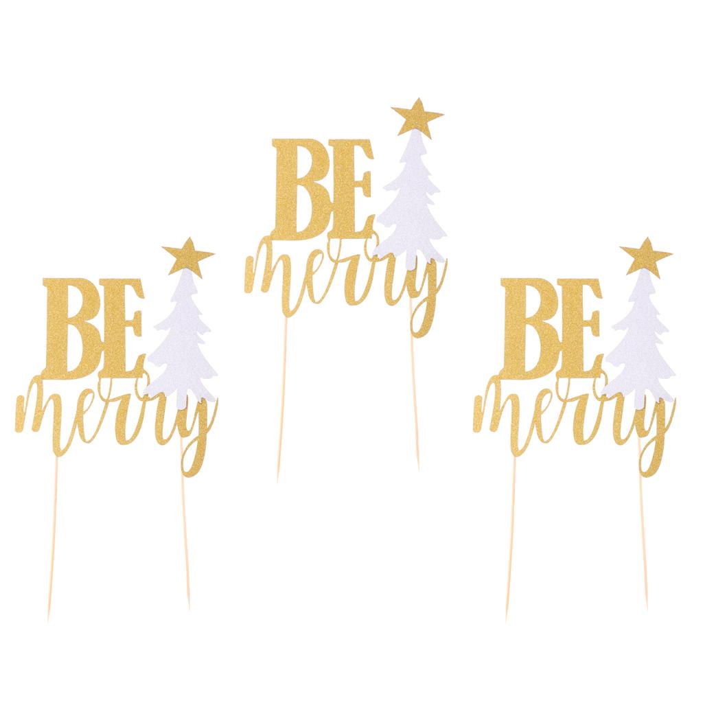 3 Sets Glitter Be Merry Christmas Tree Cake Toppers Xmas Party Decoration