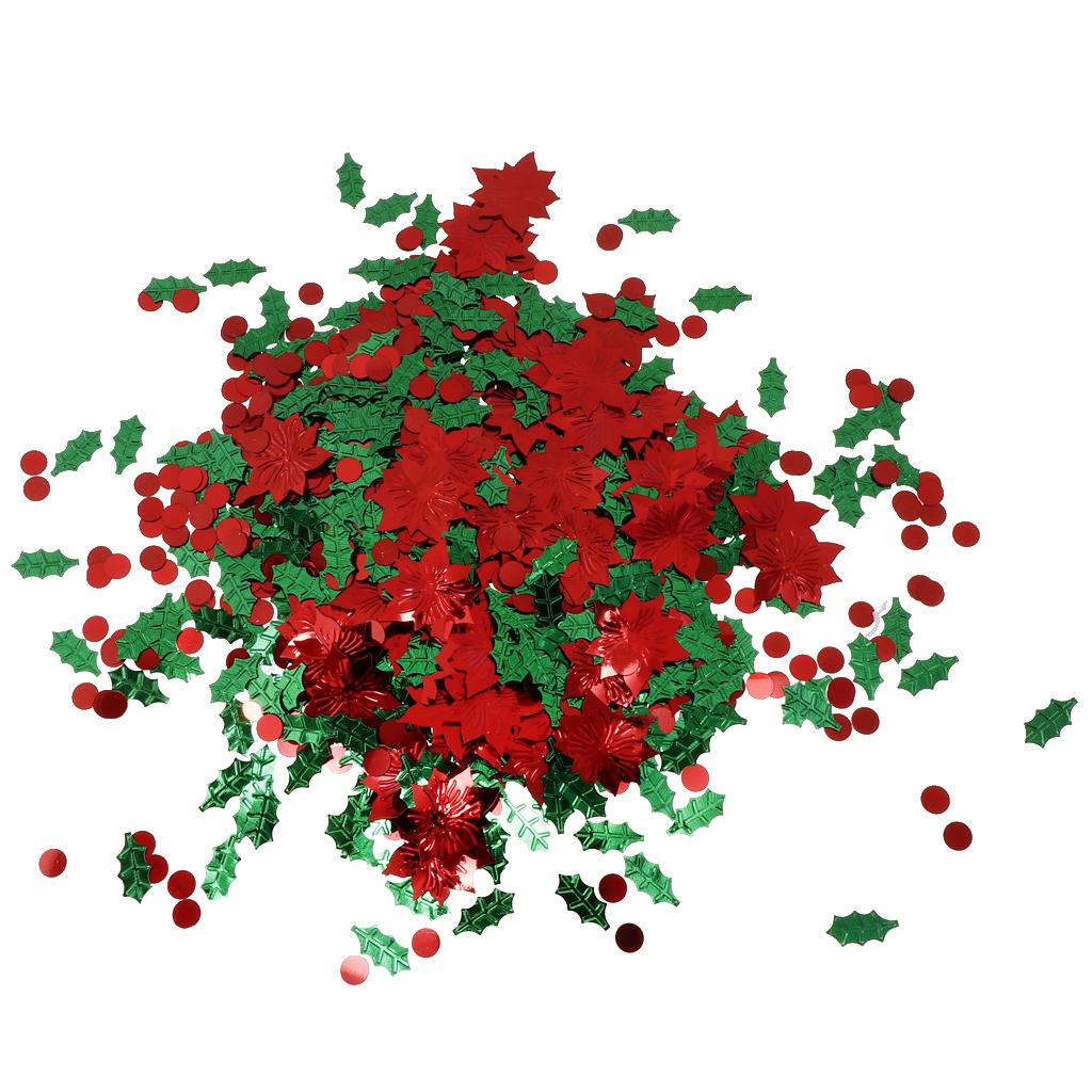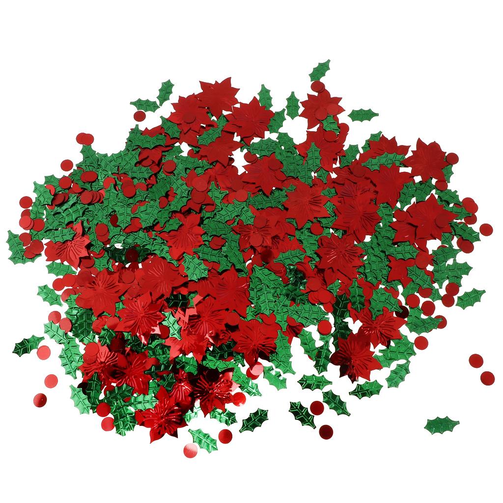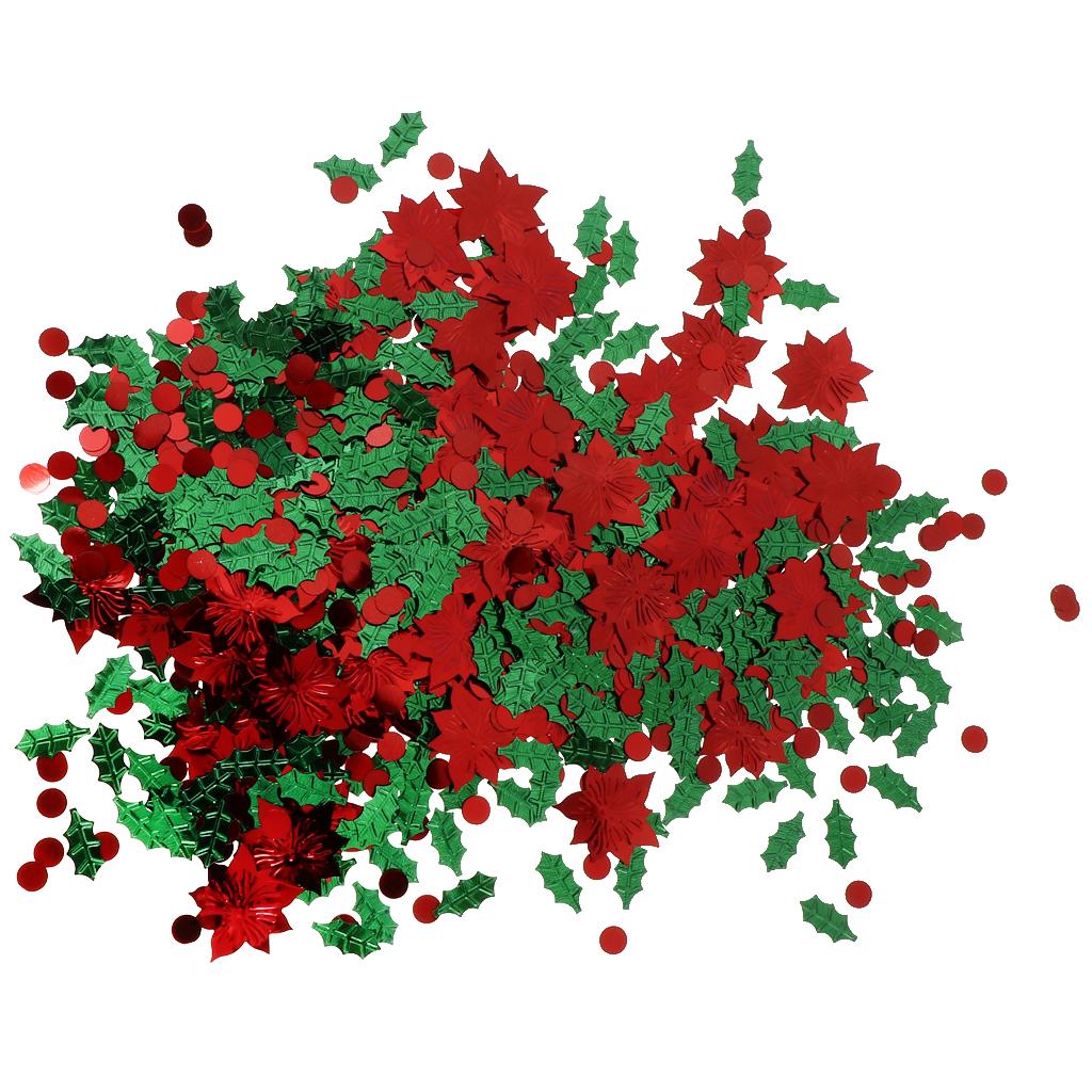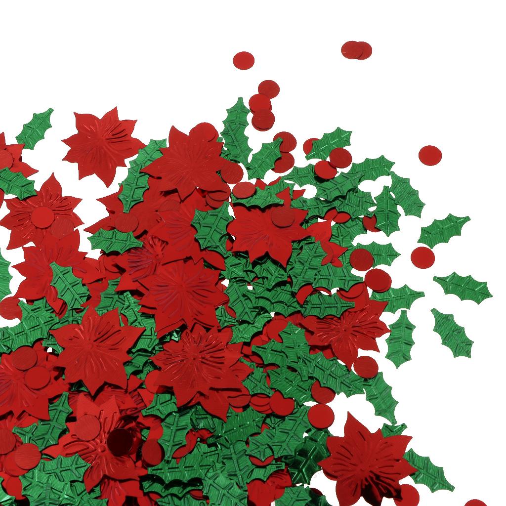 30g Christmas Green Leaf & Red Flower Shaped Table Confetti Throwing Xmas Tabletop Decoration