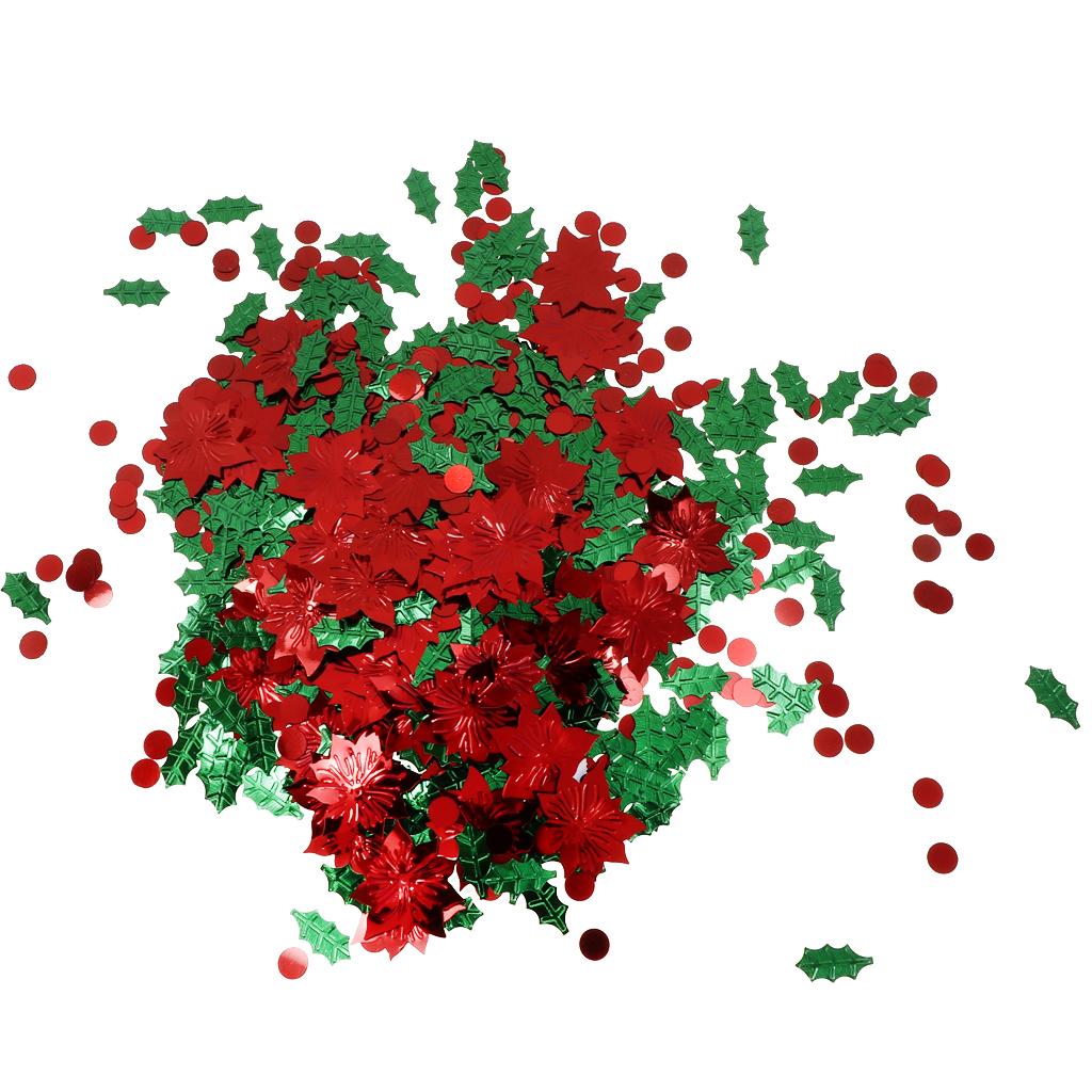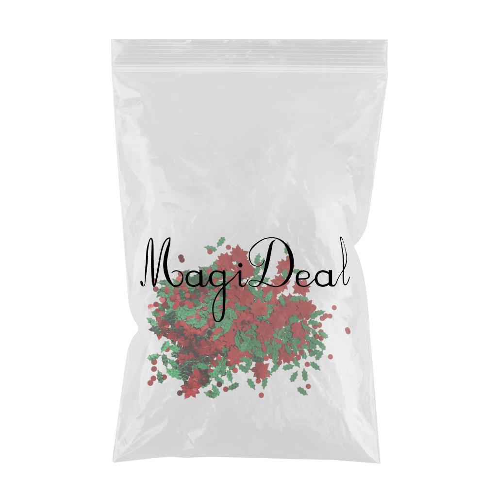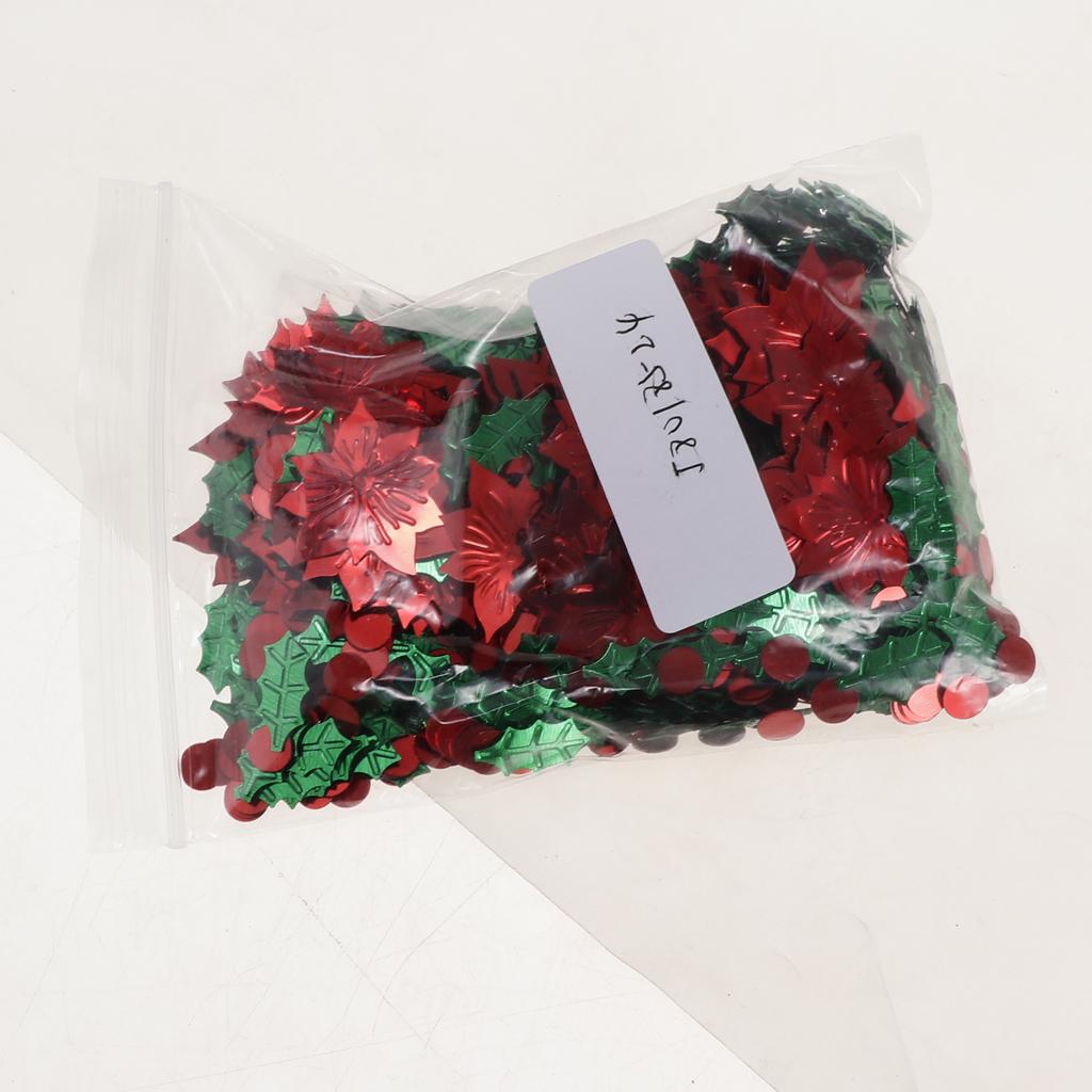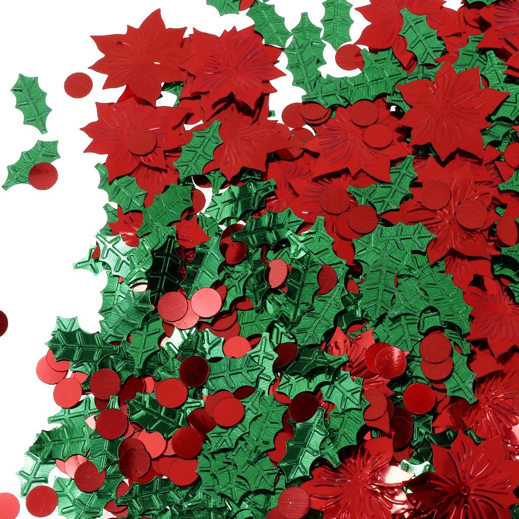 30g Christmas Green Leaf & Red Flower Shaped Table Confetti Throwing Xmas Tabletop Decoration