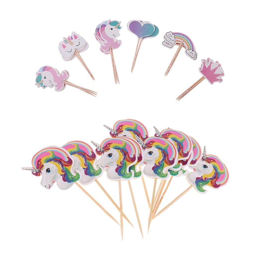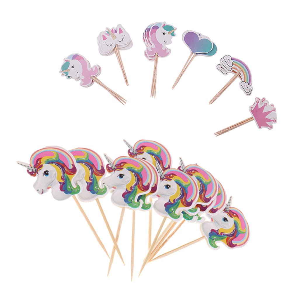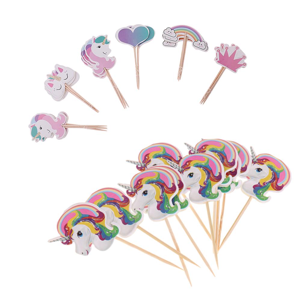 Assorted rainbow, unicorn, heart, crown shape cake topper food picks