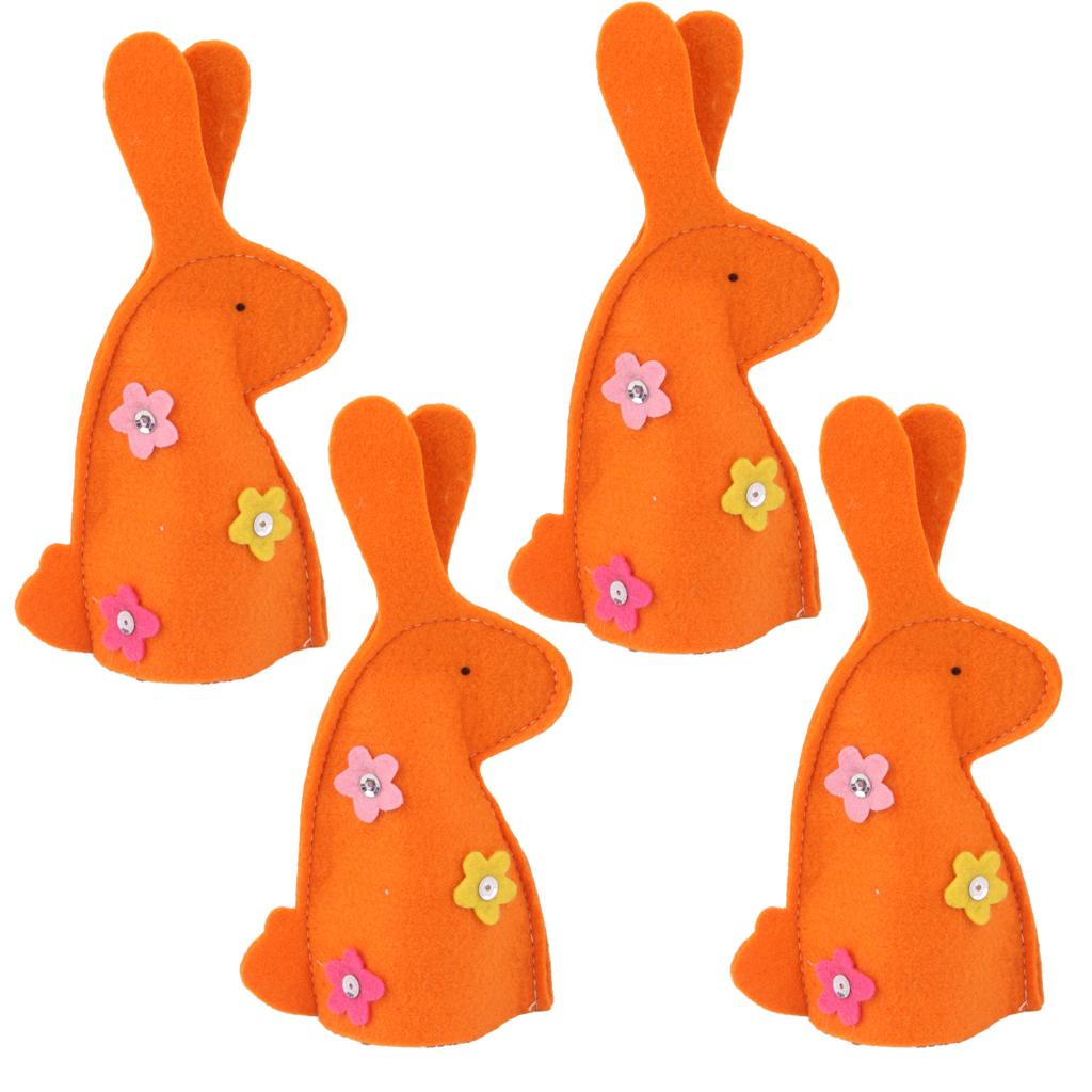 4pcs Cute Rabbit Design Easter Egg Covers Holder Decoration Ornament Orange