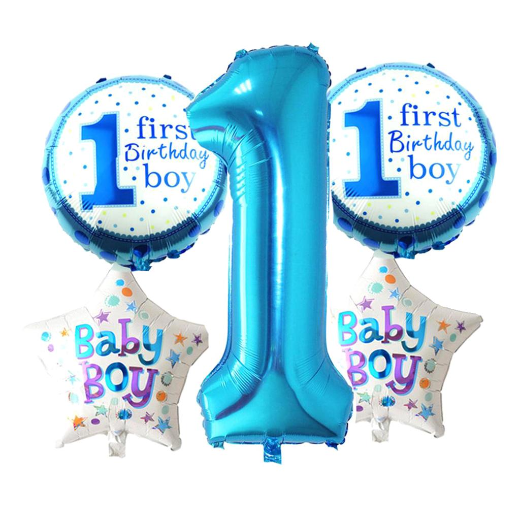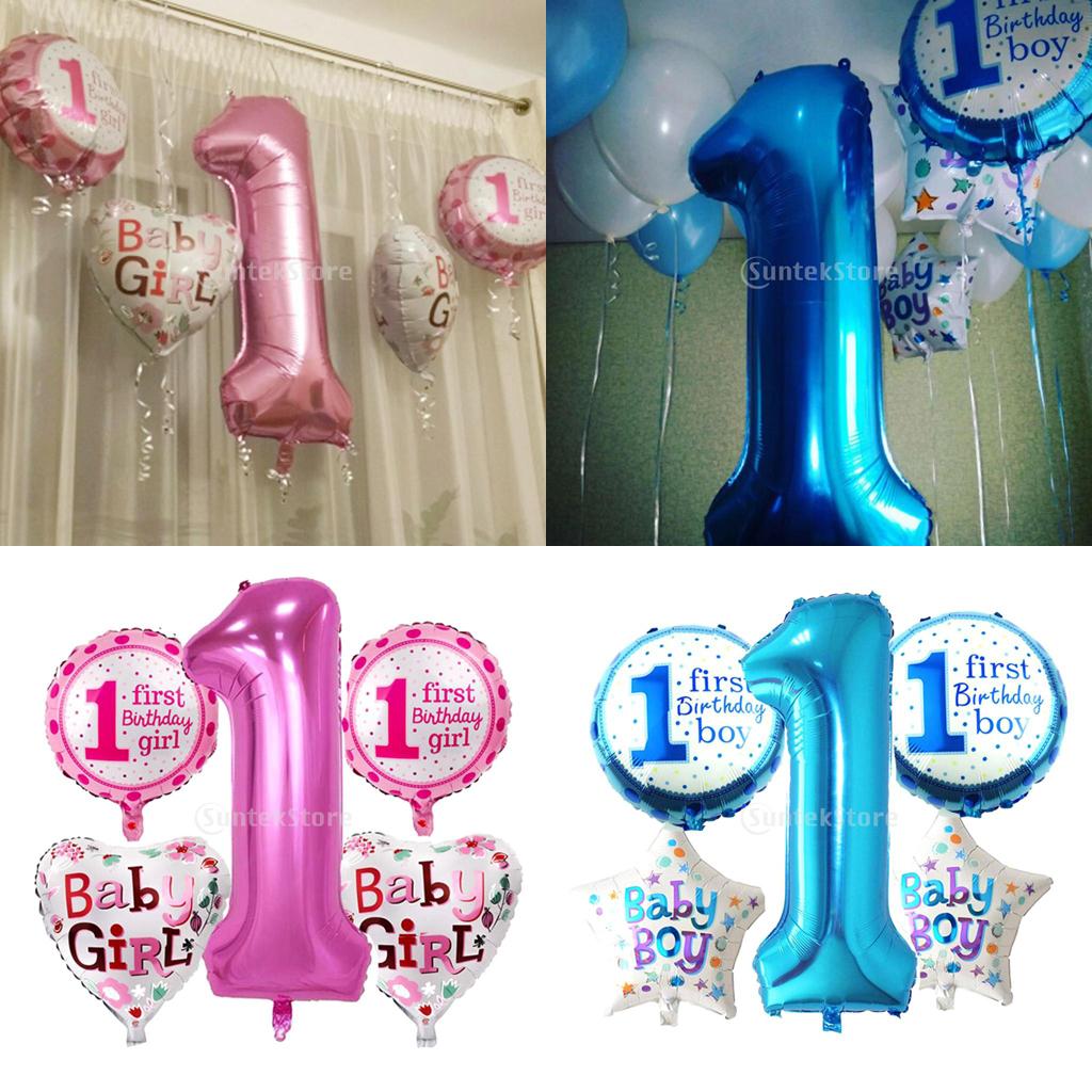 5 pieces of balloons a set, 1 piece of large number one shaped, measuring 76.2 cm / 30 in long