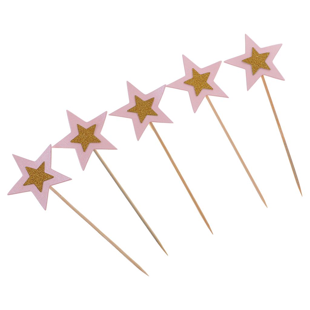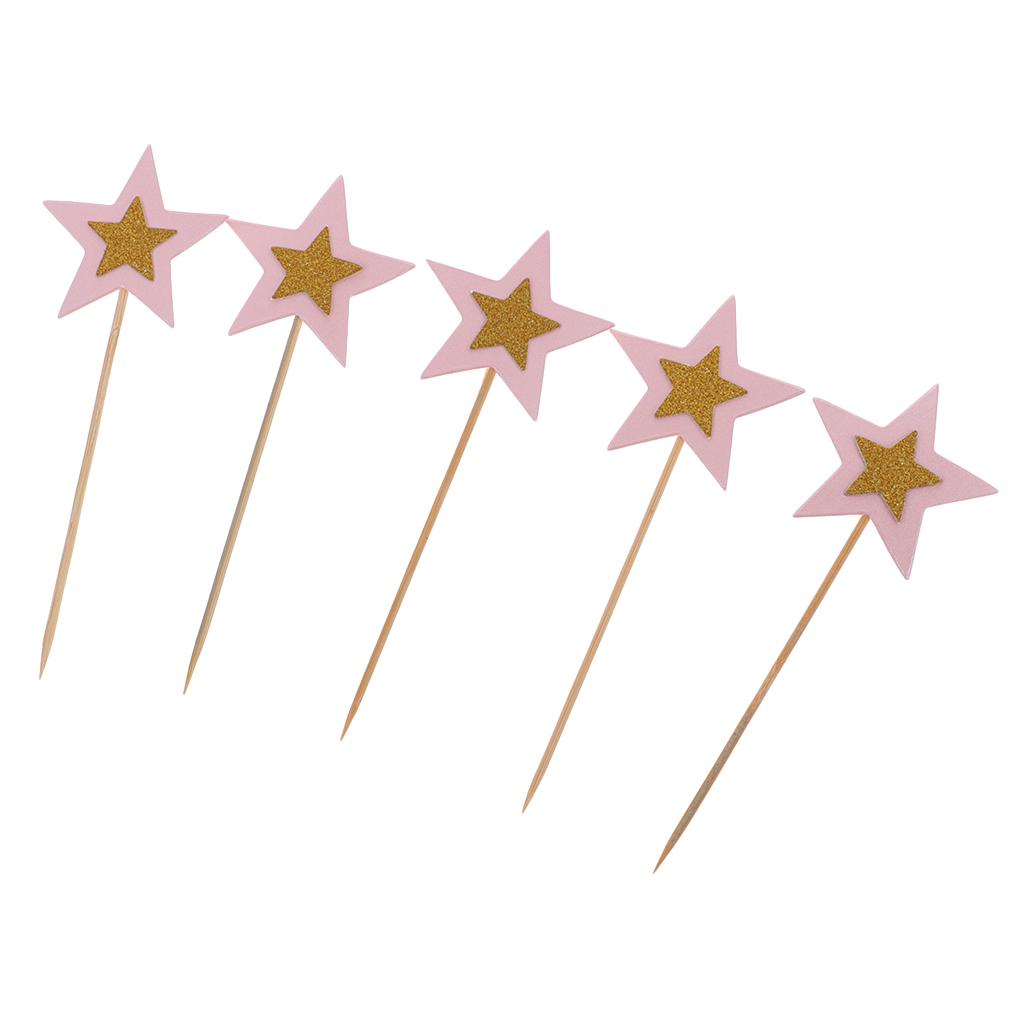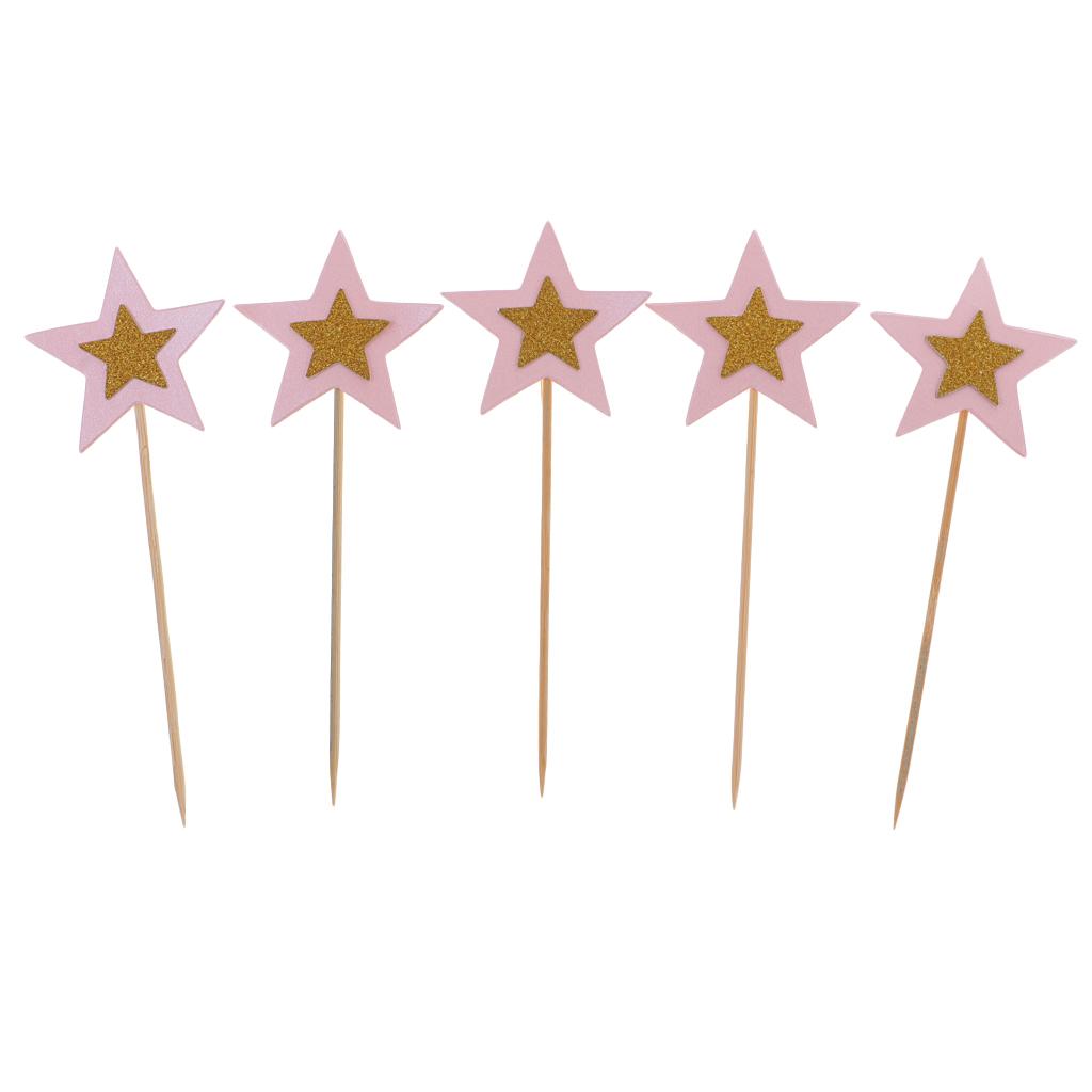 5/set Glitter Star Cake Cupcake Topper Food Picks Wedding Party Decor Pink