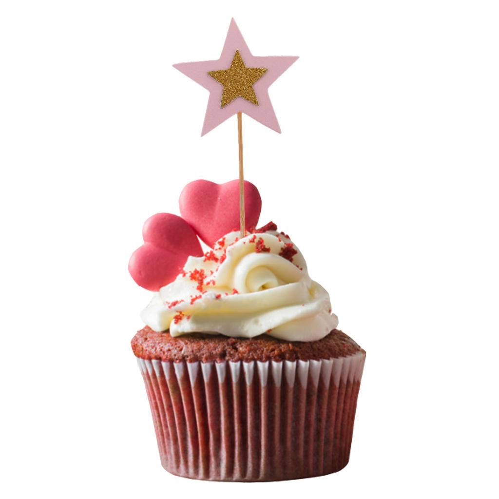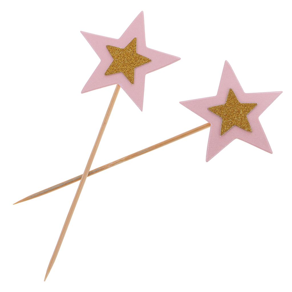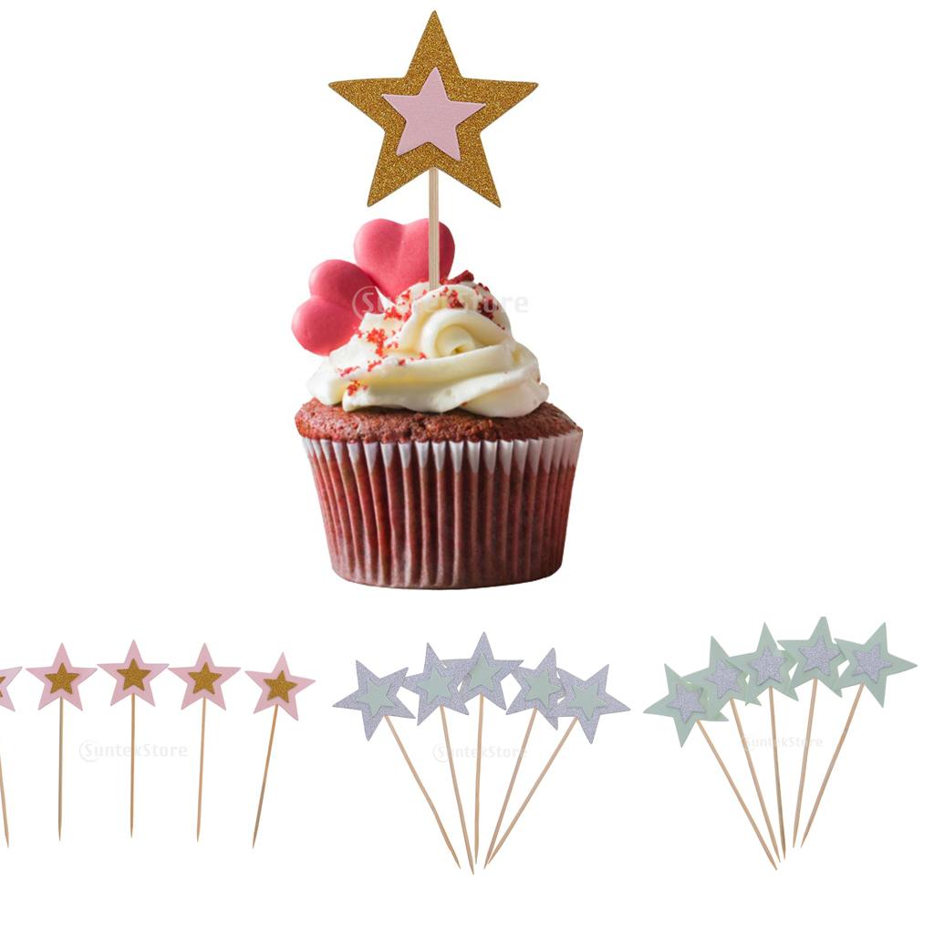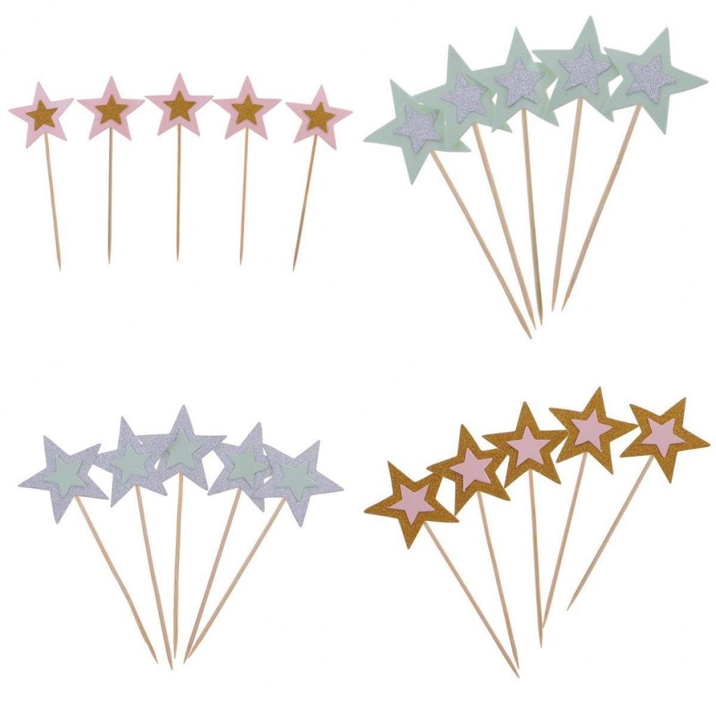5/set Glitter Star Cake Cupcake Topper Food Picks Wedding Party Decor Pink