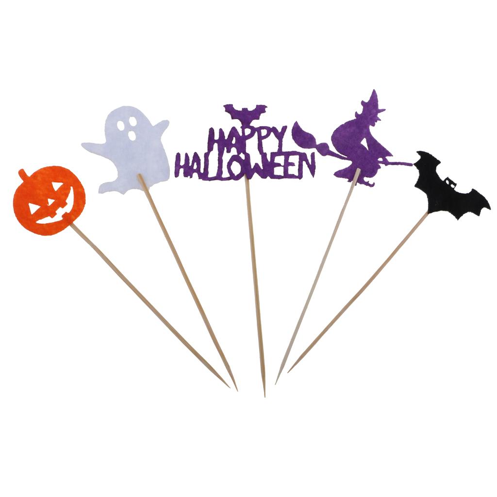 Pack of 5 sets, each set 5 pieces, Halloween themed, chic pumpkin, ghost, wizard, bat and Happy Halloween design