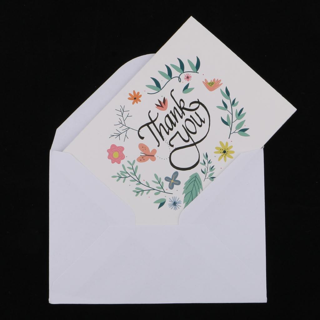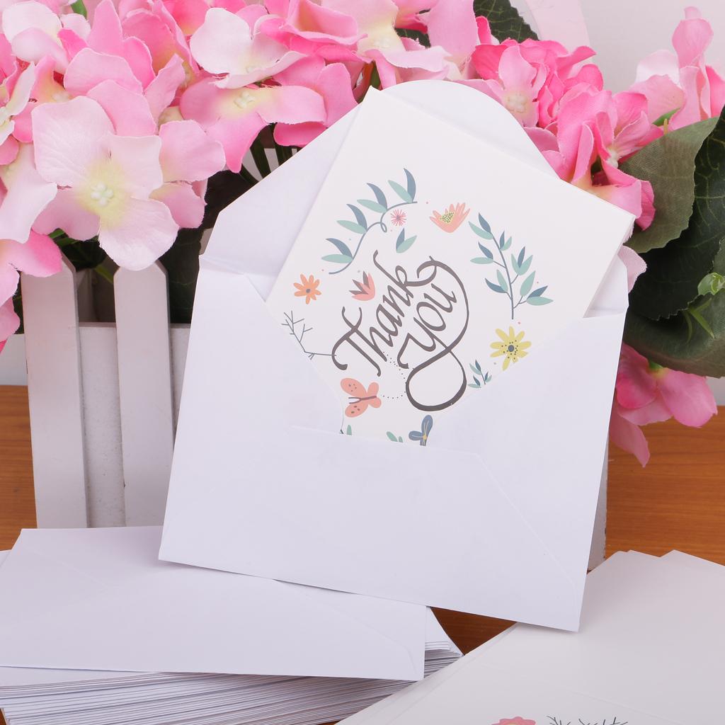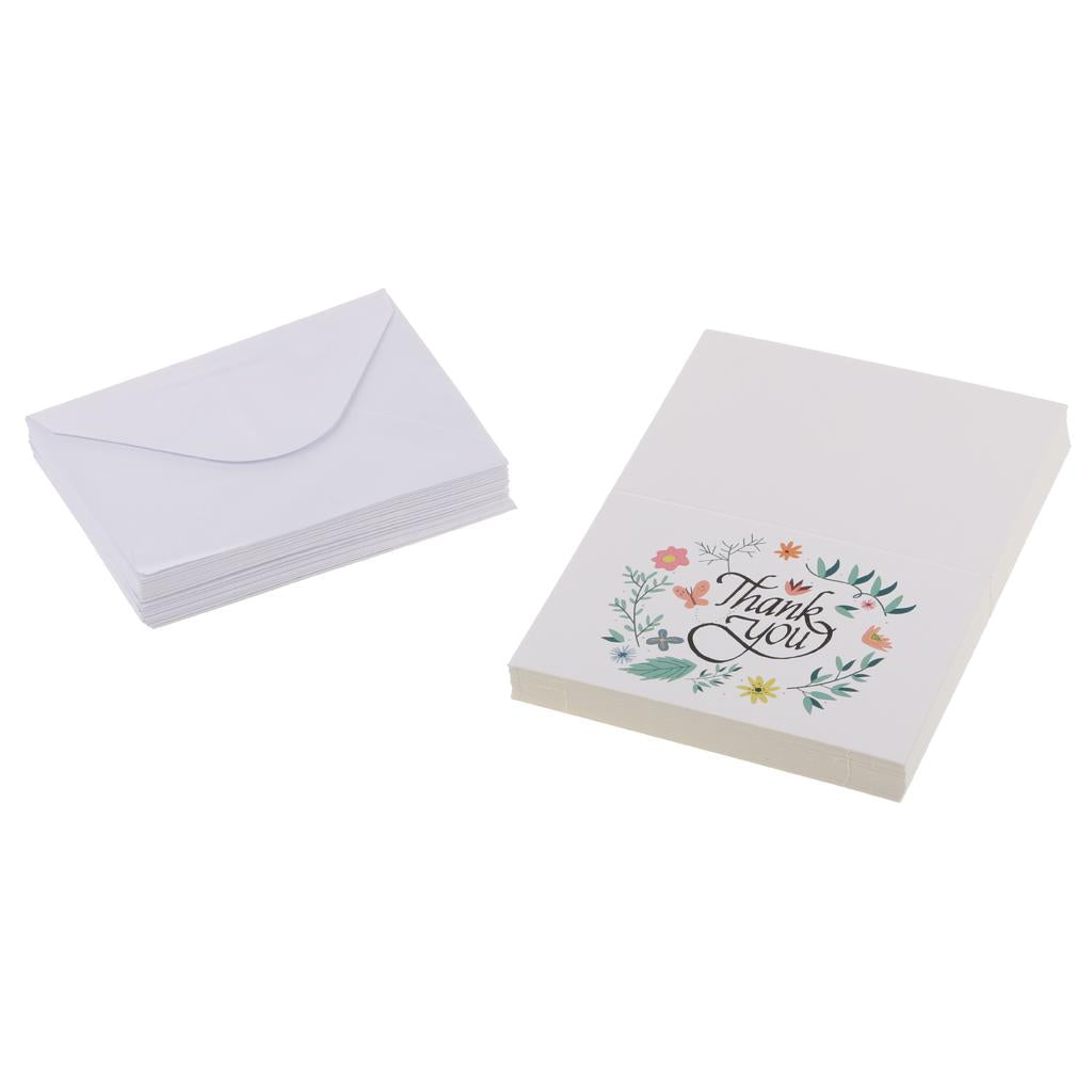 50pcs Floral Flower Paper Thank You Cards with Envelopes for Wedding Party