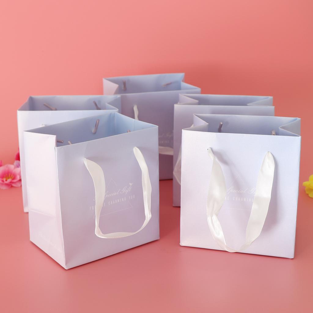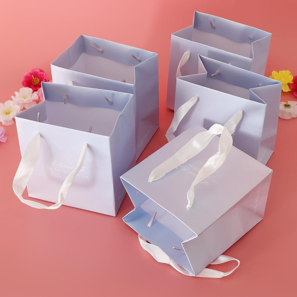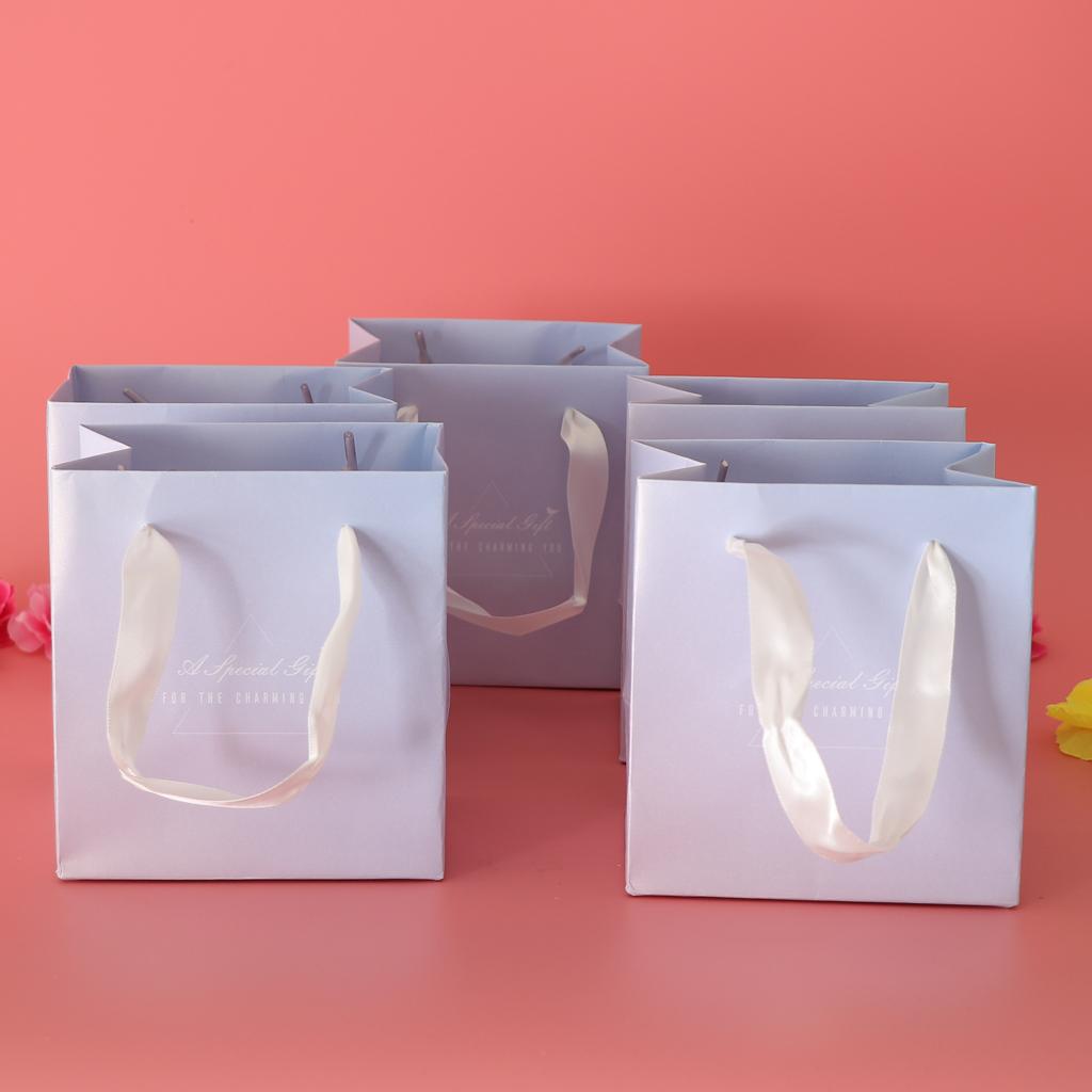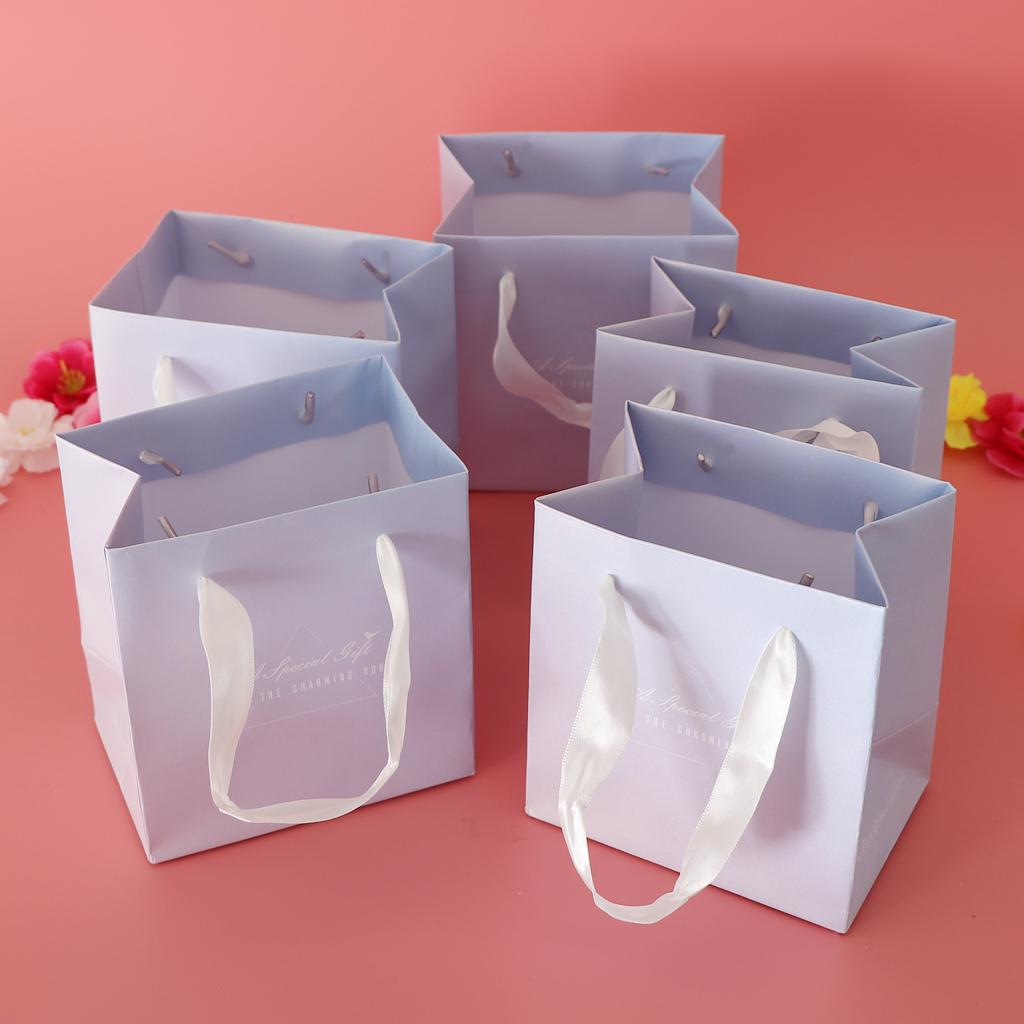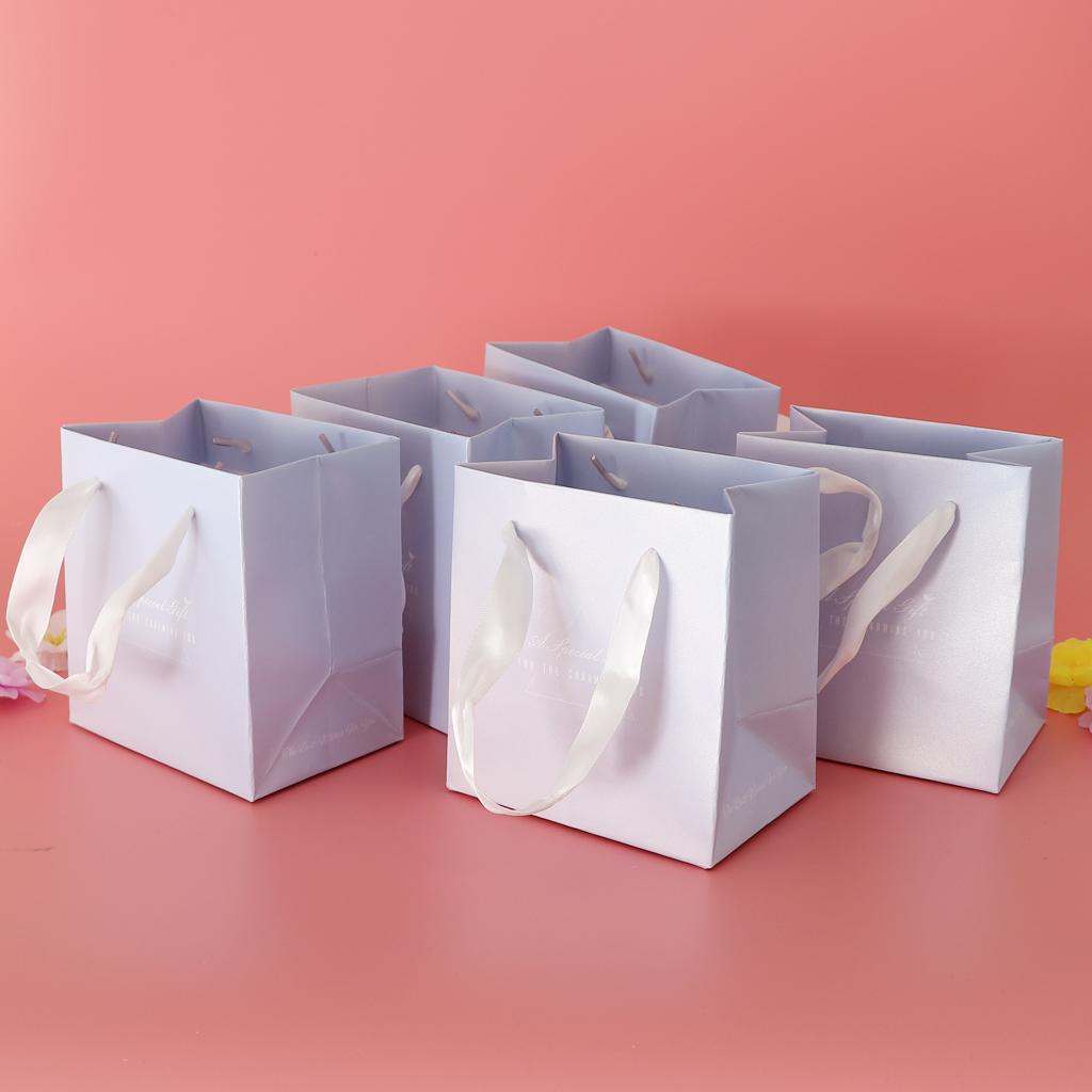 5pcs Kraft Paper Pouches Gift Shopping Packing Bags With Handle 13x9x14cm