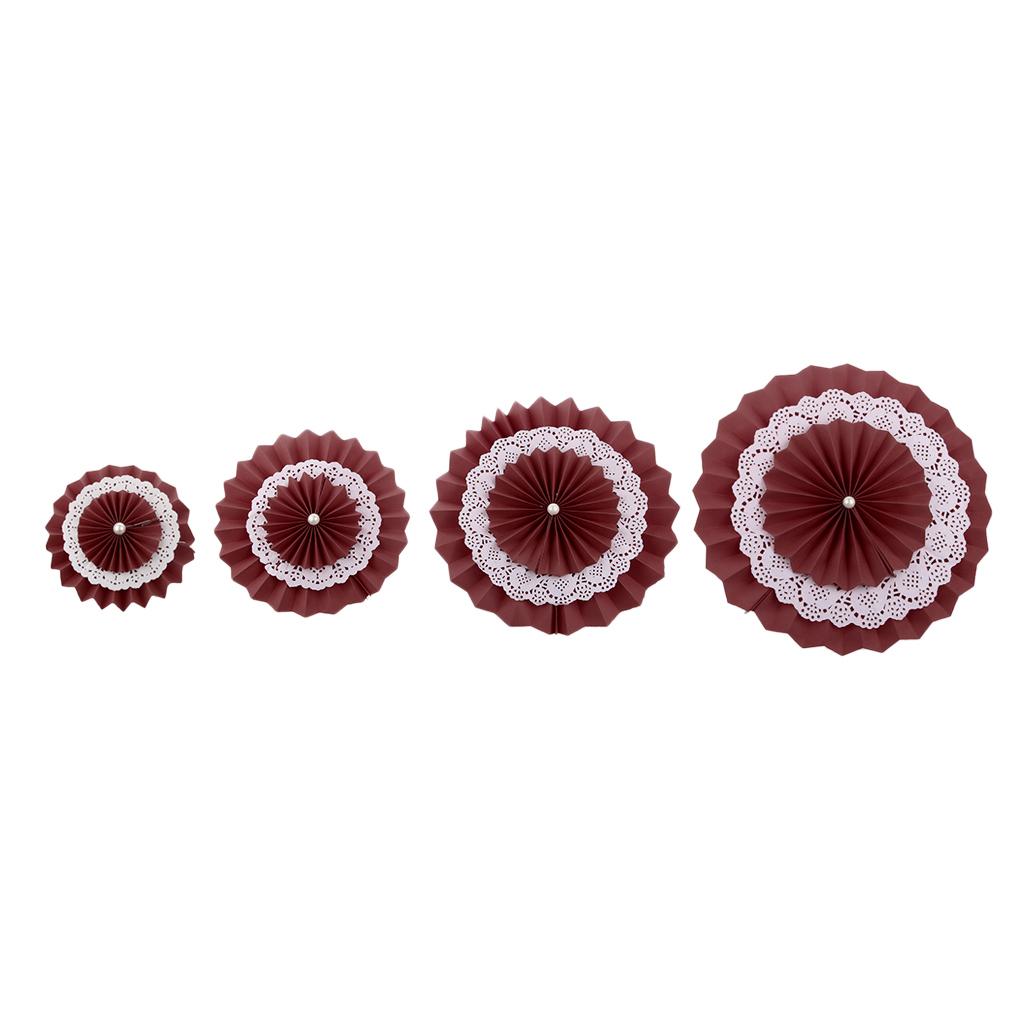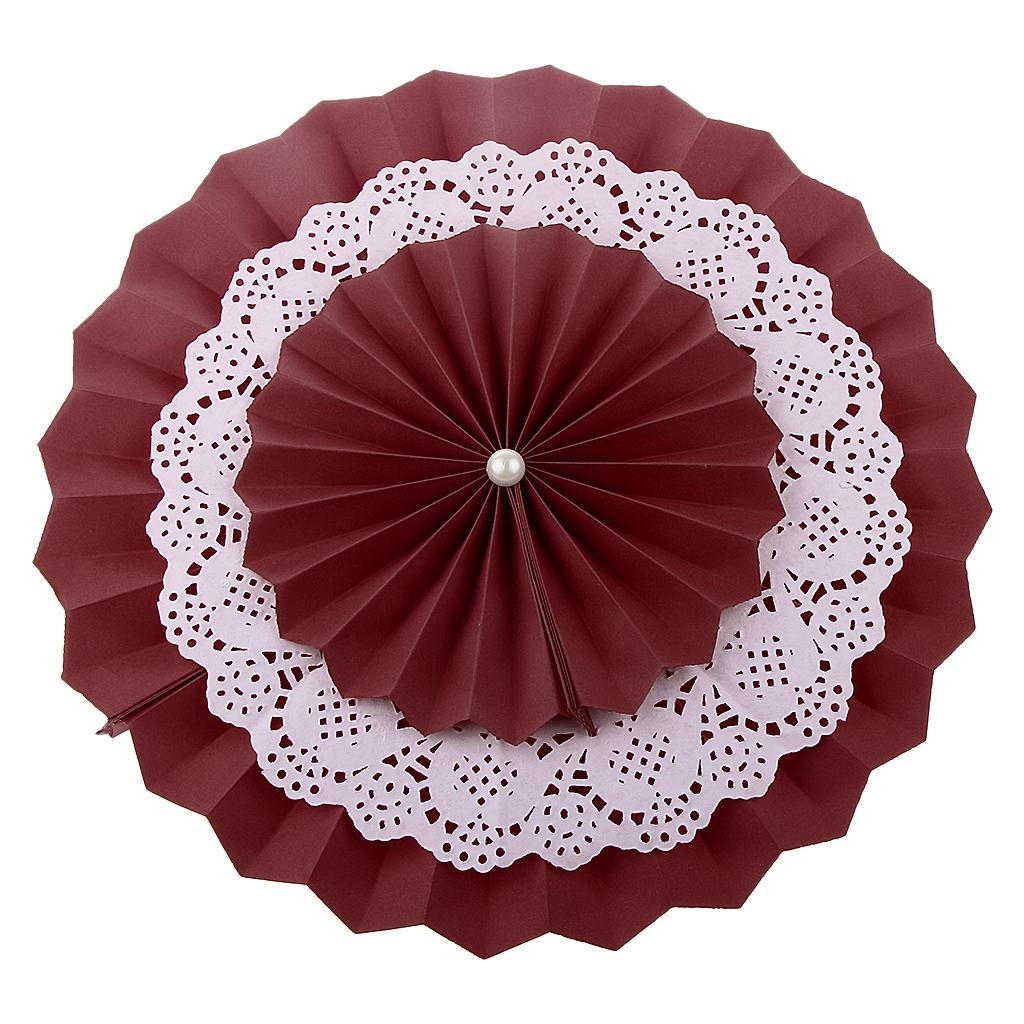 5pcs Paper Fan Flower Wedding Birthday Party Decor 10 inch Wine Red