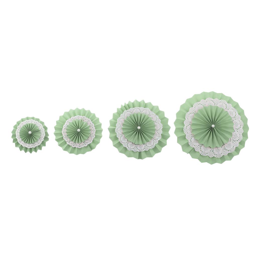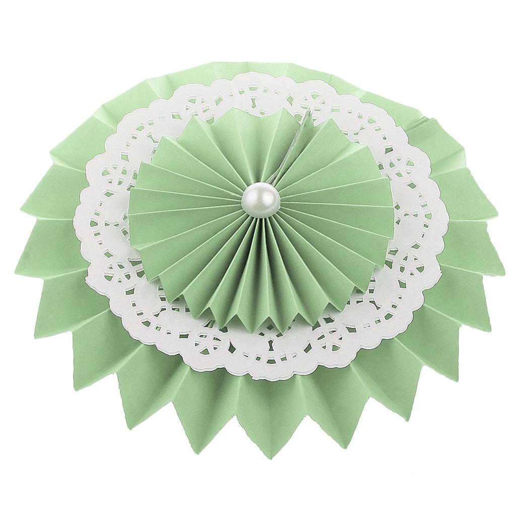 5pcs Paper Fan Flower Wedding Birthday Party Decor 6 inch Light Green