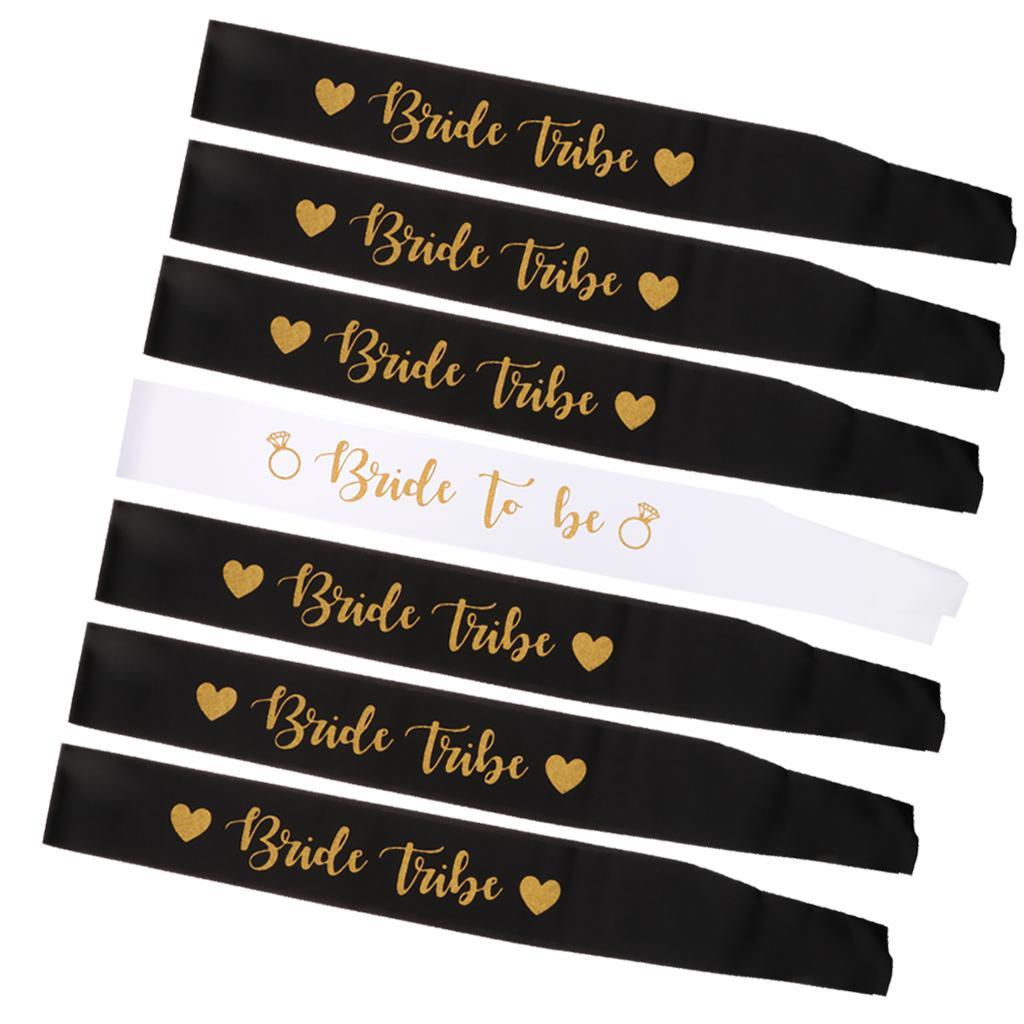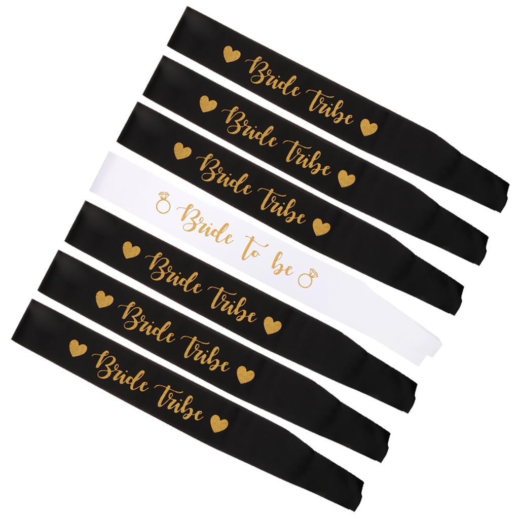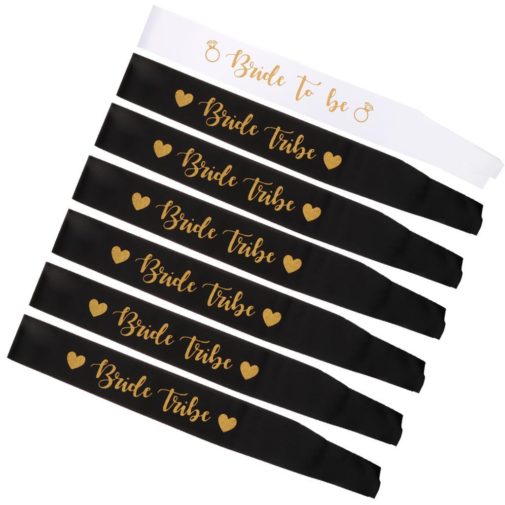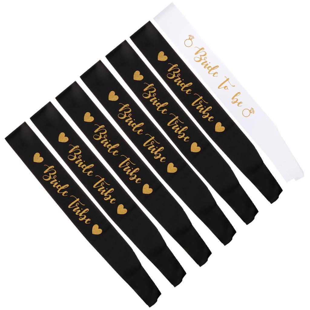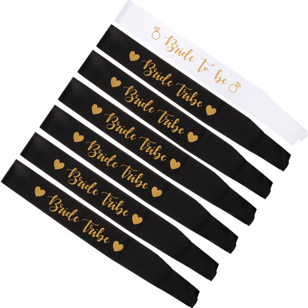 1 piece of white bride to be sash, 6 pieces of black bride tribe sashes.