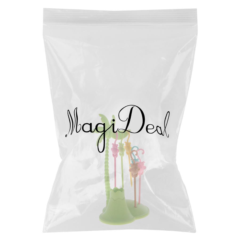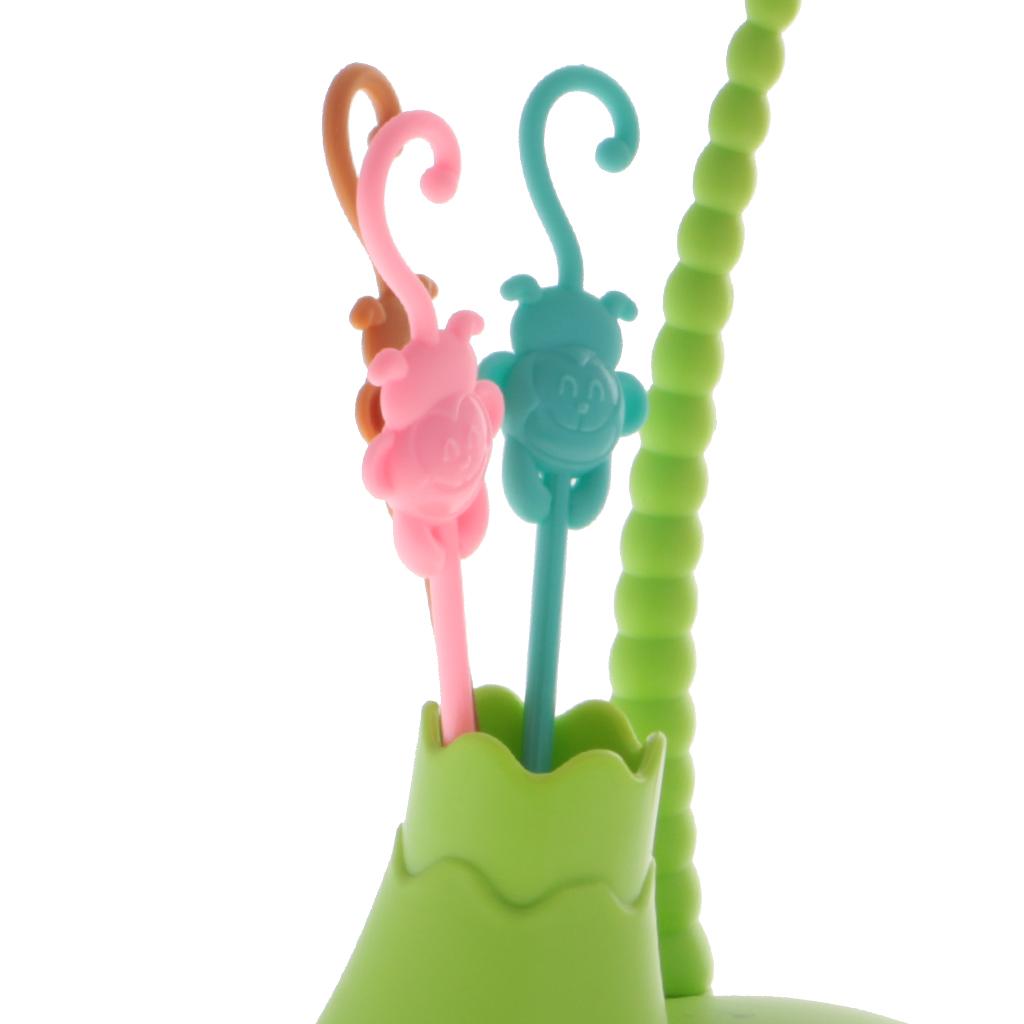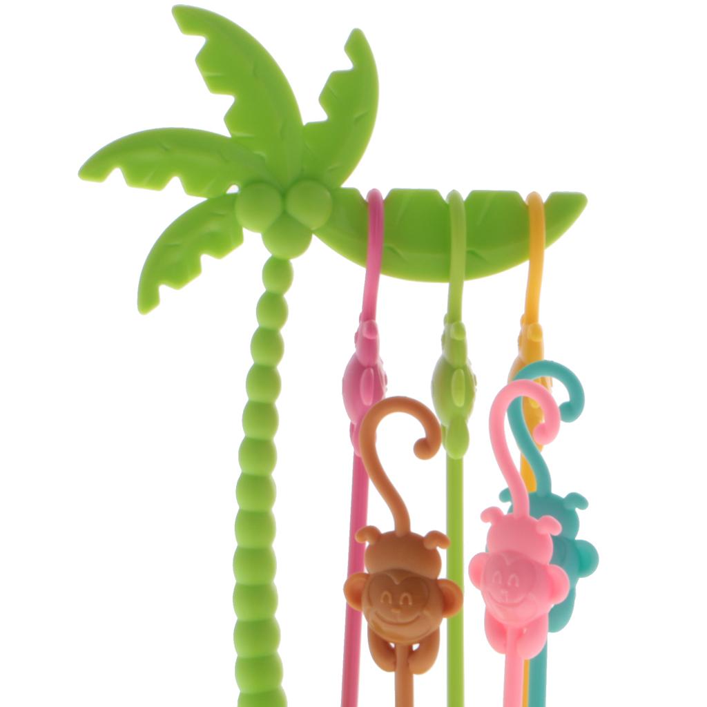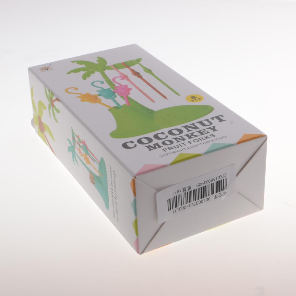 7pcs /Set Plastic Fruit Forks Monkey Coconut Tree Holder Tableware Green
