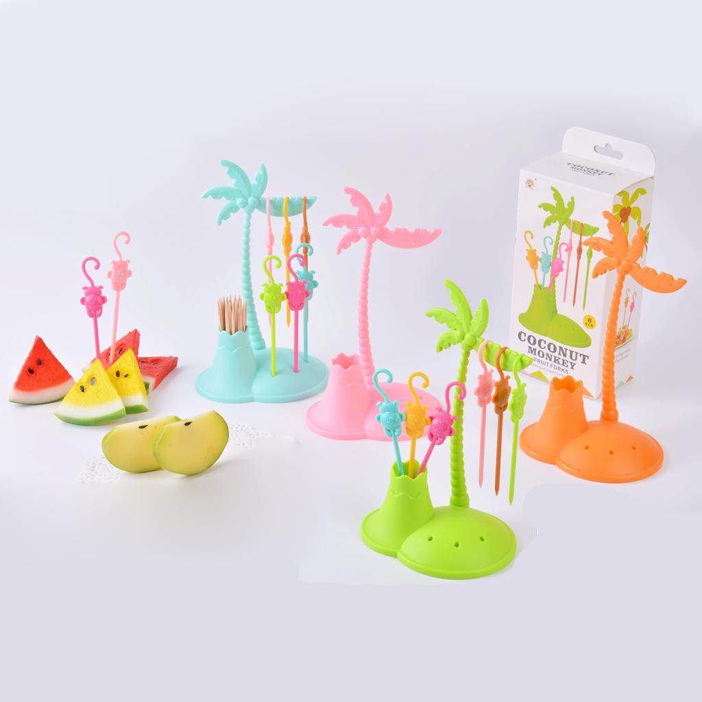 Creative Colorful plastic fruit fork set monkey coconut tree holder sets
