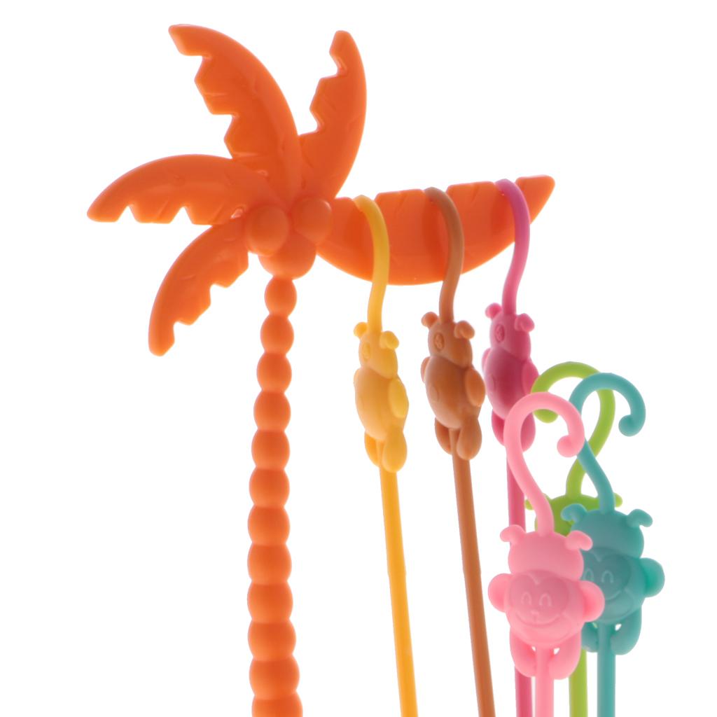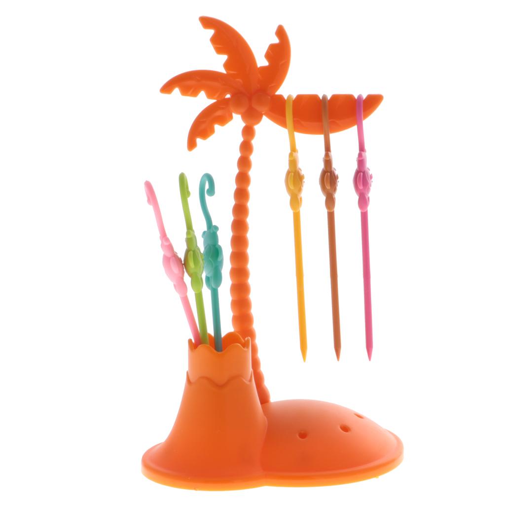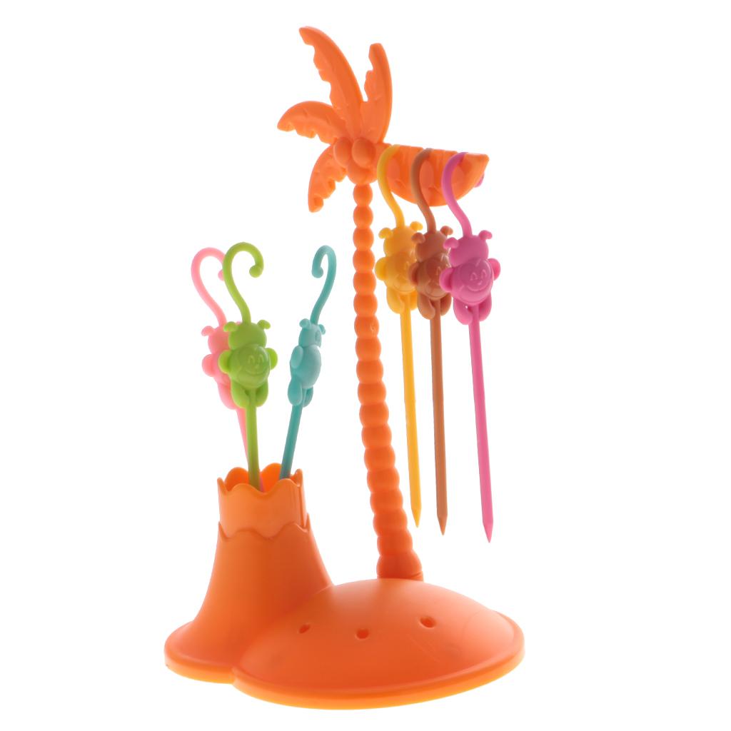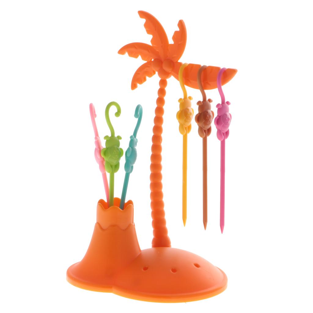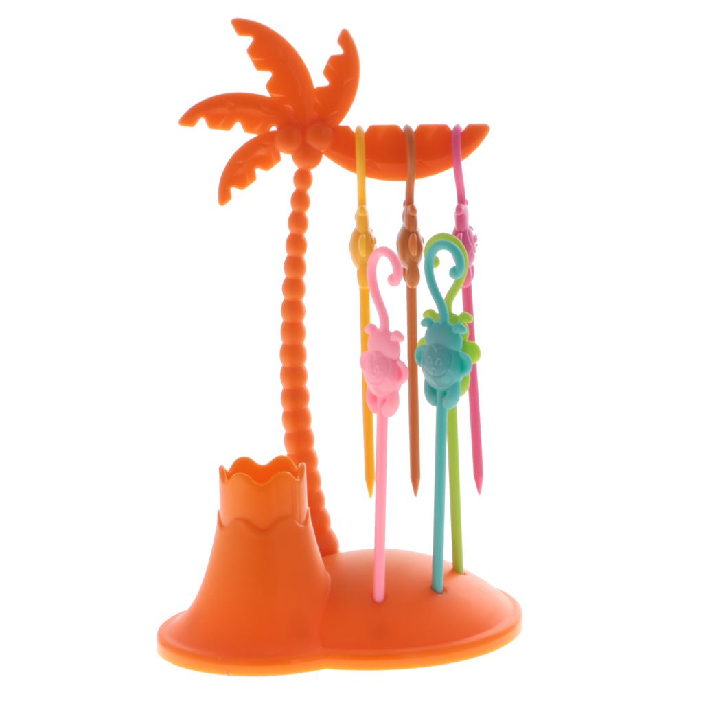 Creative Colorful plastic fruit fork set monkey coconut tree holder sets