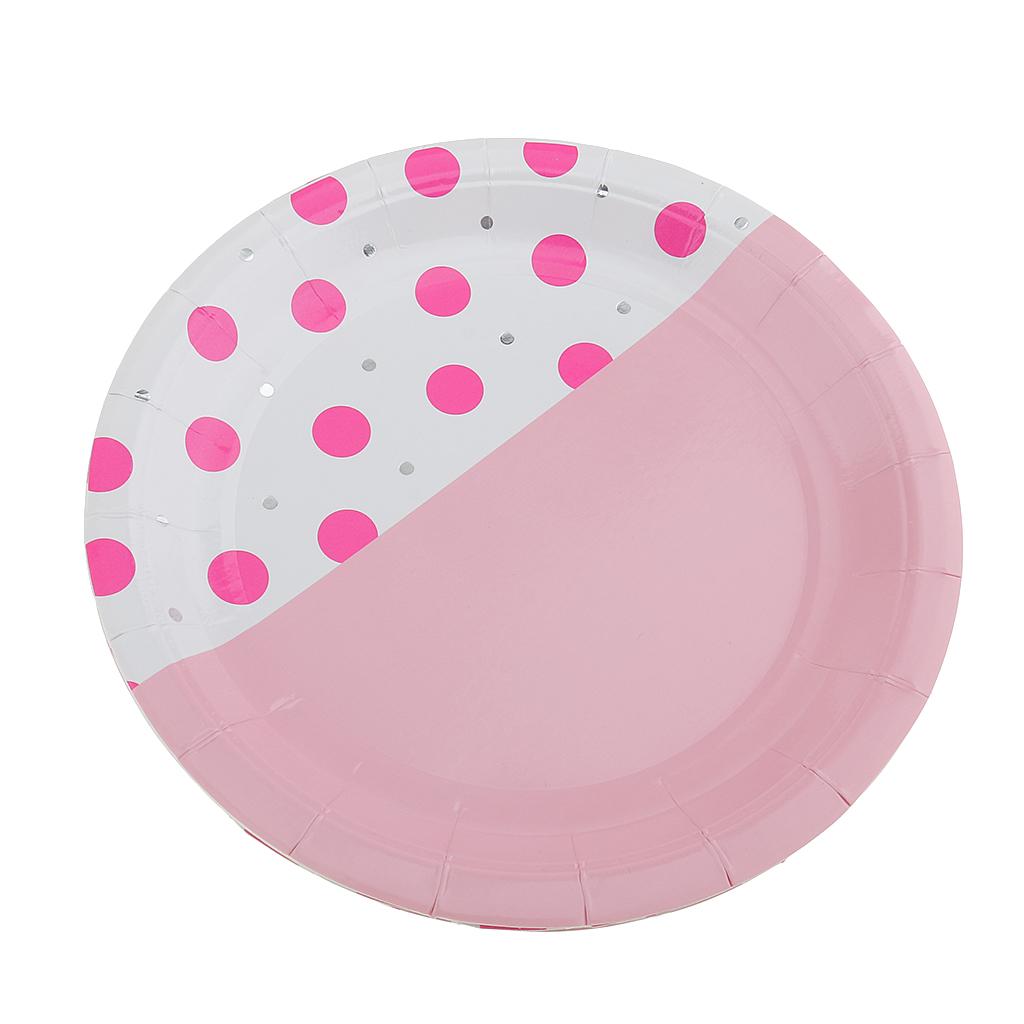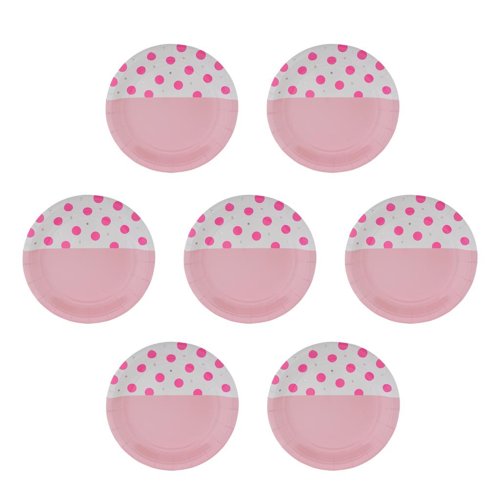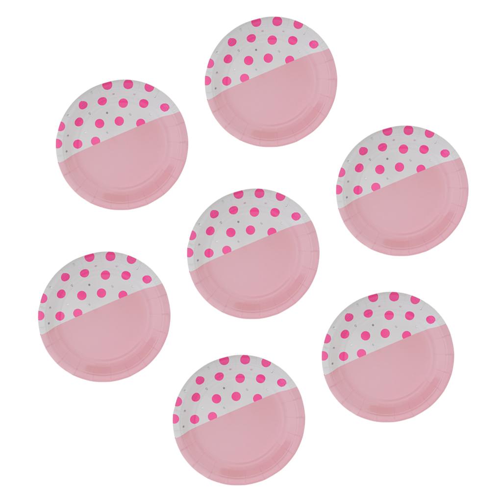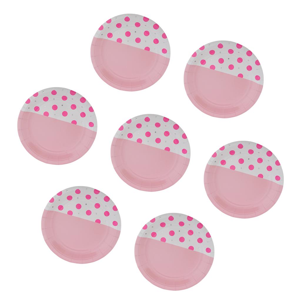 Pack of 8 pieces of paper plates, chic color blocking design and pink polka dots printed