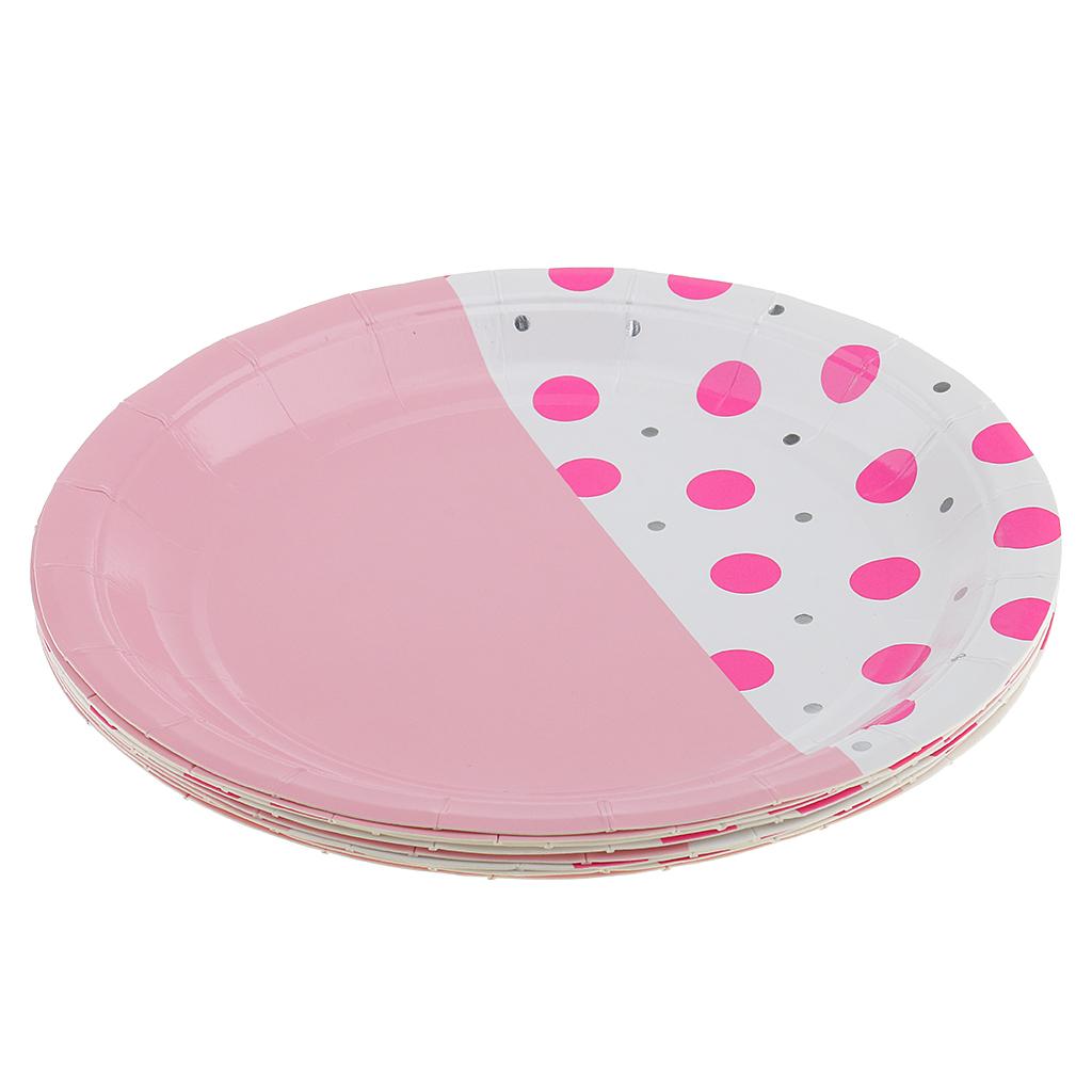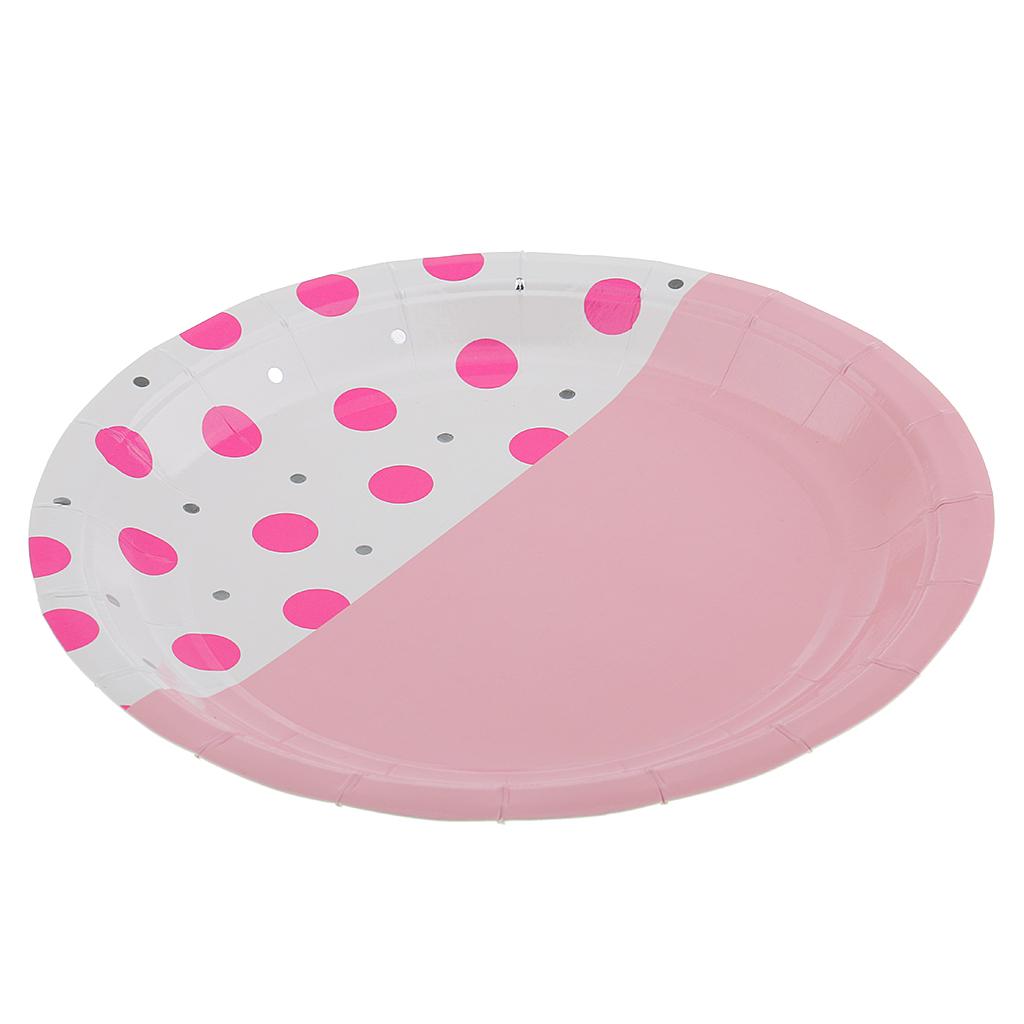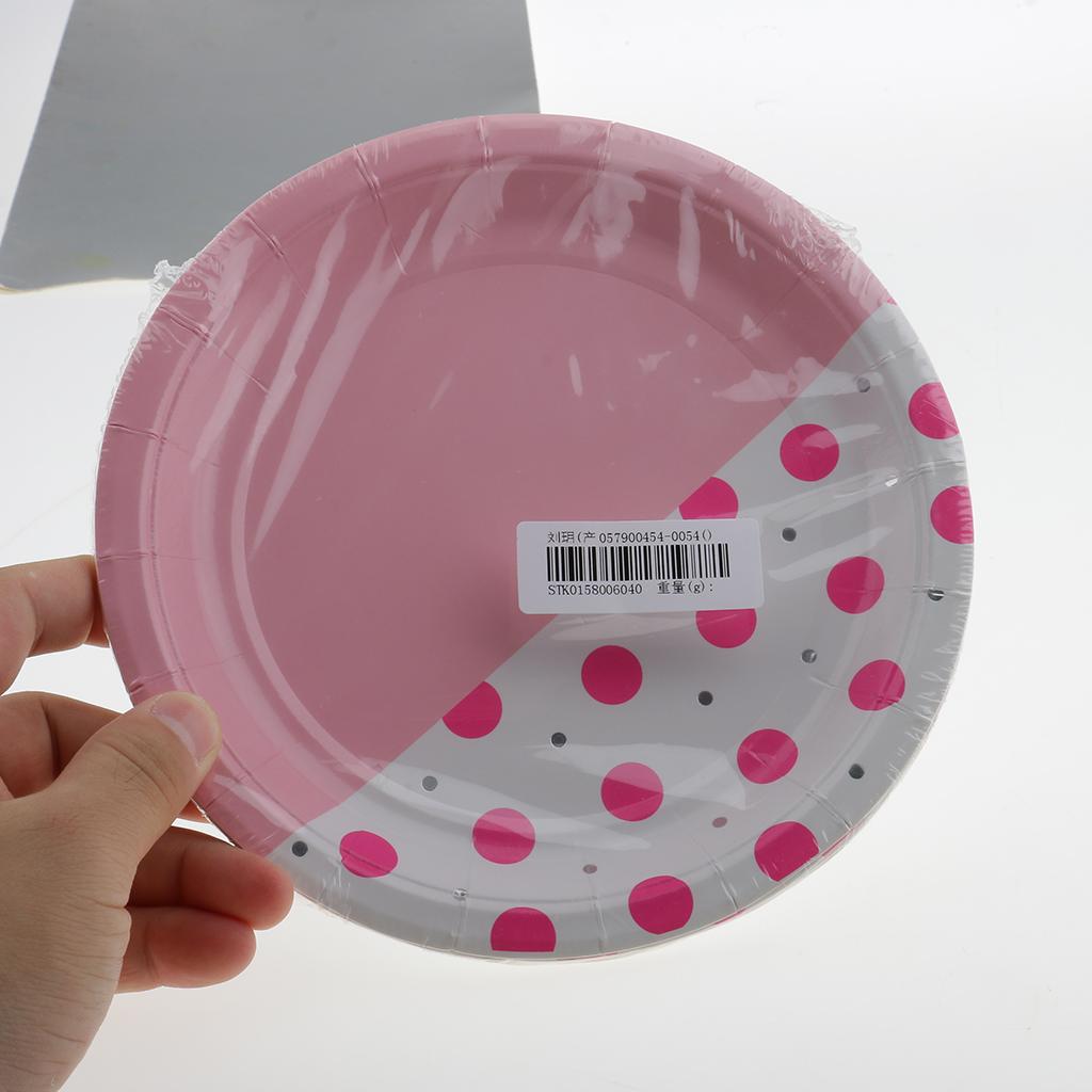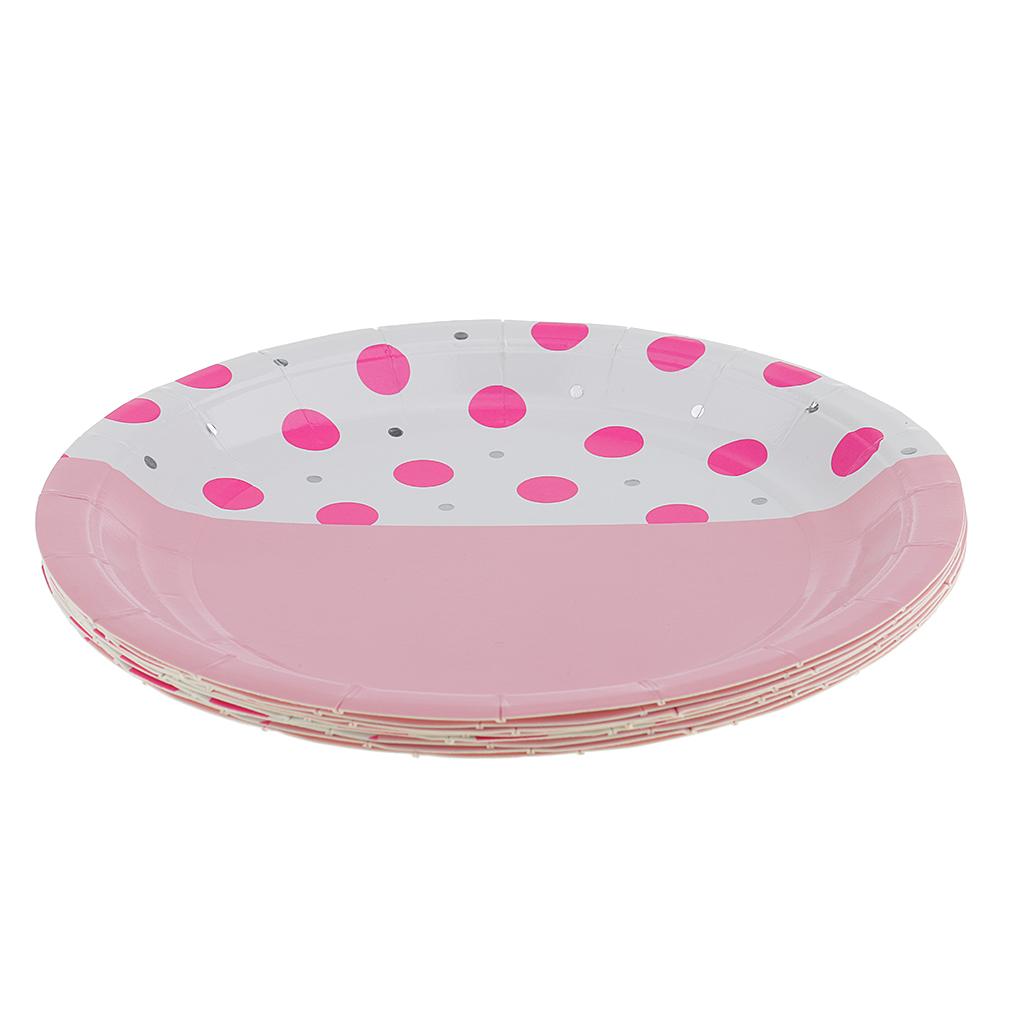 Pack of 8 pieces of paper plates, chic color blocking design and pink polka dots printed