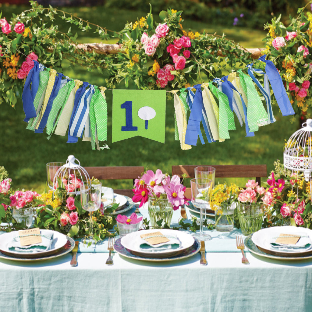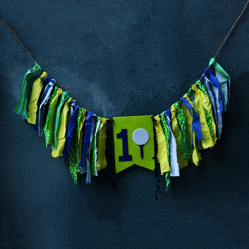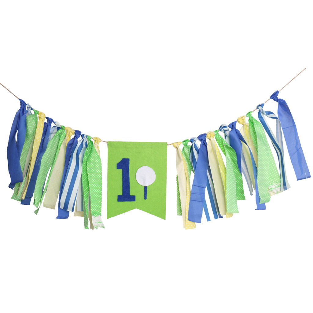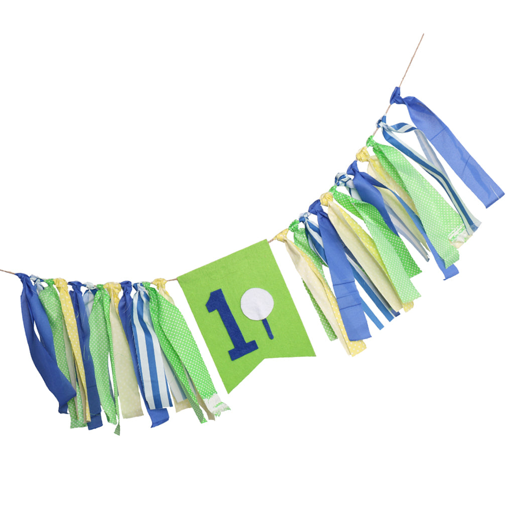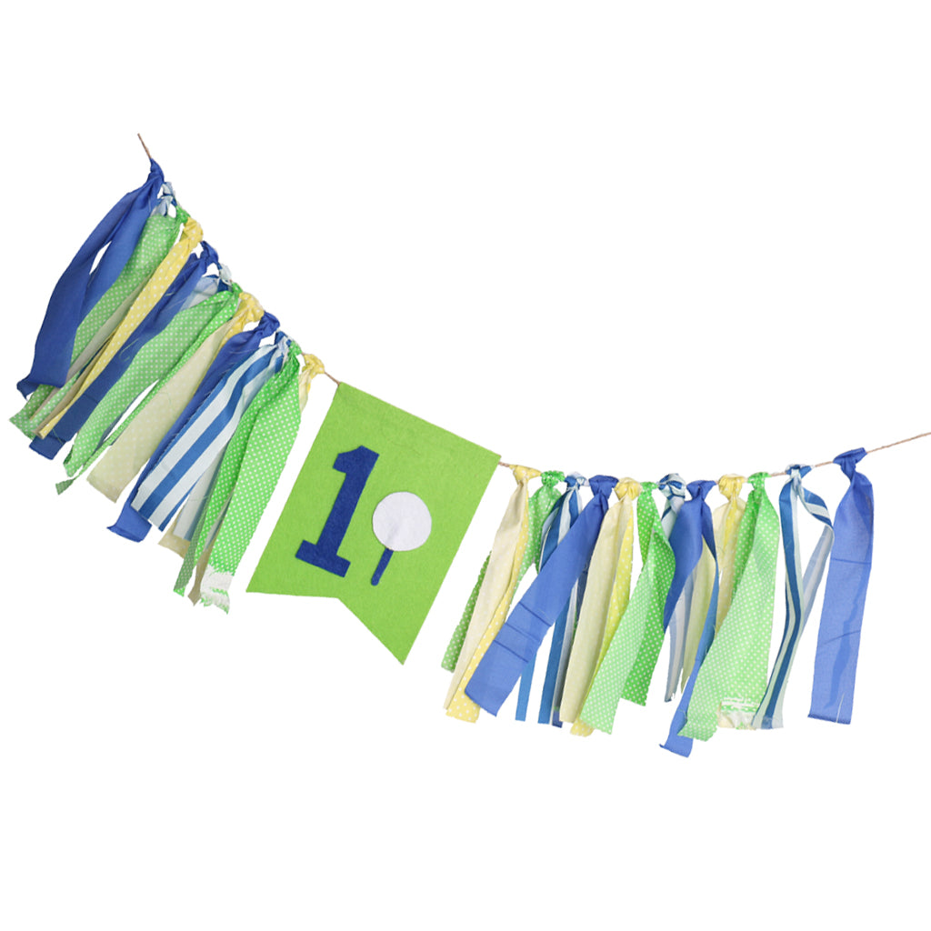 Baby First Birthday Golf Highchair Banner Rag Tied Home Party Wall Garlands