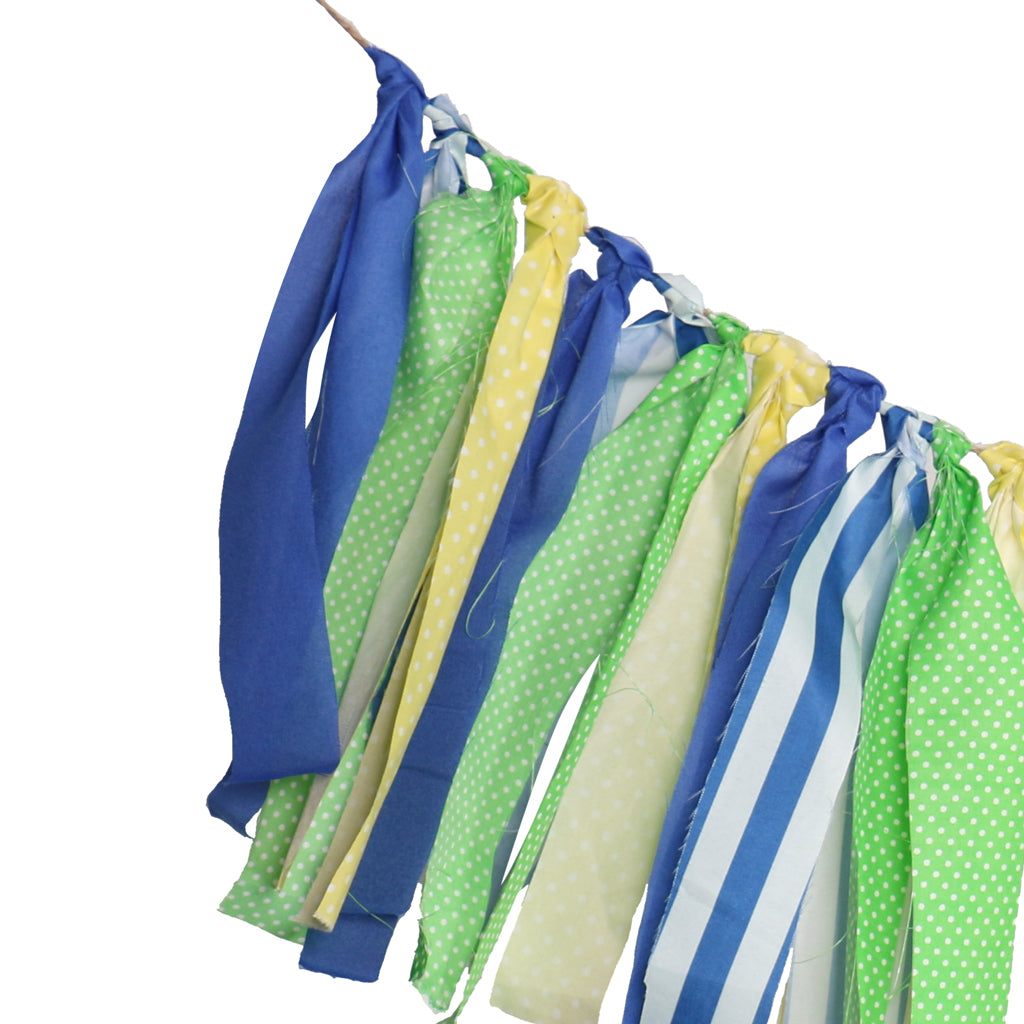 • Pretty mixed colors environmental rag tied garlands, featured with 1 and golf sign in the middle.
