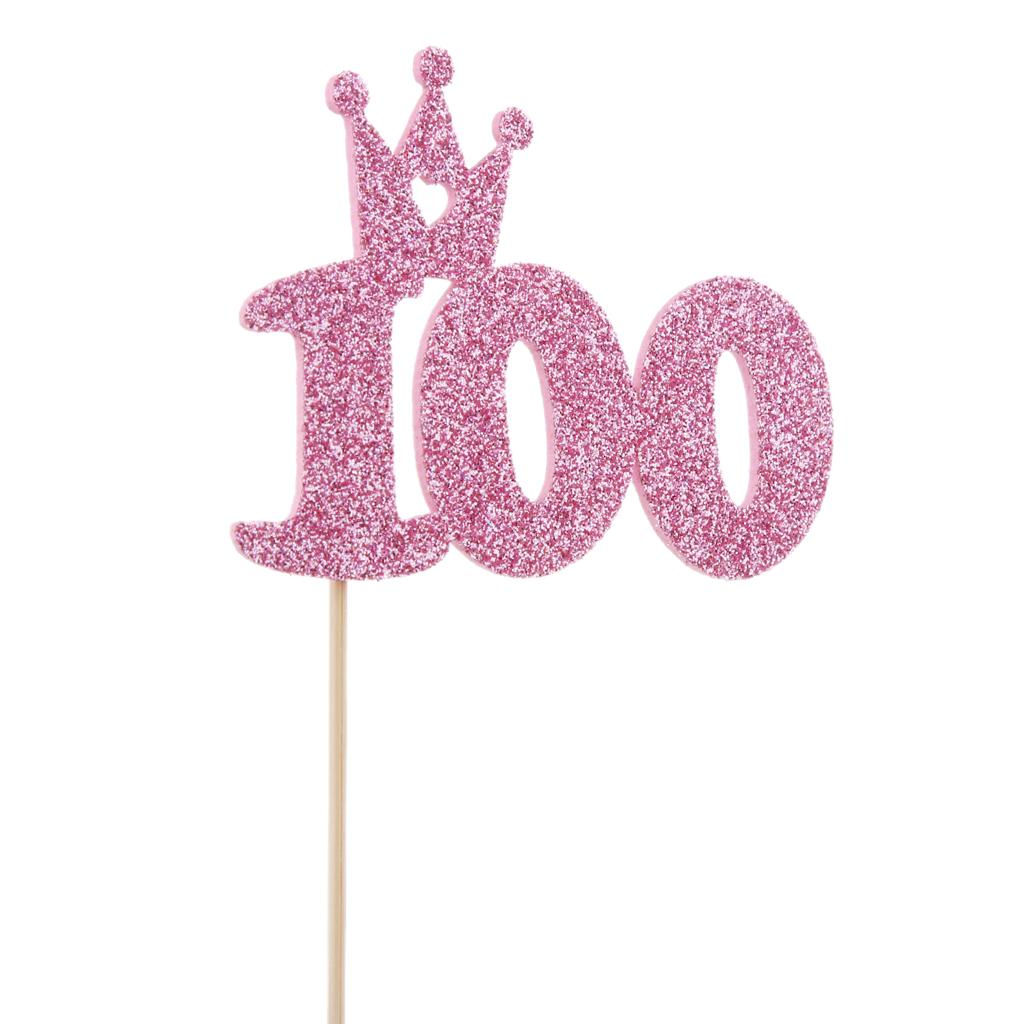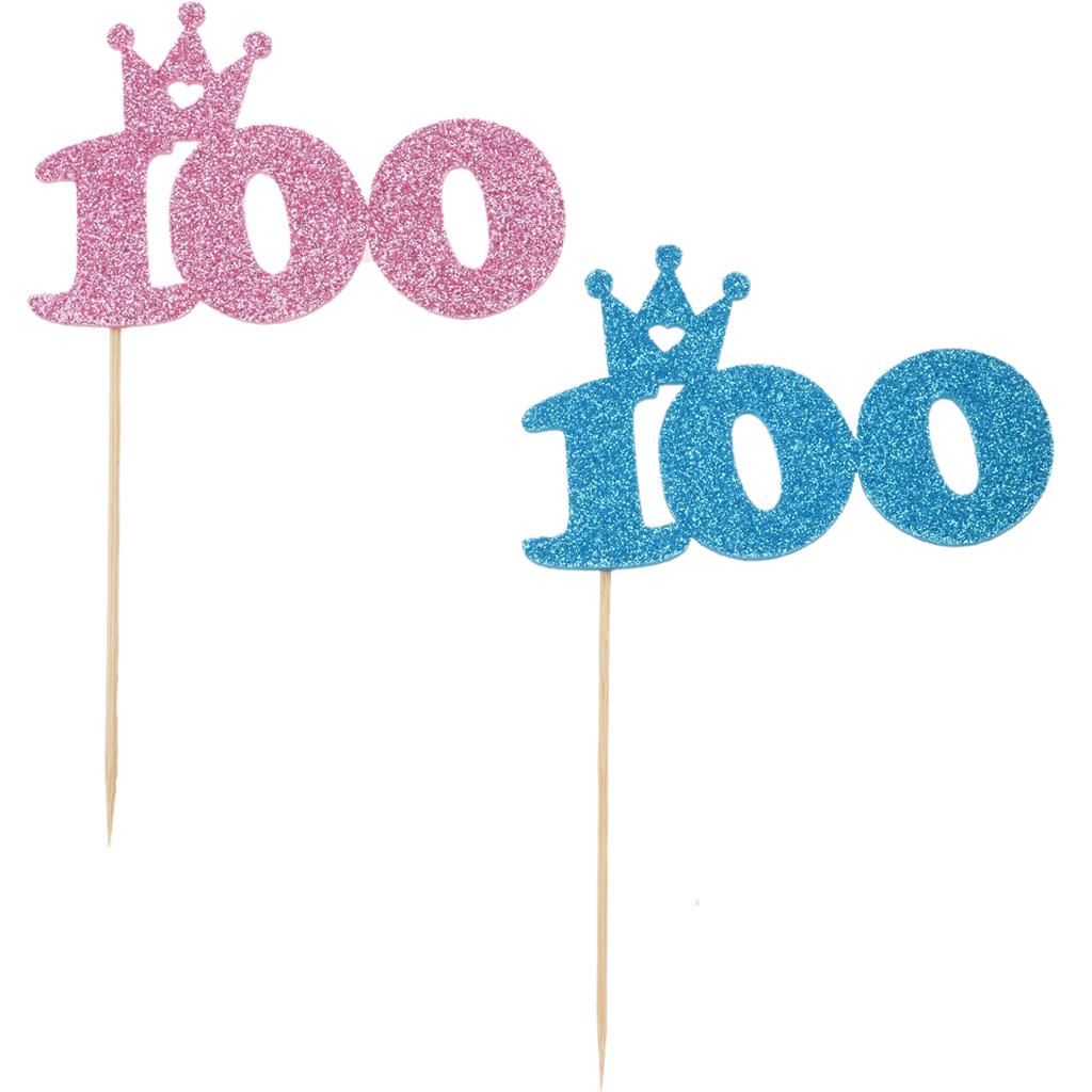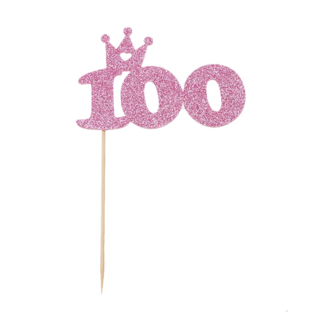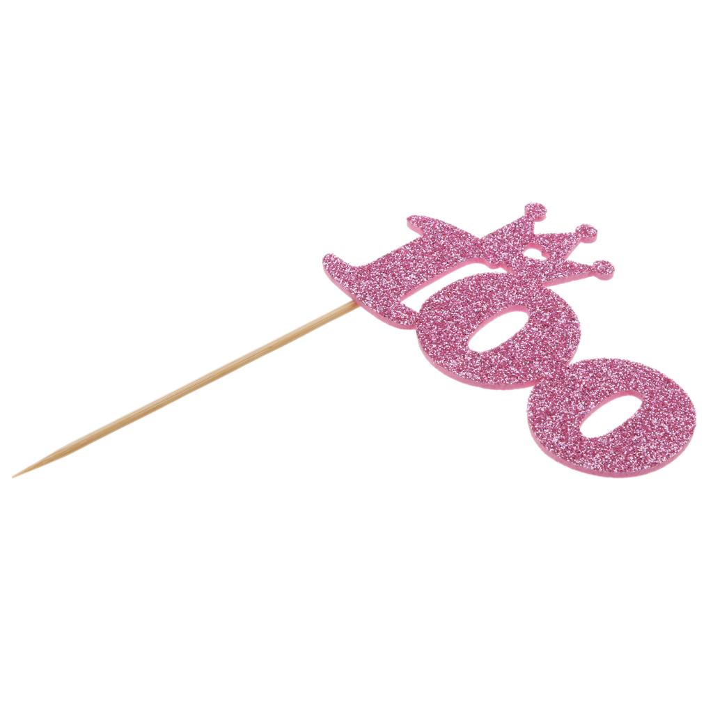 Baby Shower Birthday Glitter Cupcake Toppers Party Flags Rose Pink 100 Days