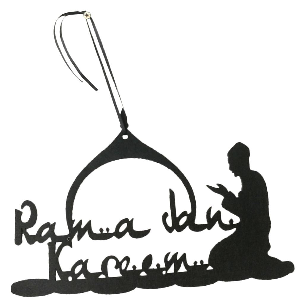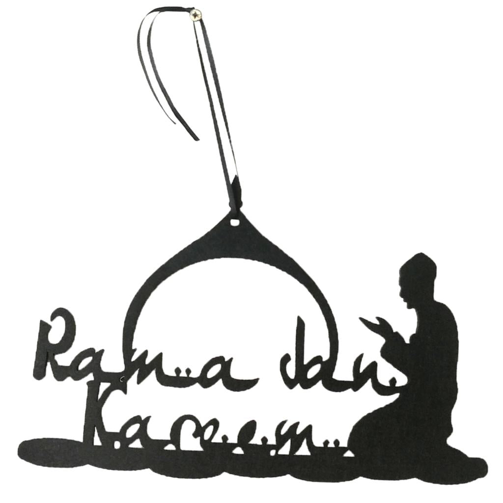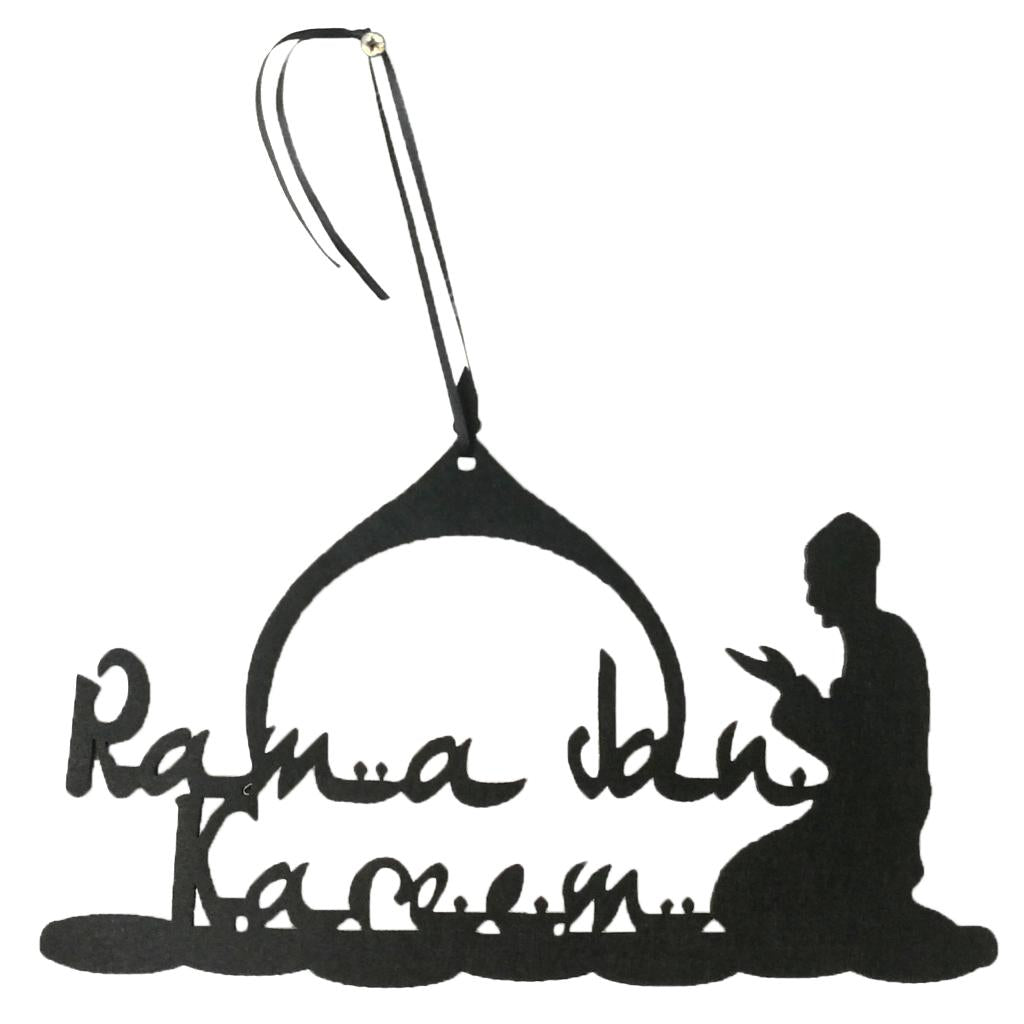 Black Eid Mubarak Hanging Decorations Half Round Shape with Figure Wall Decor, Great Gifts for Muslim