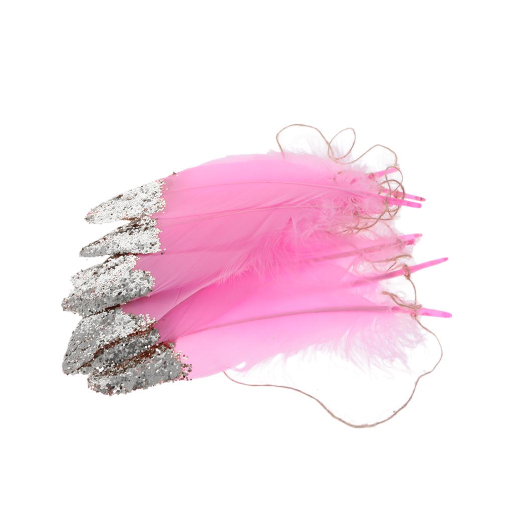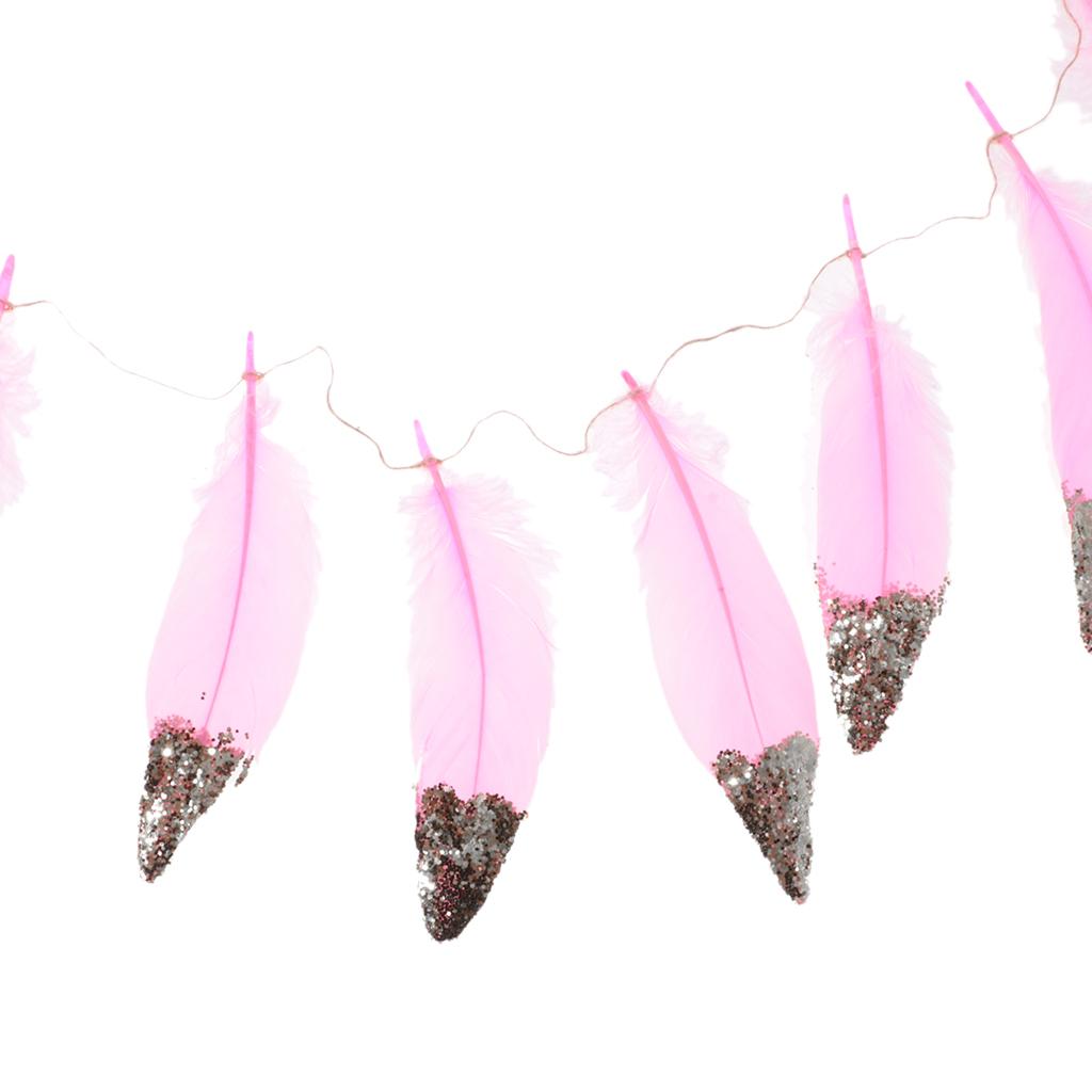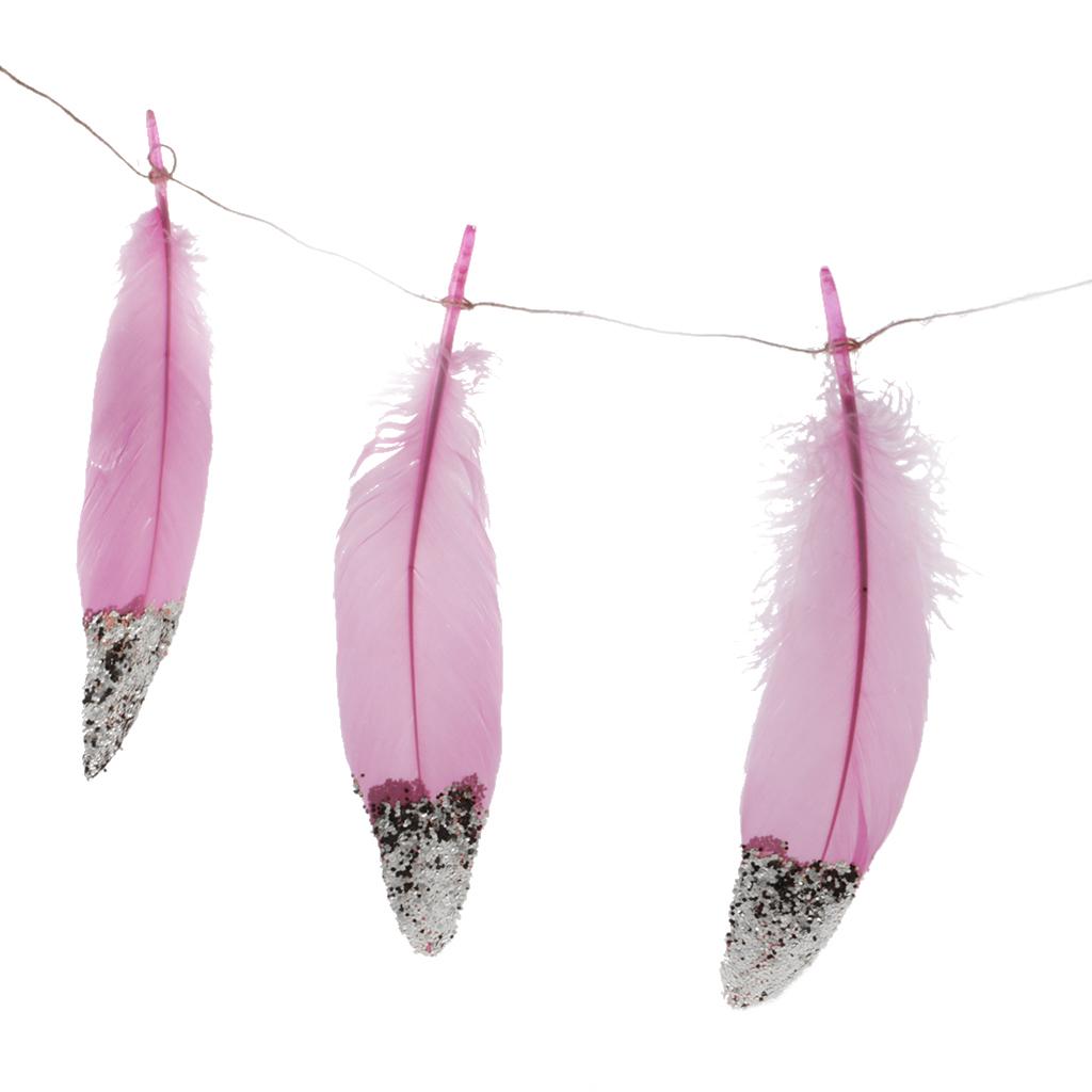 A string of glitter silver dipped feather garland, 13 pieces in total
