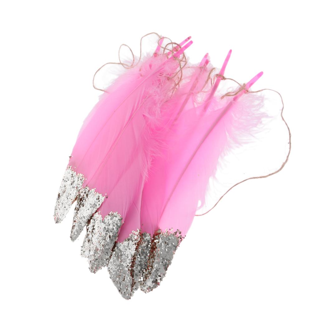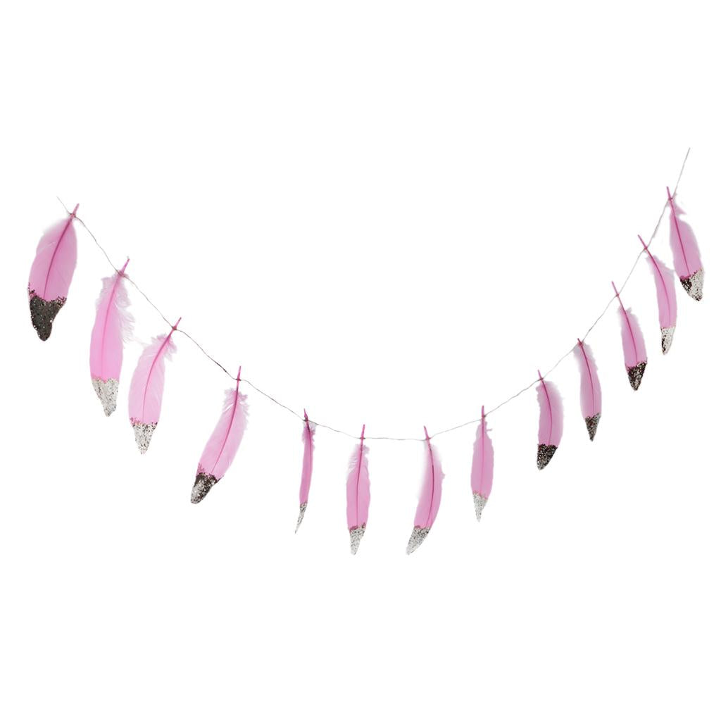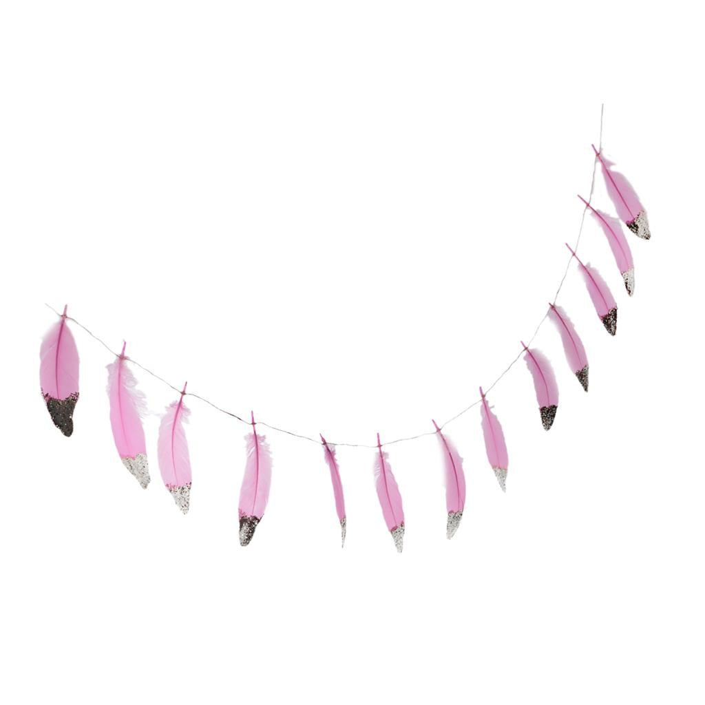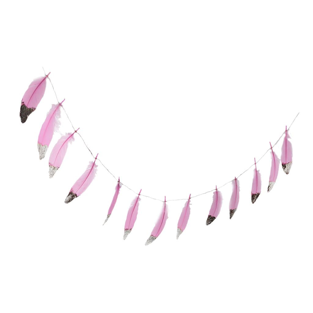 A string of glitter silver dipped feather garland, 13 pieces in total