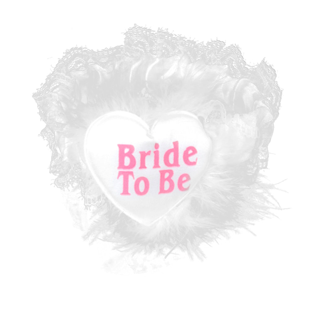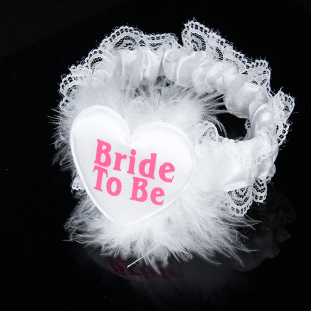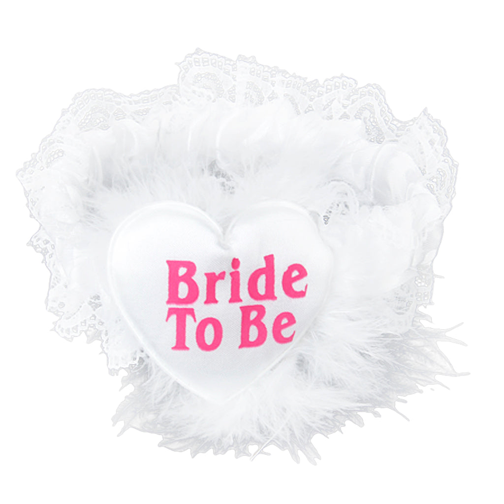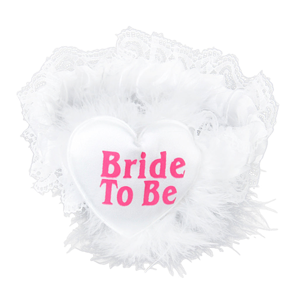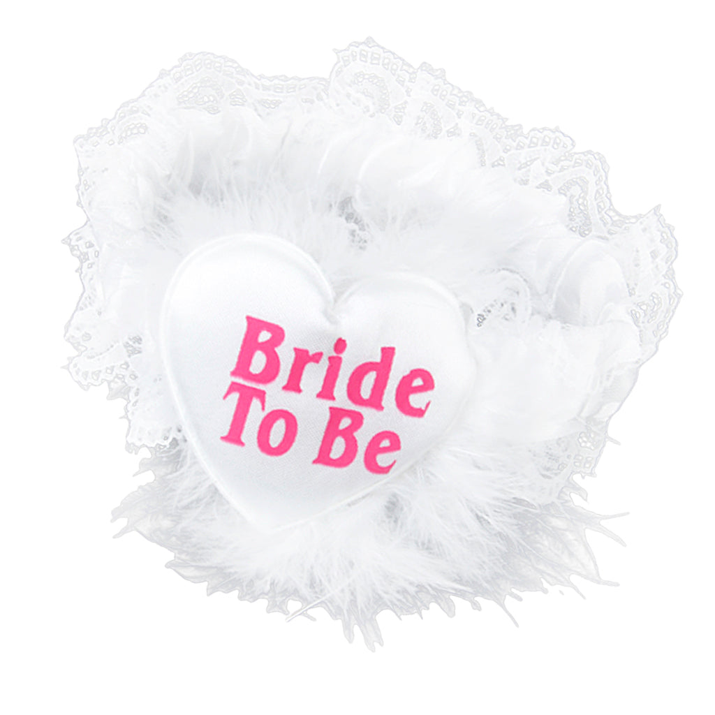 Bride To Be Badge Fluffy Feather Hen Night Party White Lace Garter
