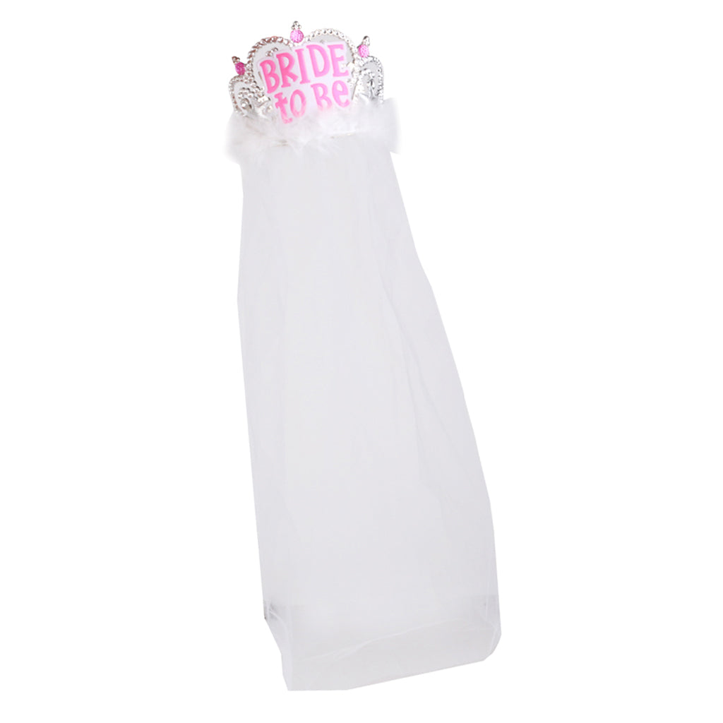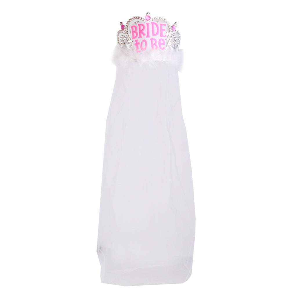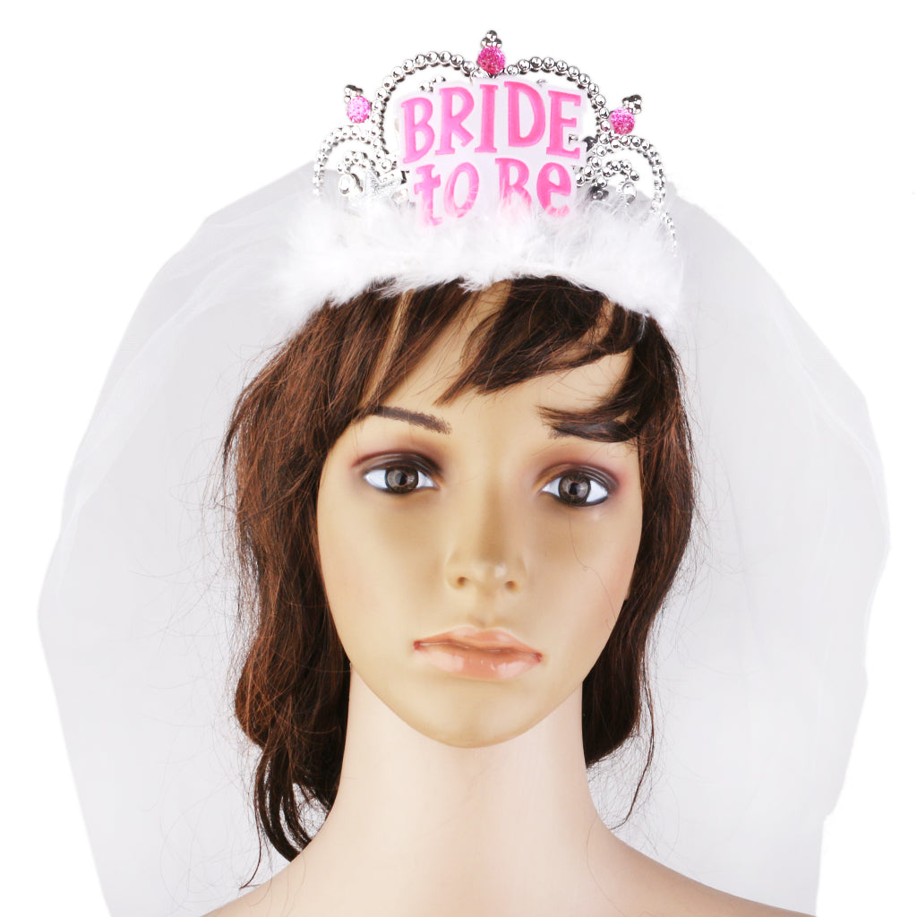 • Shiny tiara decorated with pure white veil, with “Bride To Be” writing