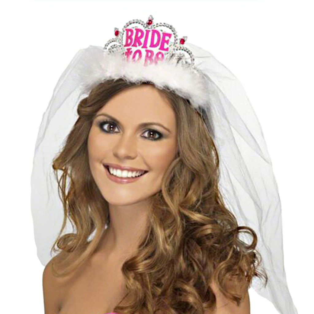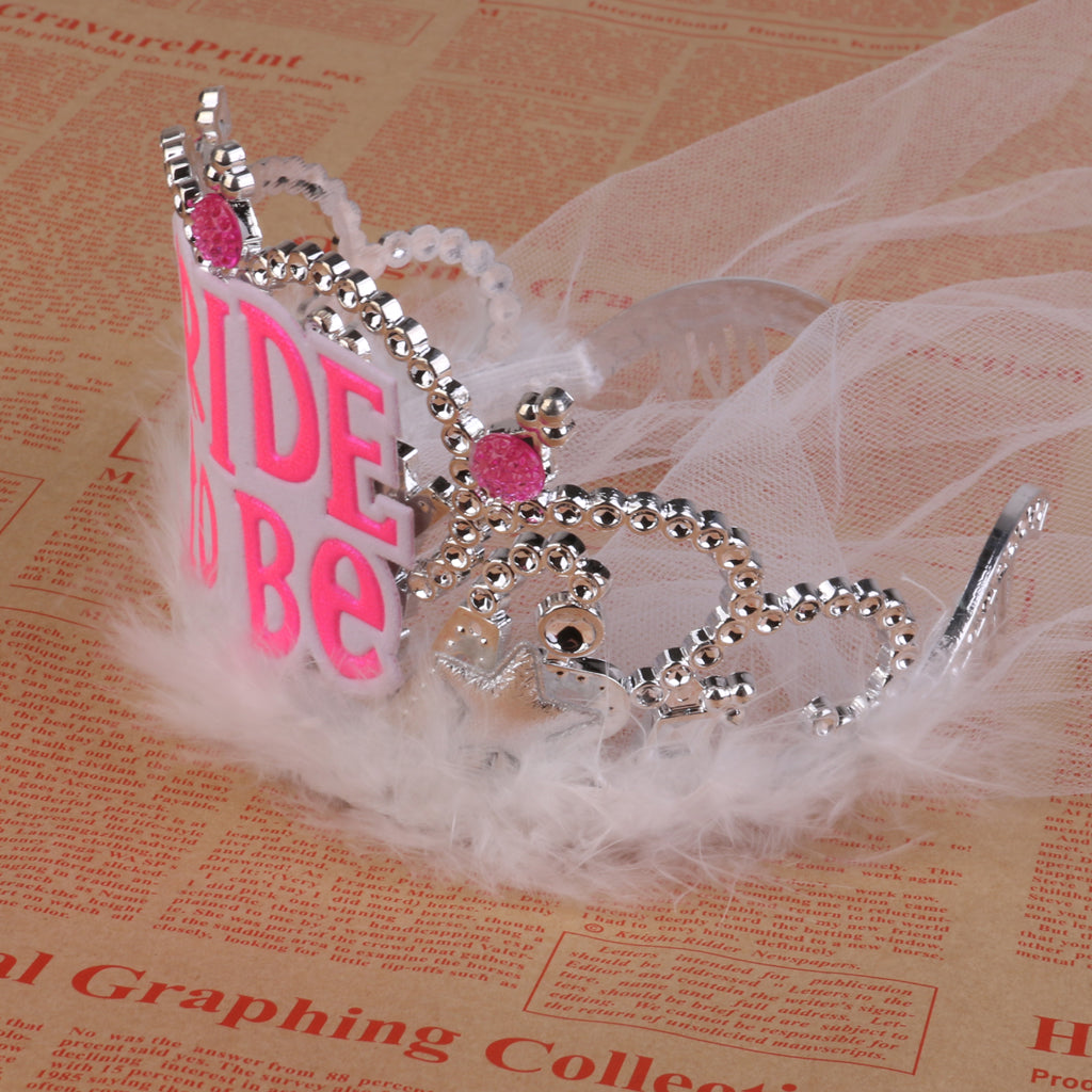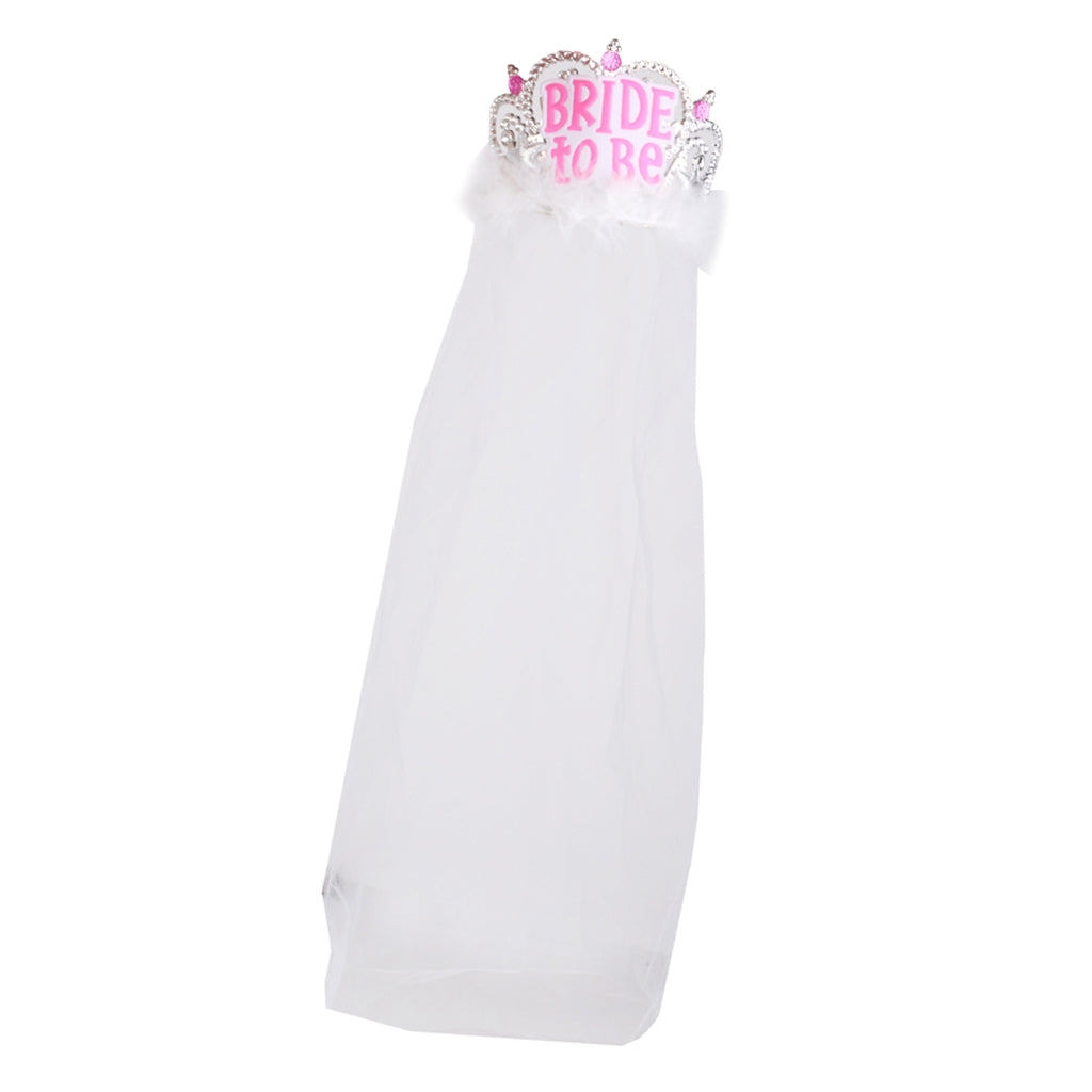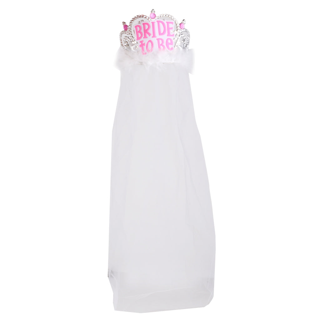 • Shiny tiara decorated with pure white veil, with “Bride To Be” writing