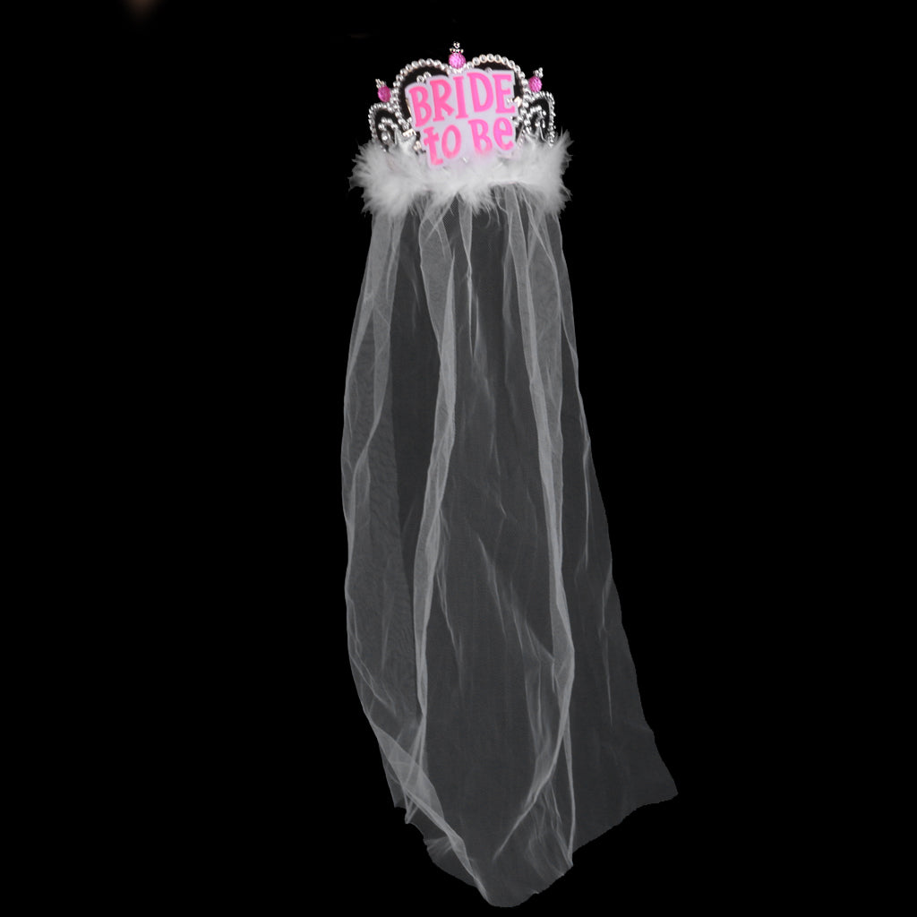 Bride To Be Crown Tiara with White Veil Hen Night Party Bridal Shower Decor
