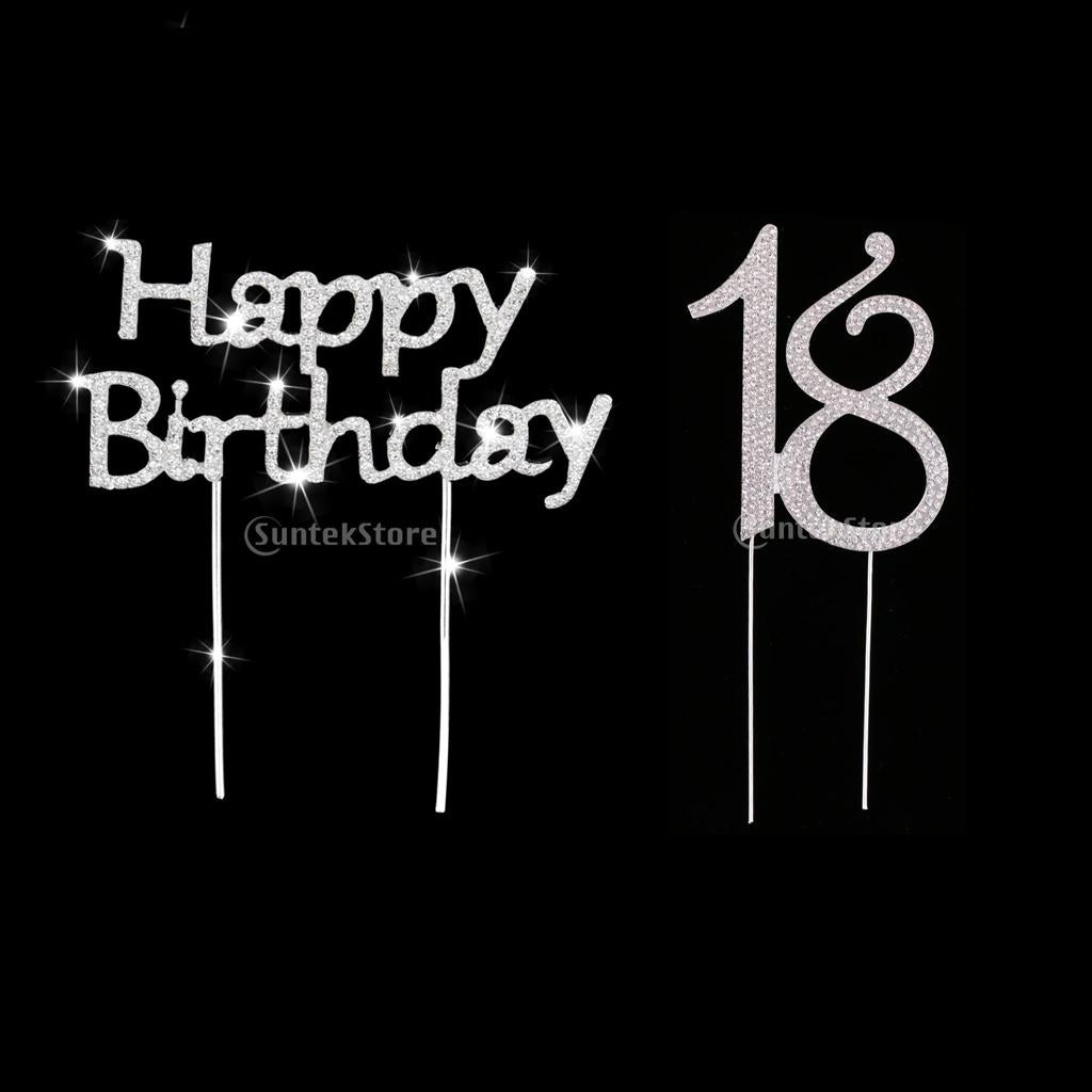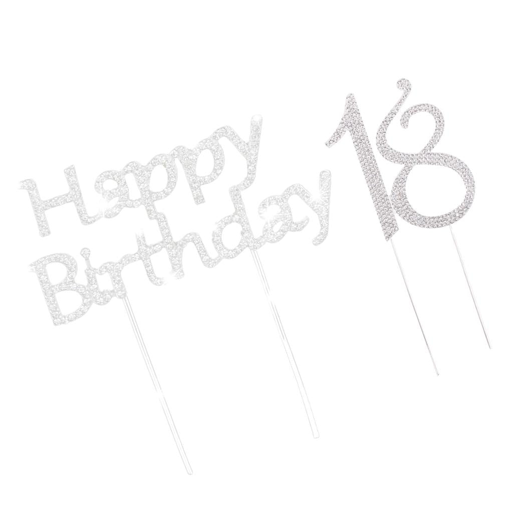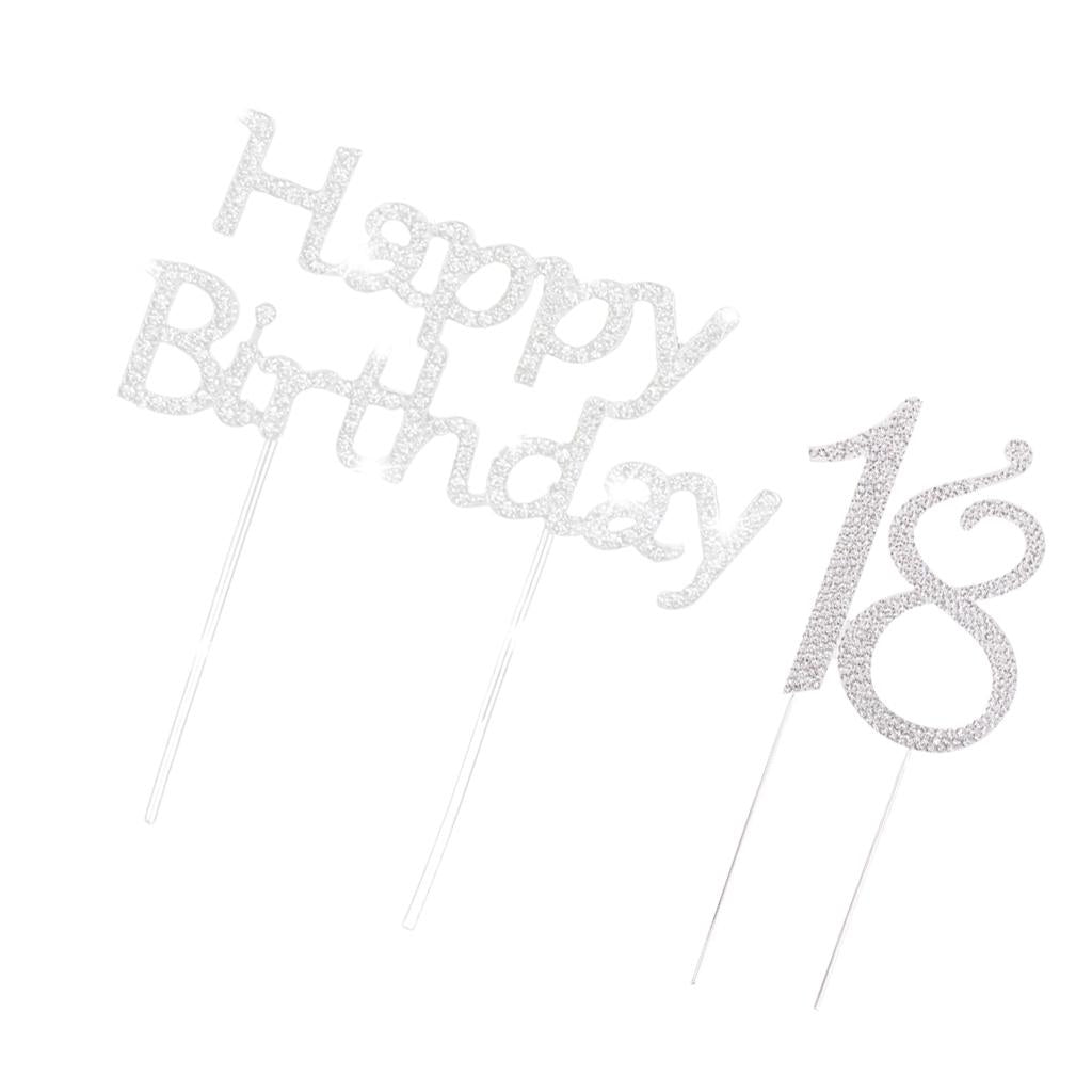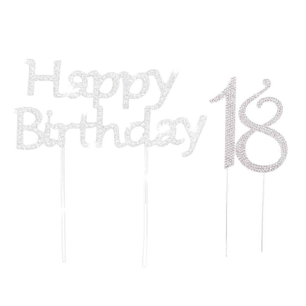 2 pieces of shiny metallic cake toppers, one is HAPPY BIRTHDAY monogram, the other is number 18