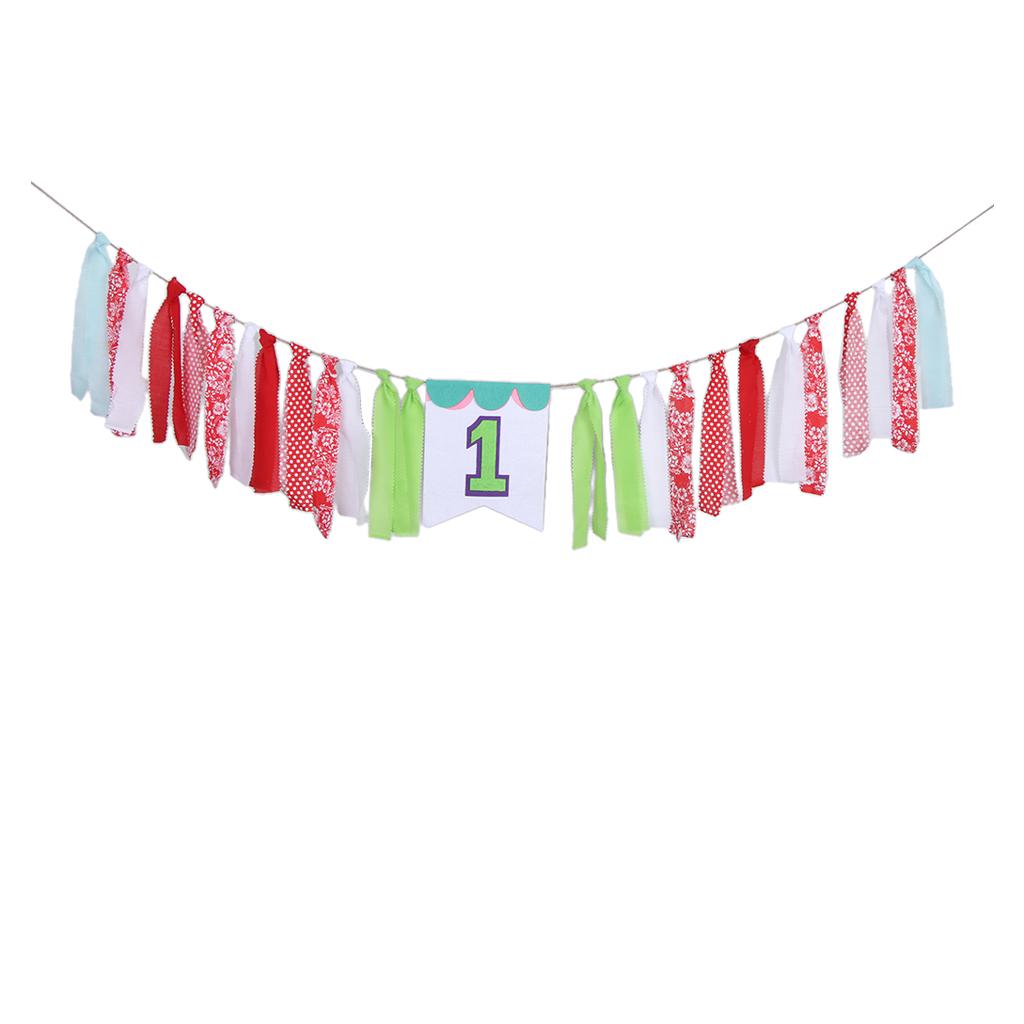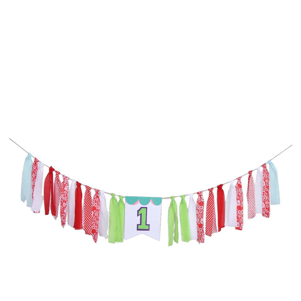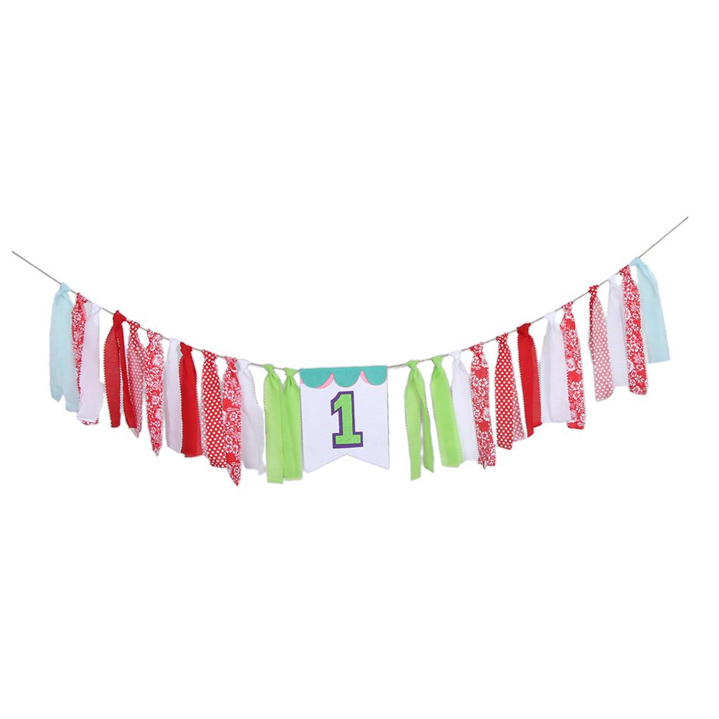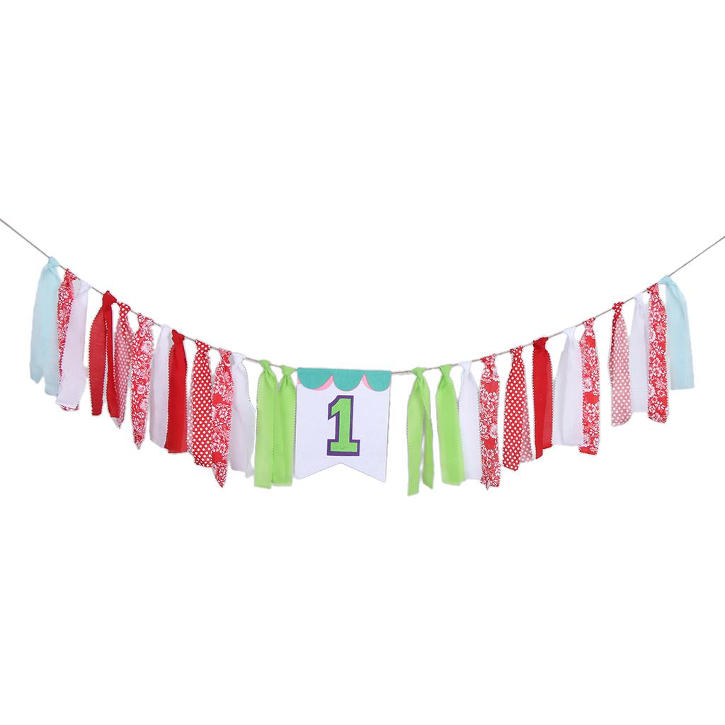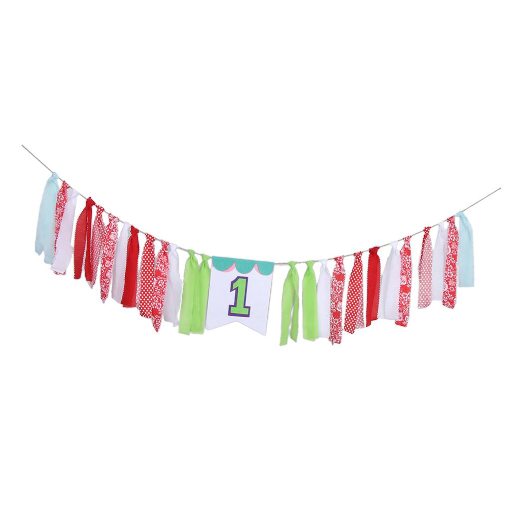 Fabric Strips Bunting Banner Tassel Garland Baby 1st Birthday Decor Style 2