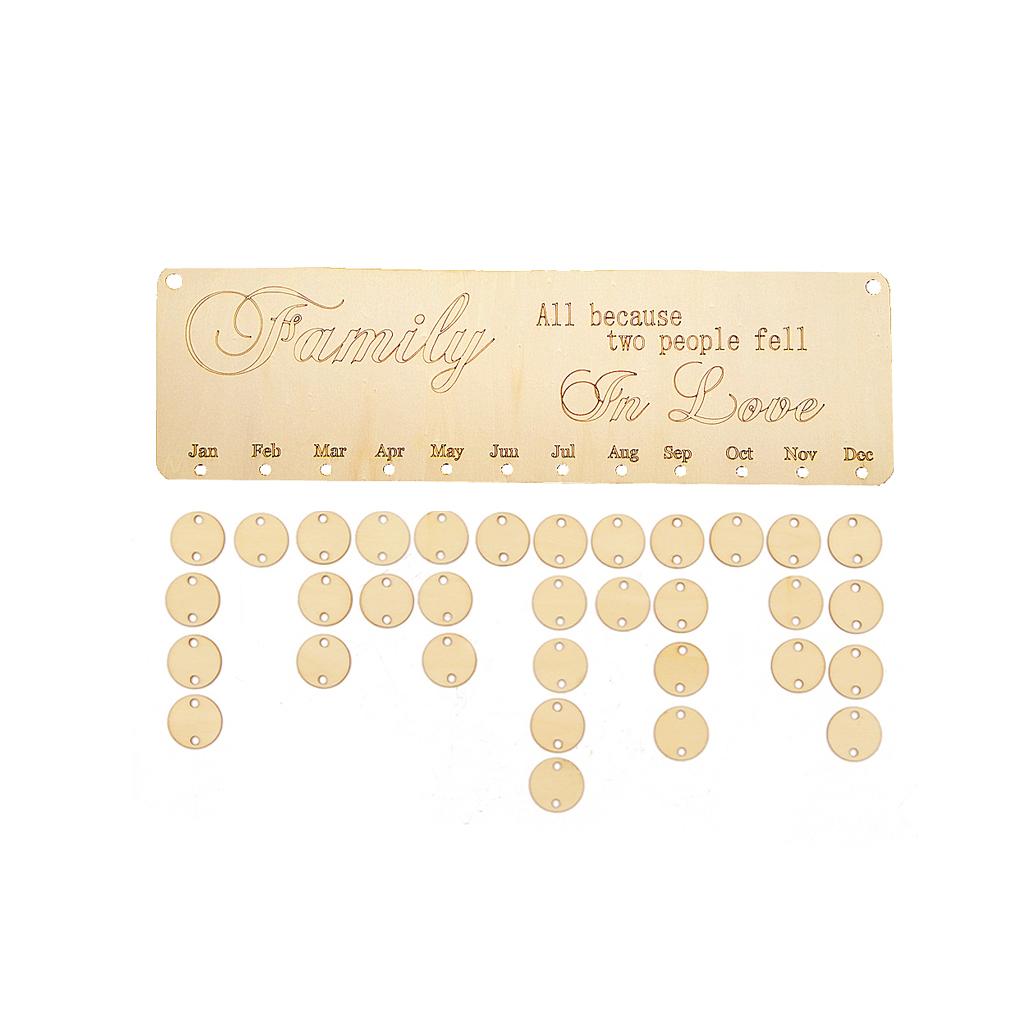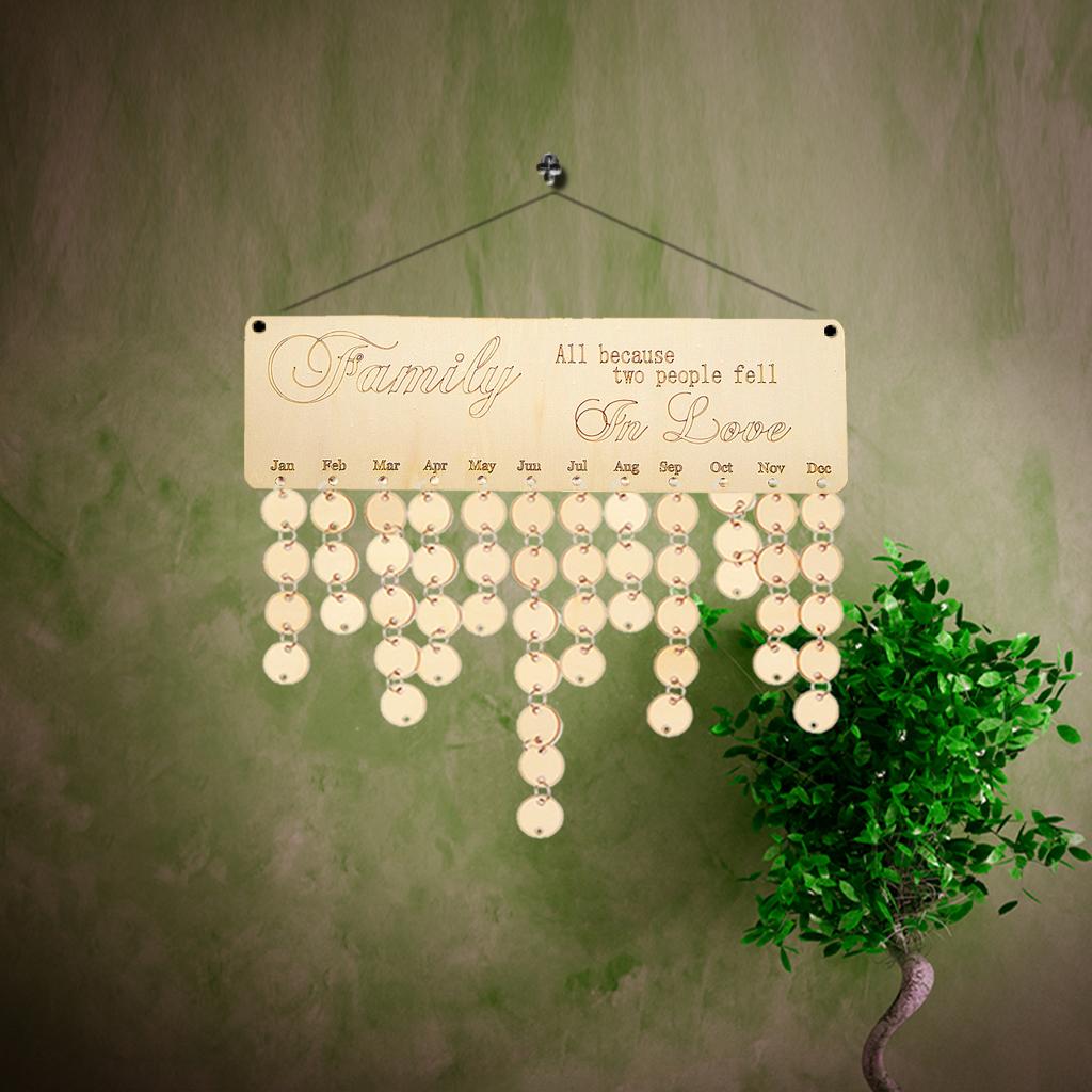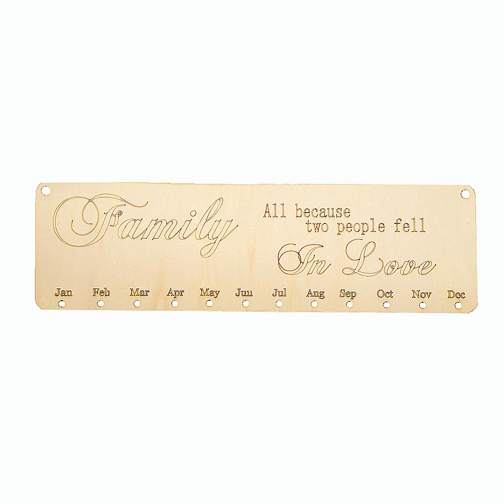 Novelty MDF Family wooden reminder calendar, with words all because two people fell in love.