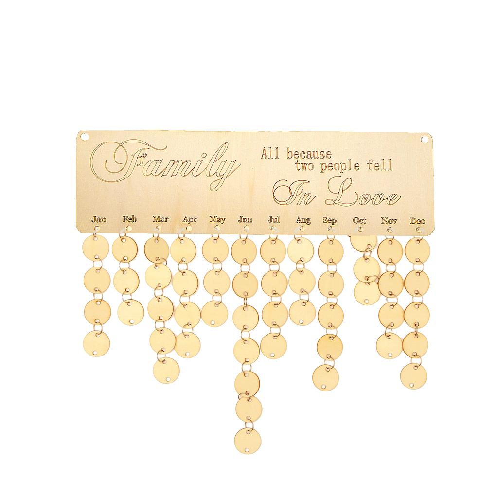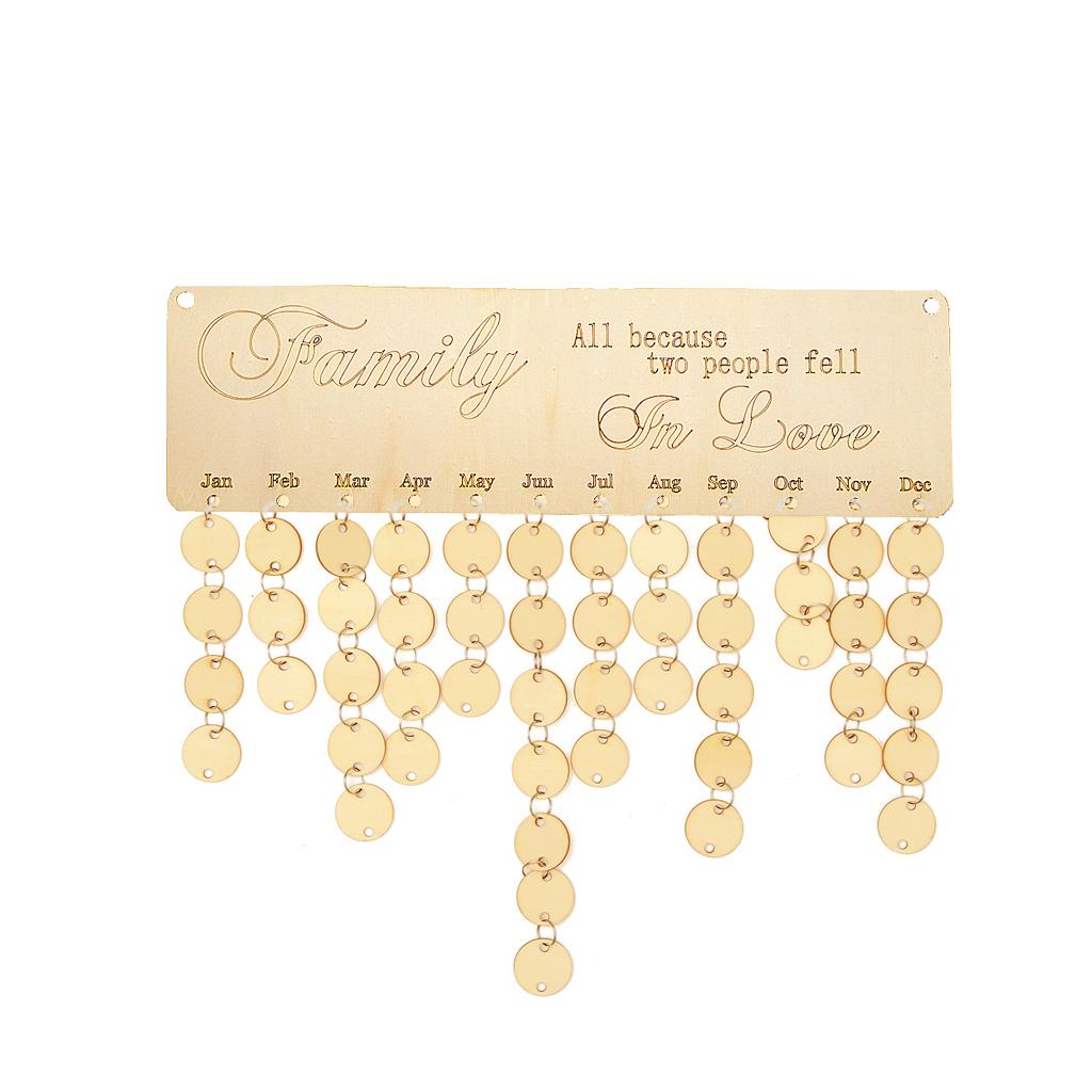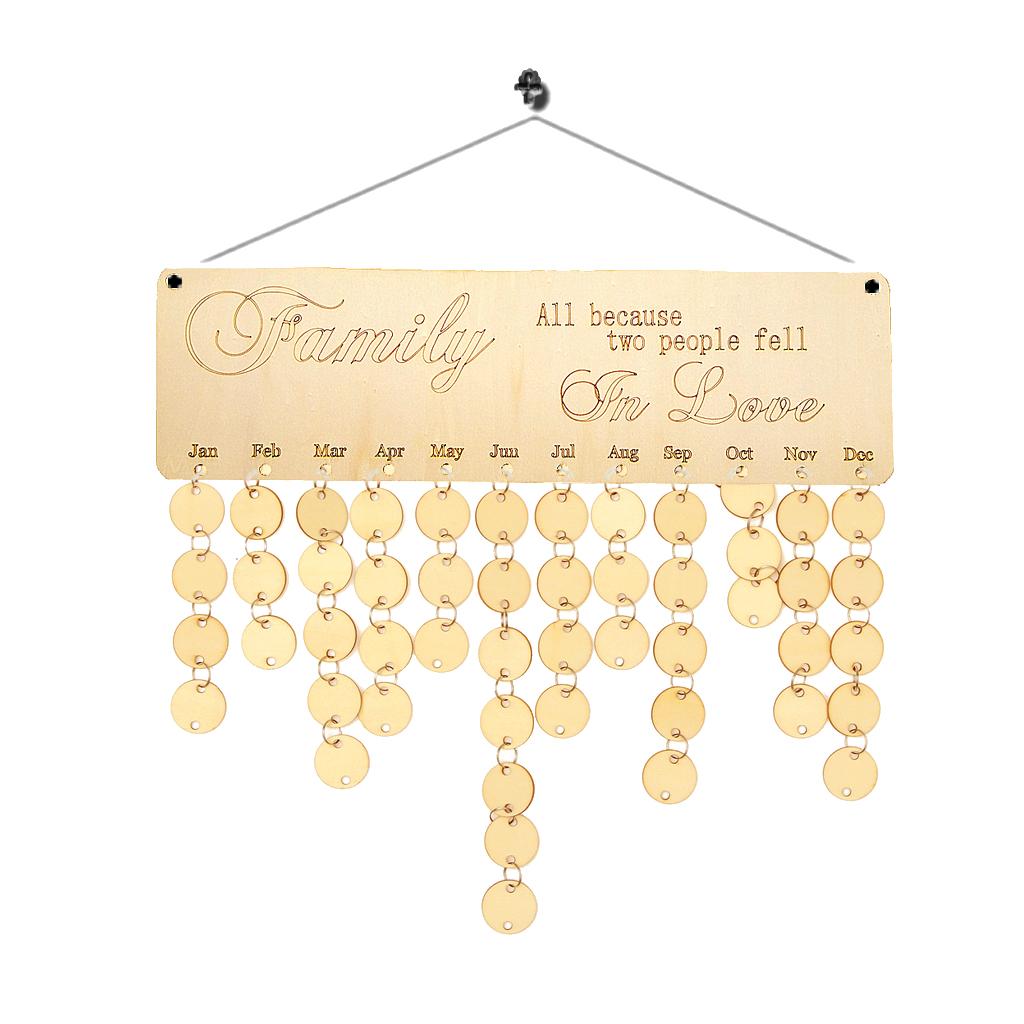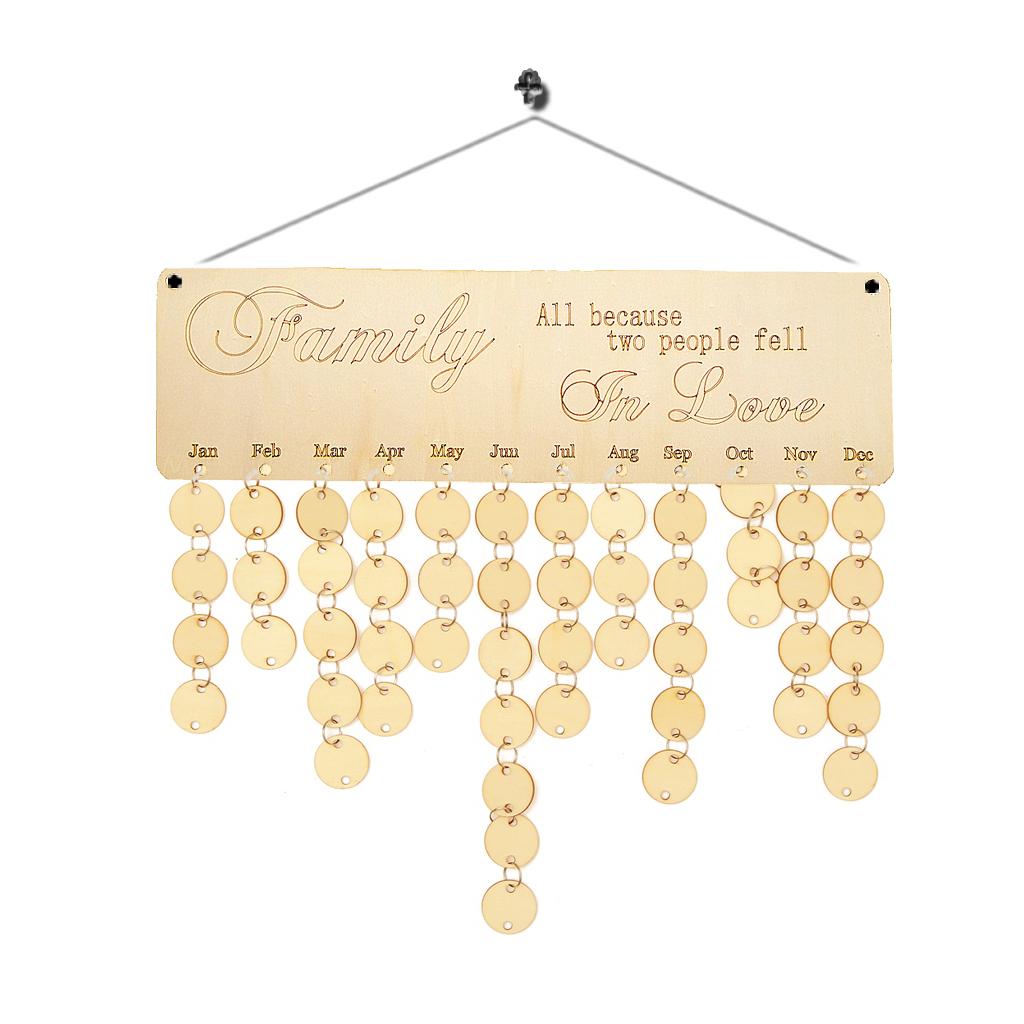 2.It is made of wood,All you have to do is write on the wooden disc the name and date and then hang it under the appropriate month, so you should never ever forget.