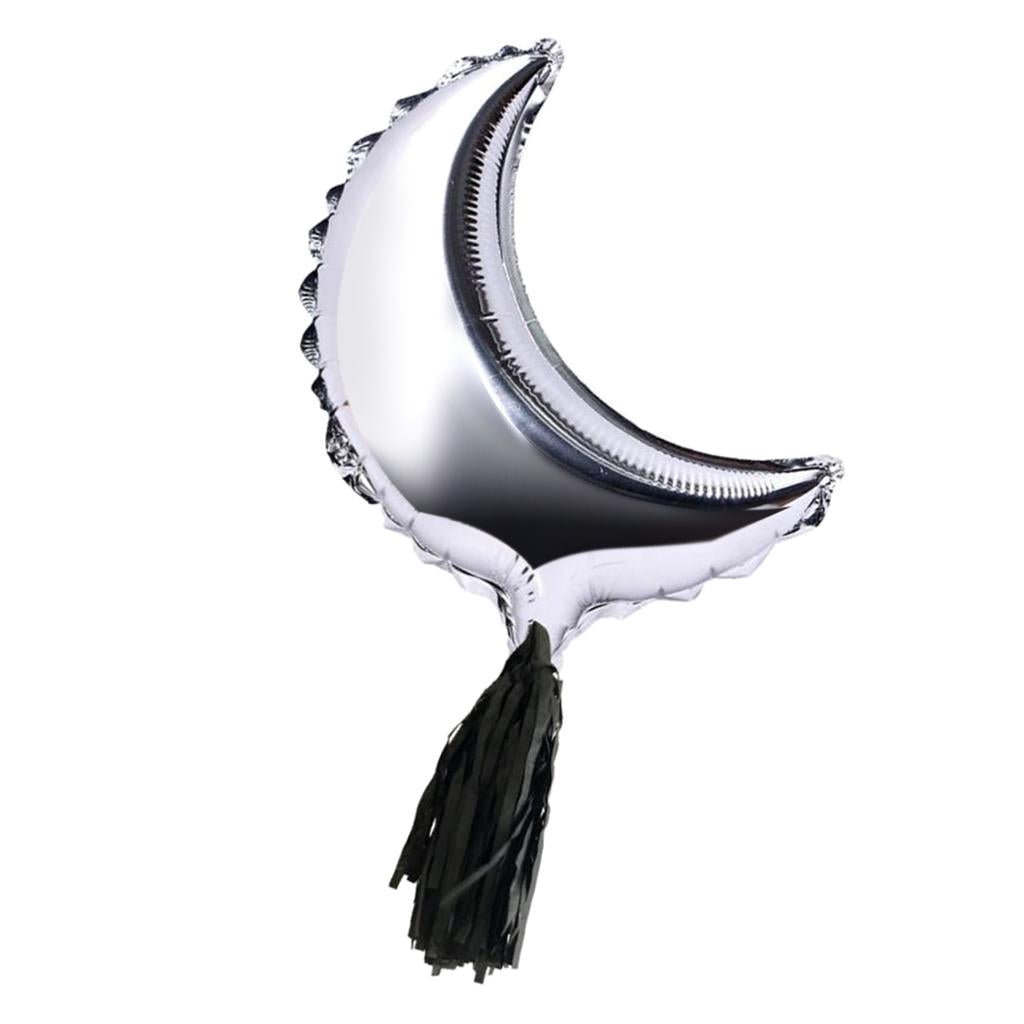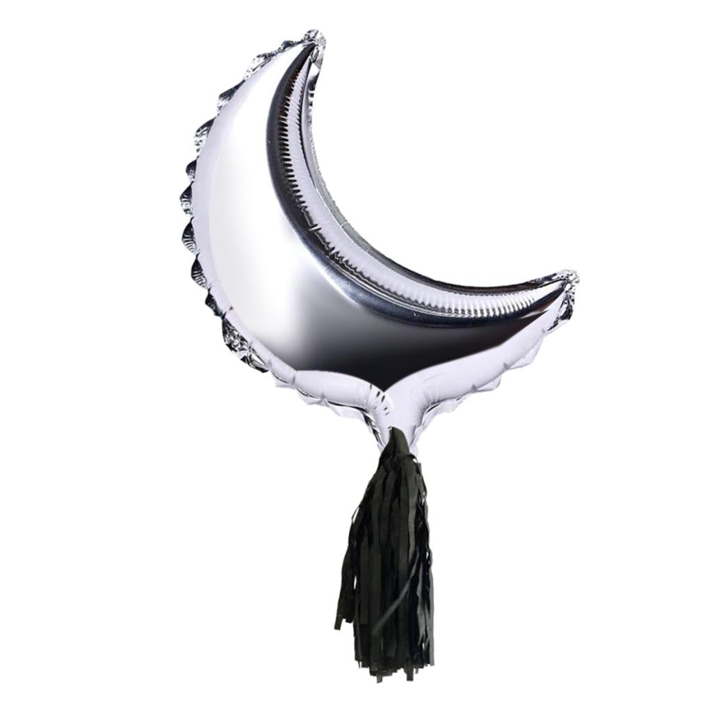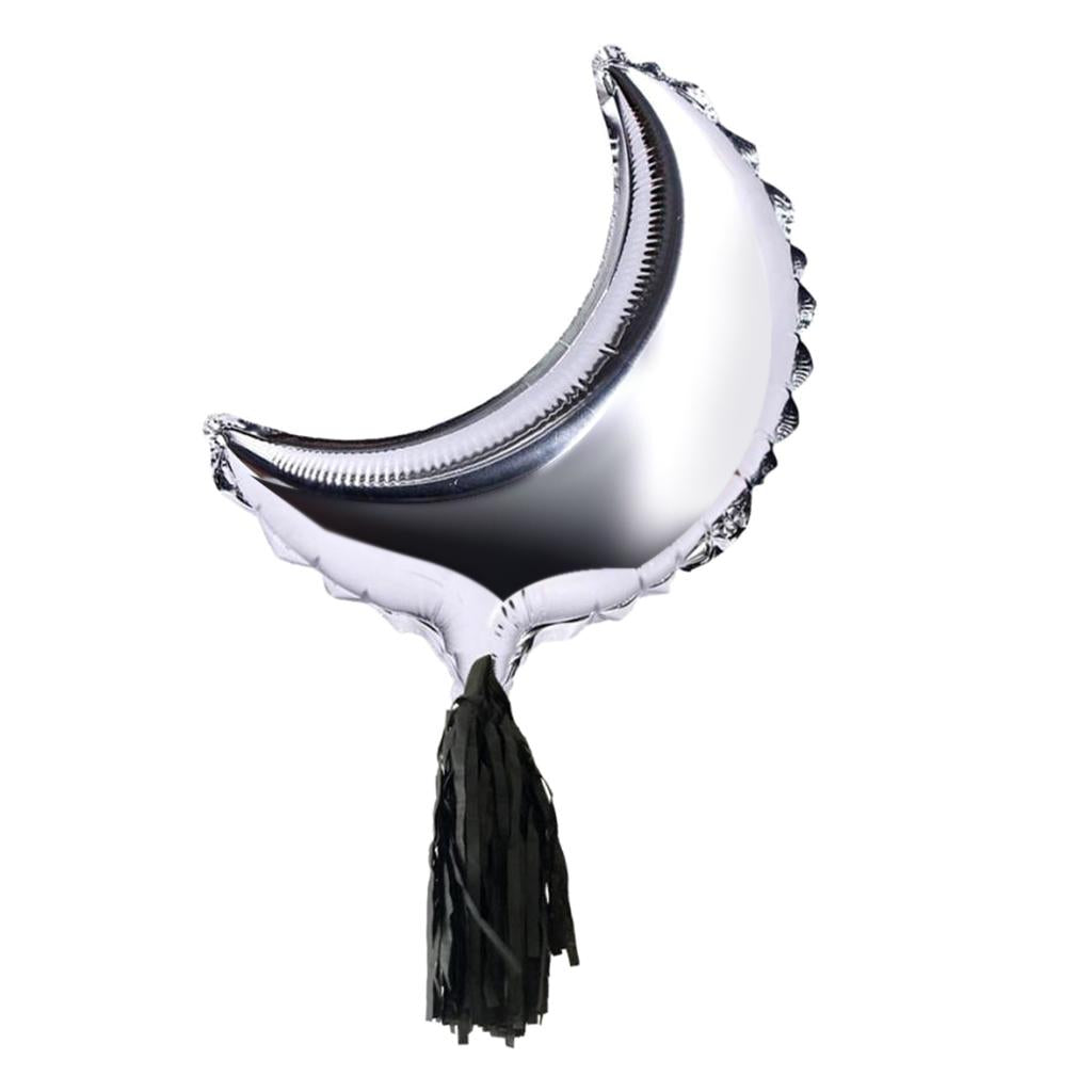 Foil Moon Helium Balloon Mylar Balloons with Tassel Halloween Party Decor 36 Inch Sliver