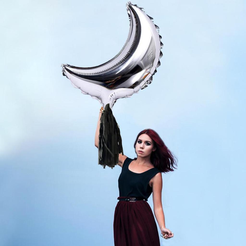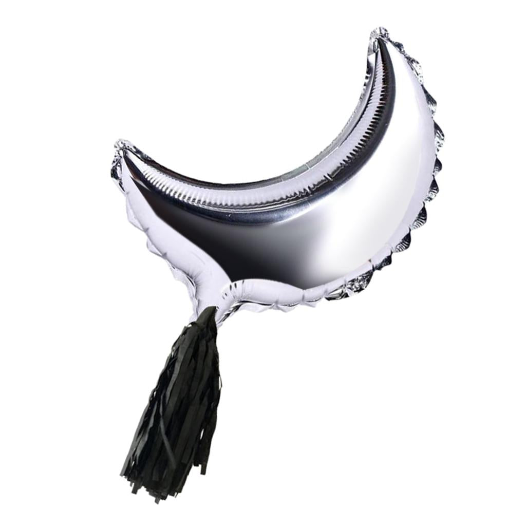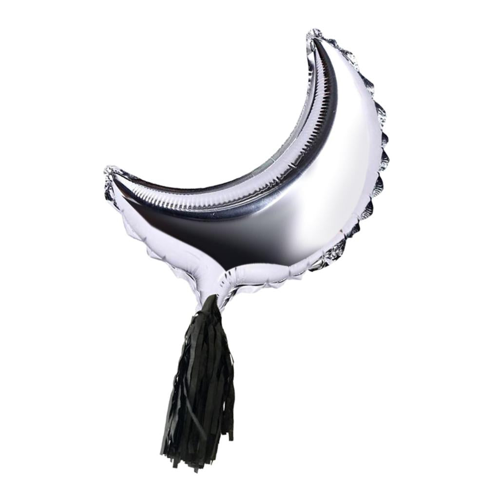 Foil Moon Helium Balloon Mylar Balloons with Tassel Halloween Party Decor 36 Inch Sliver