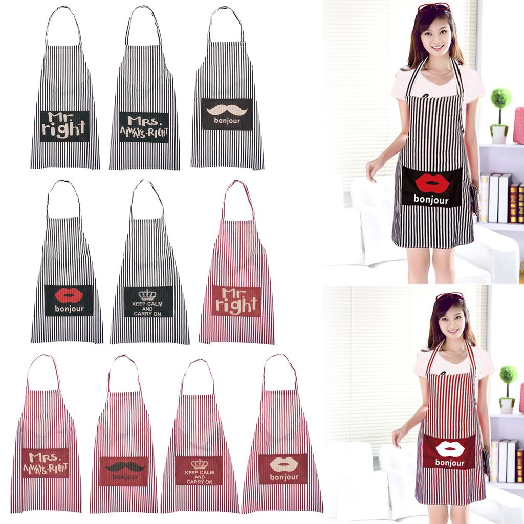 Funny kitchen striped aprons with mr.mrs ,lips,crown,mustache printed