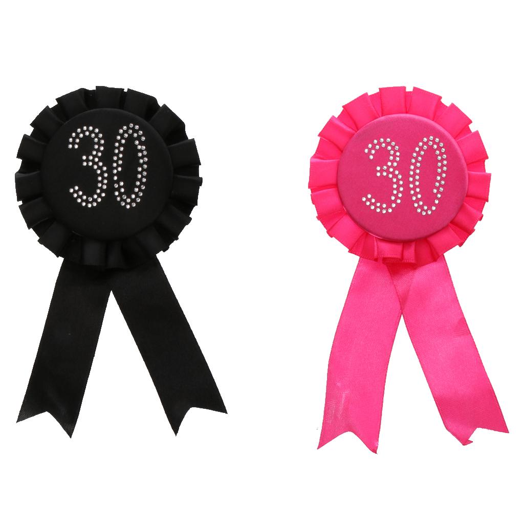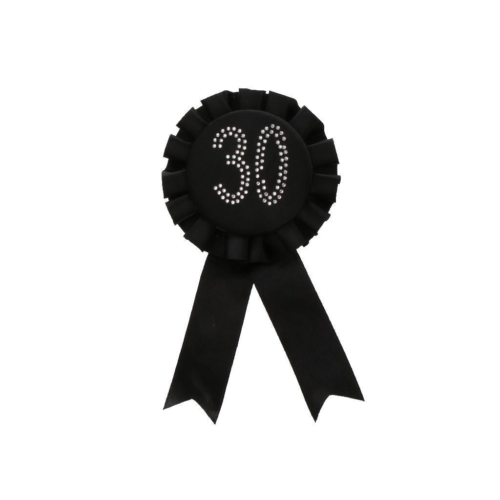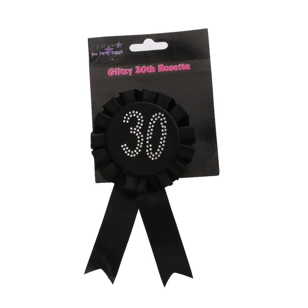 Glitter 30 Award Ribbon Rosette Badge Brooch Birthday Party Favour Black