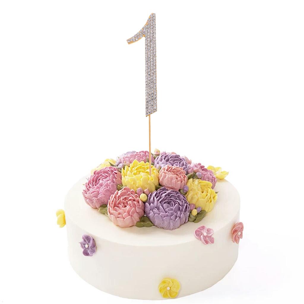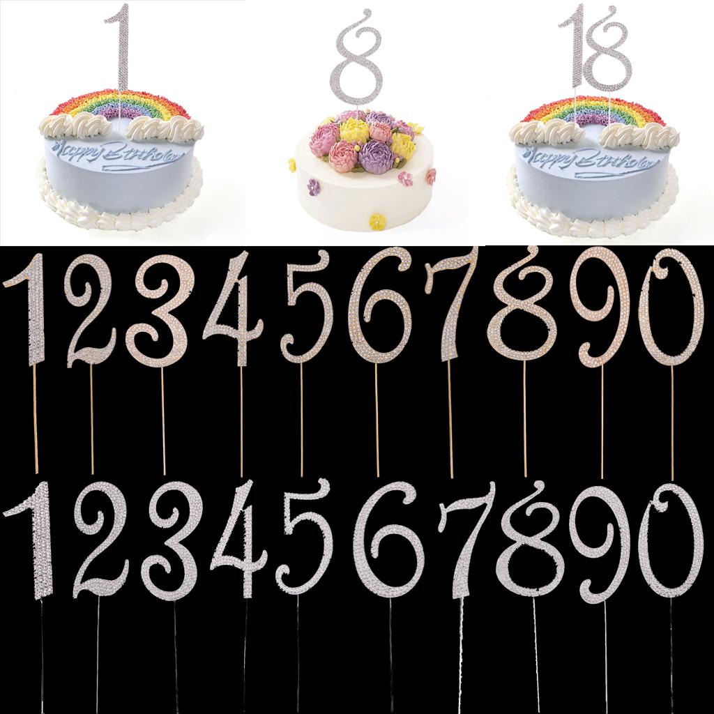 Glitter Crystal Rhinestone Number Figure Cake Topper Cupcake Picks Gold 1