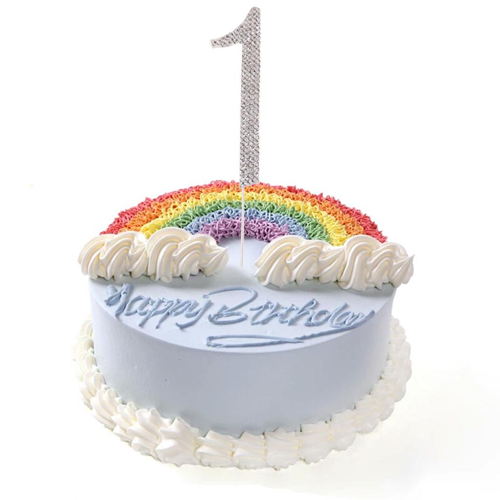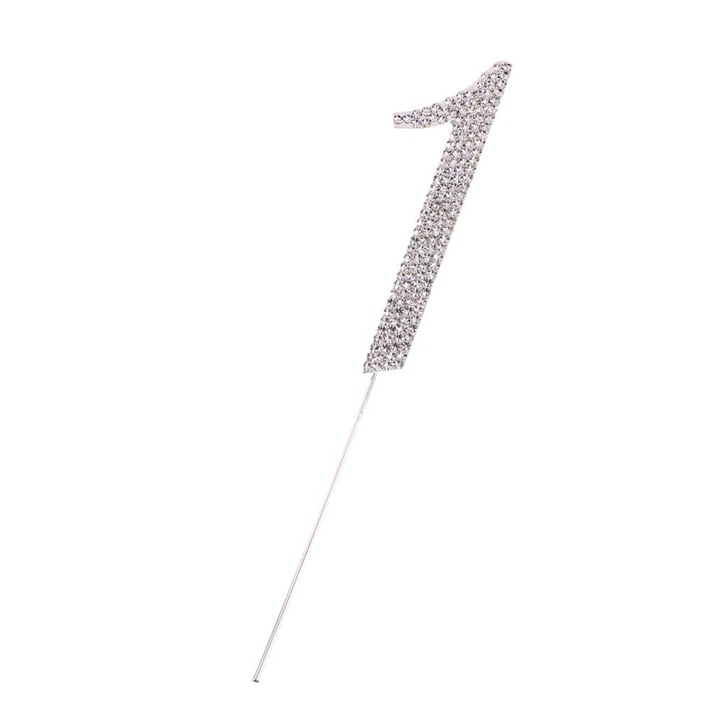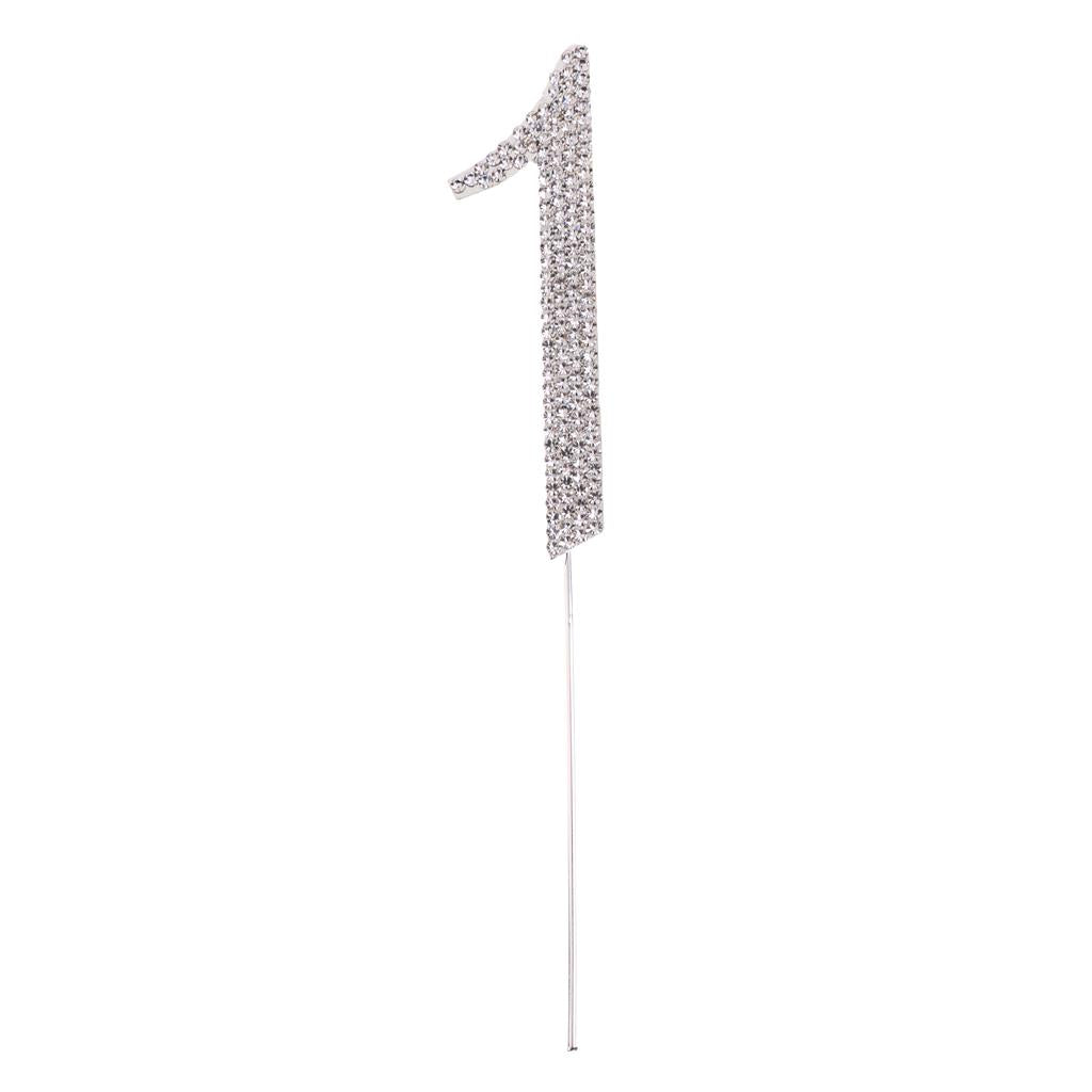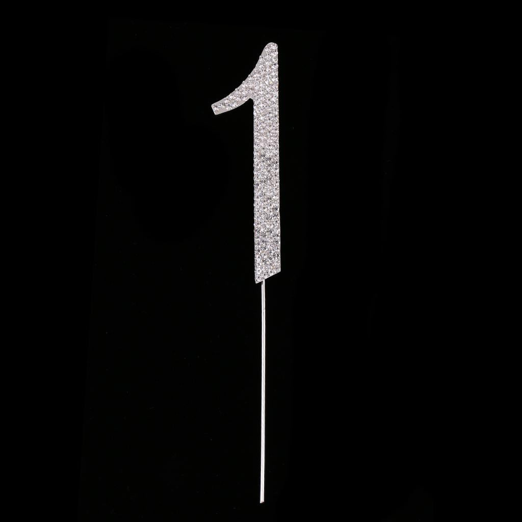 Glitter Crystal Rhinestone Number Figure Cake Topper Cupcake Picks Silver 1