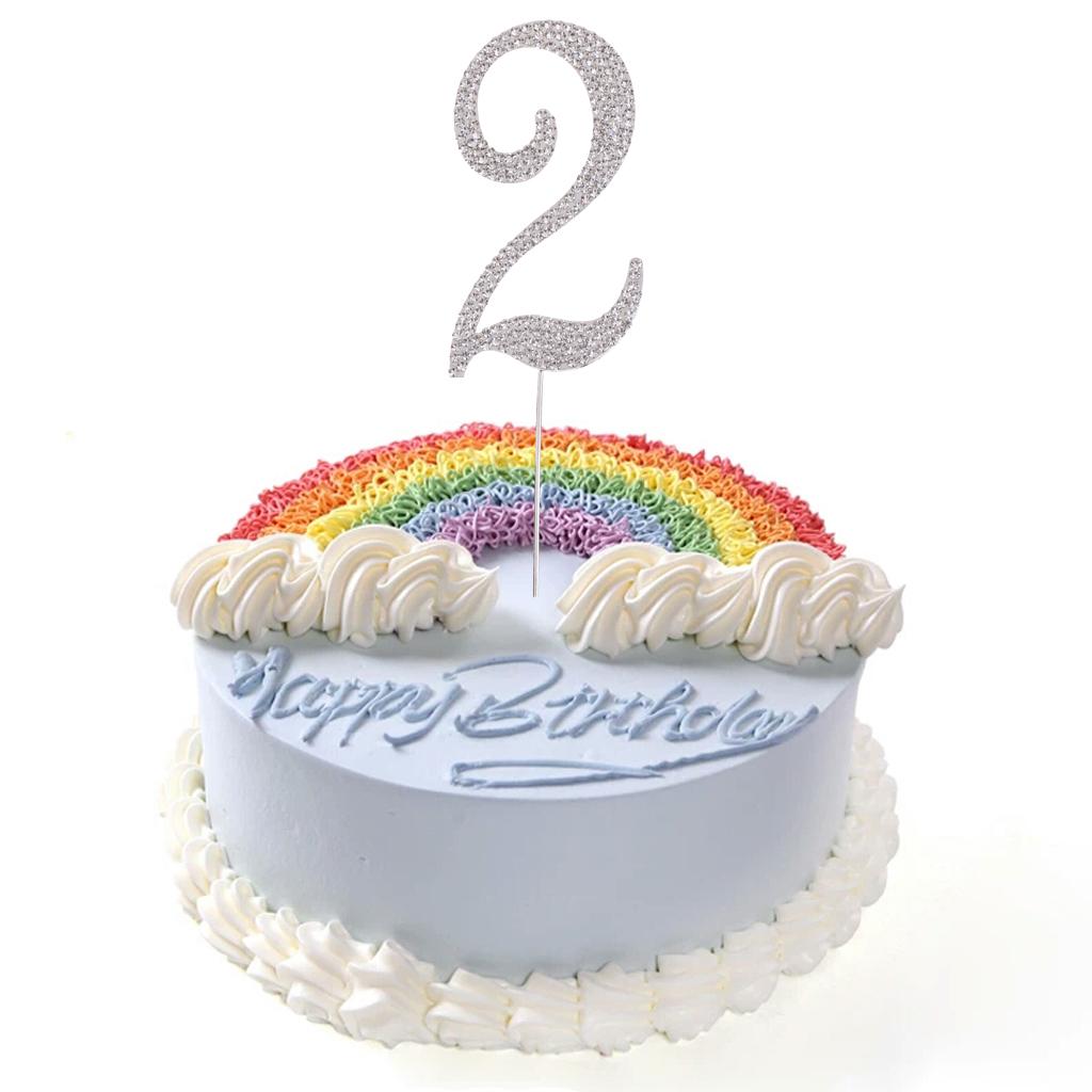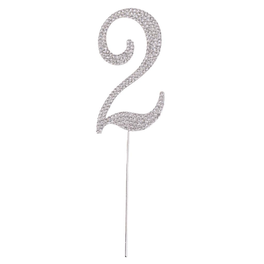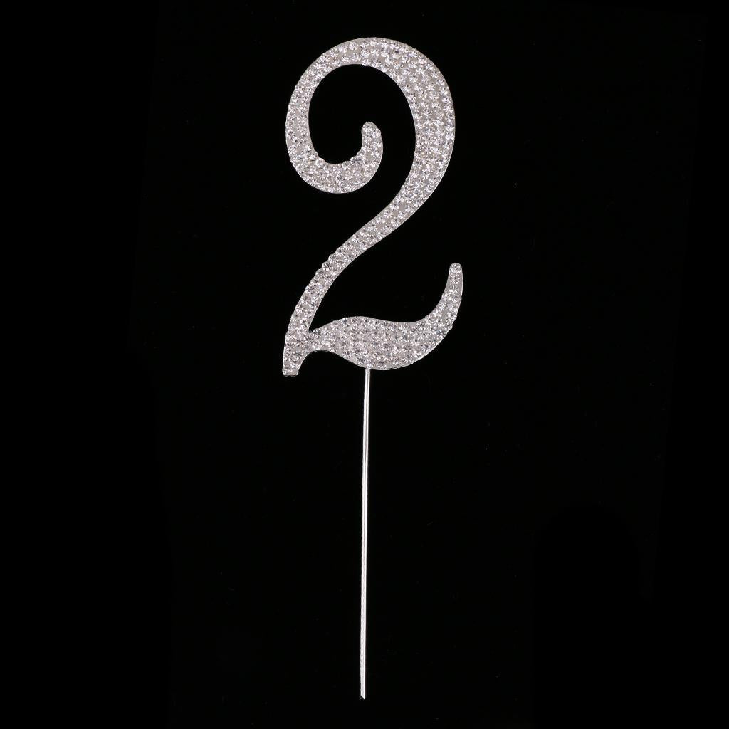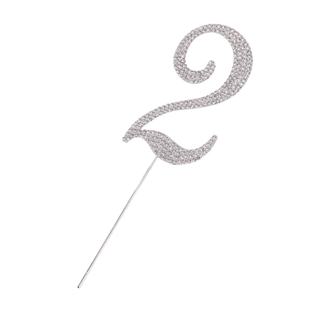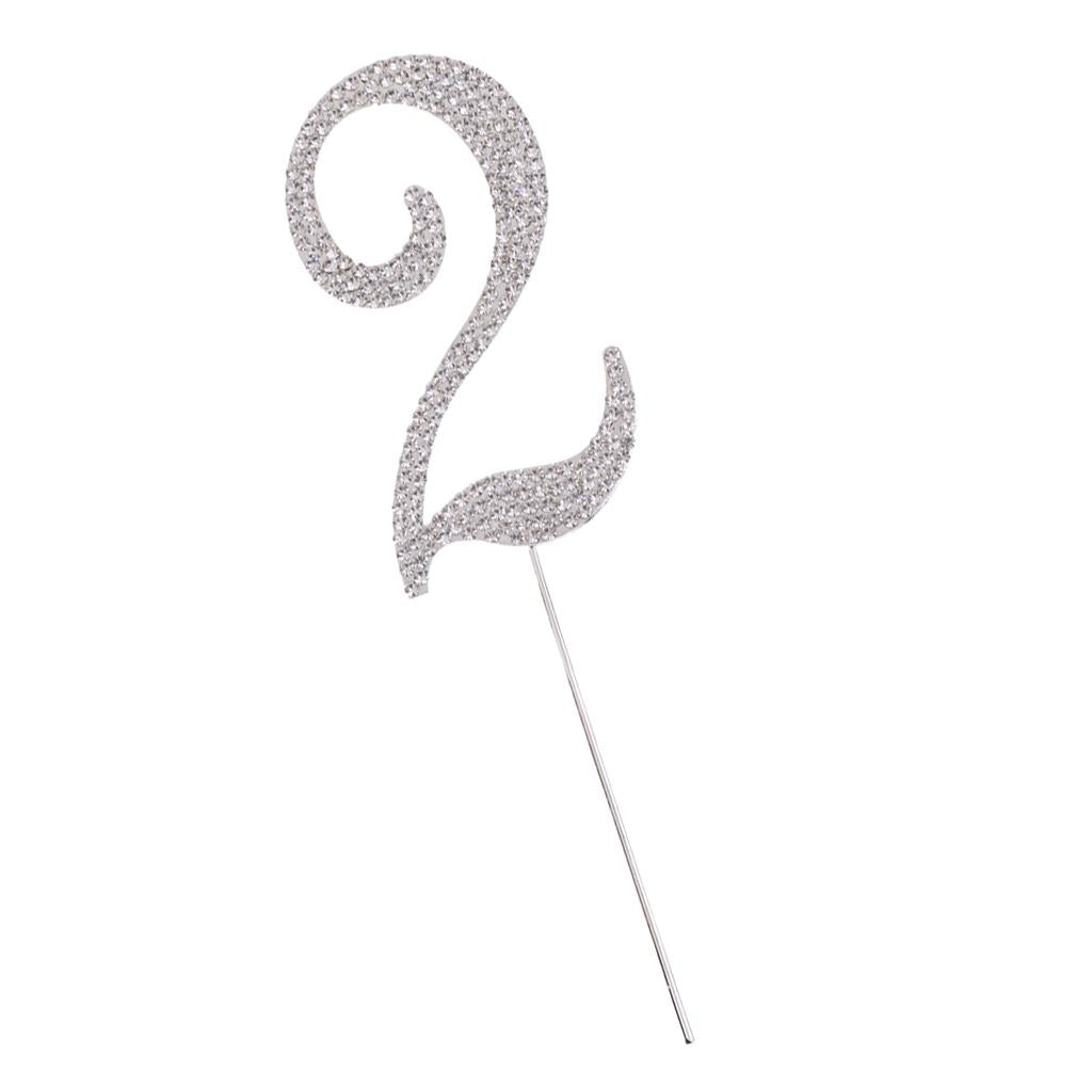 Glitter Crystal Rhinestone Number Figure Cake Topper Cupcake Picks Silver 2