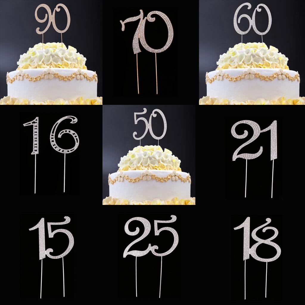 Glitter Crystal Rhinestone Numbers Anniversary Birthday Party Cake Topper 18