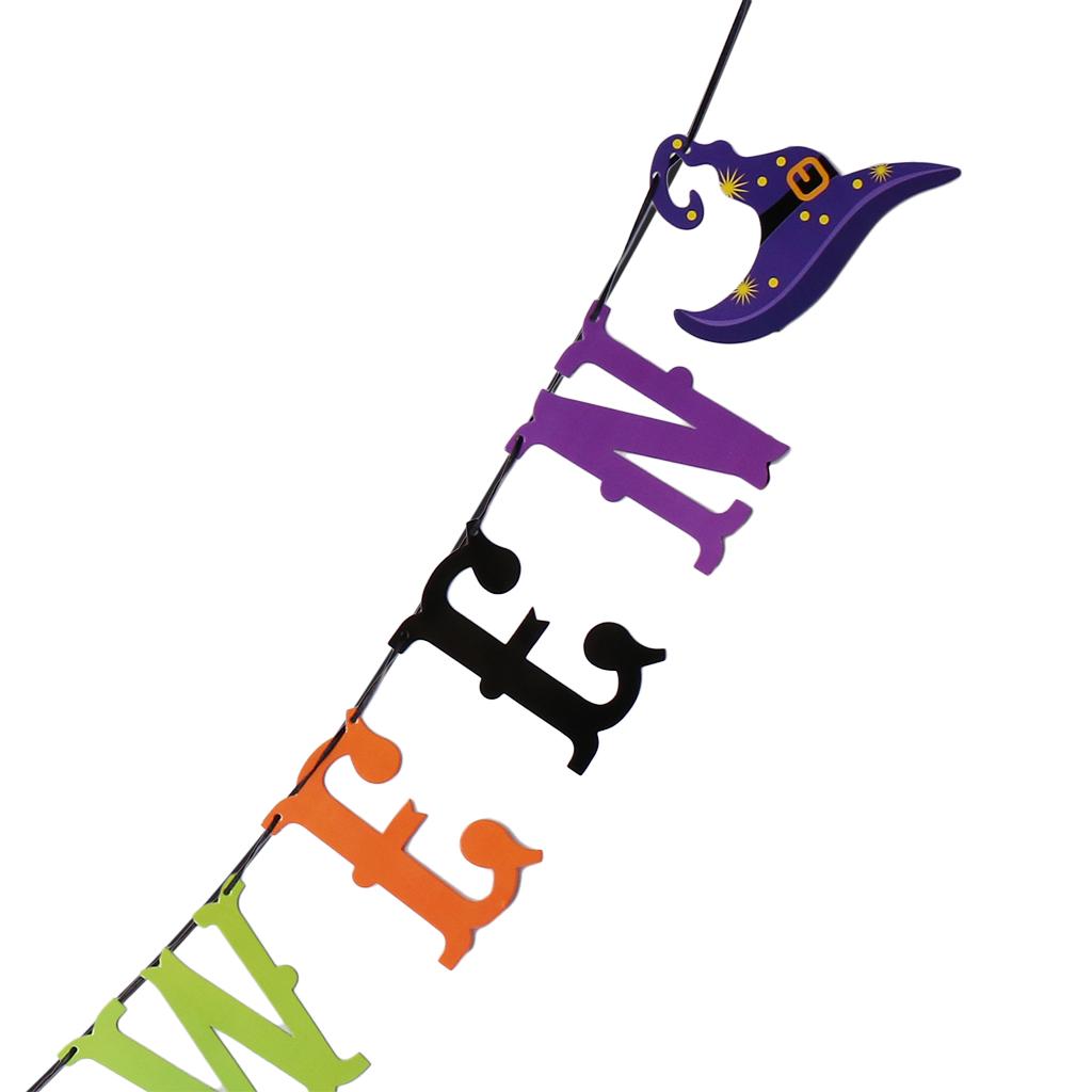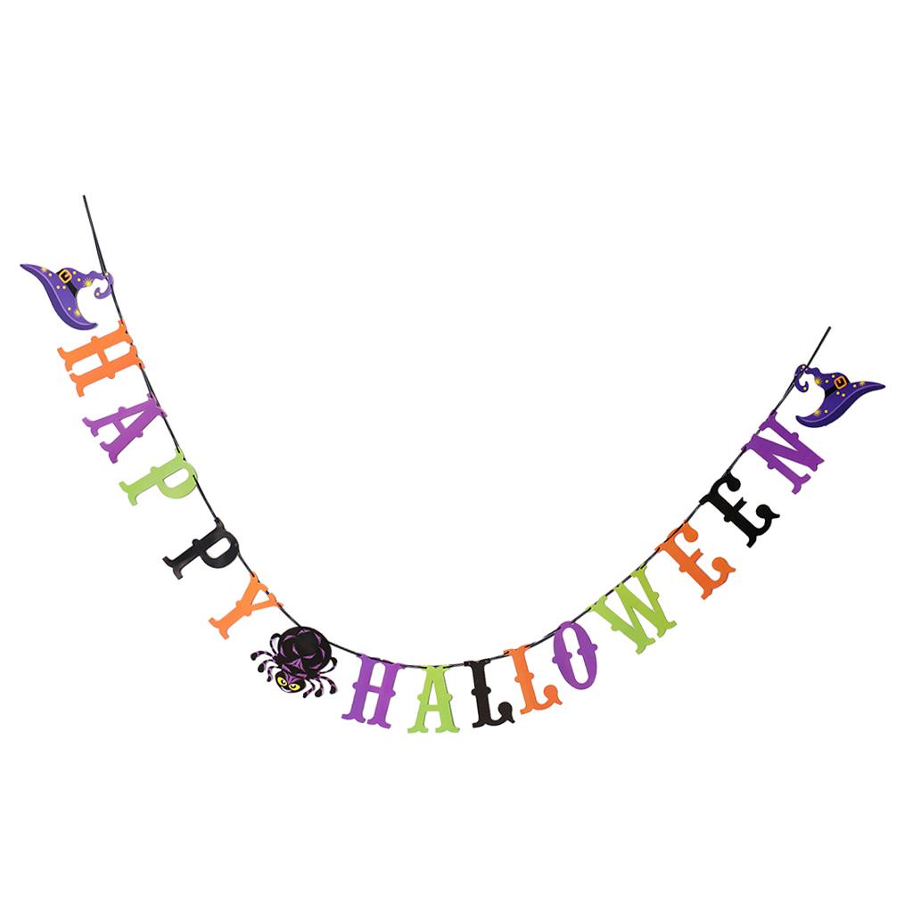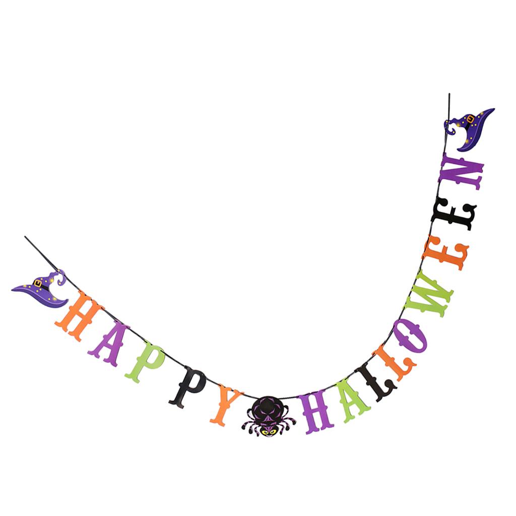 Novelty hanging banner with letters"HAPPY HALLOWEEN" and cartoon spider witch hat decoration