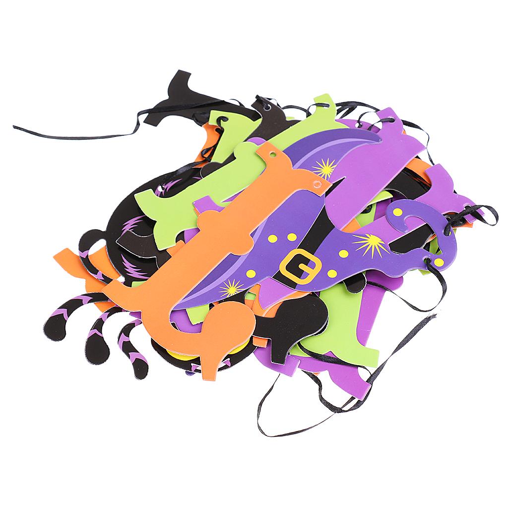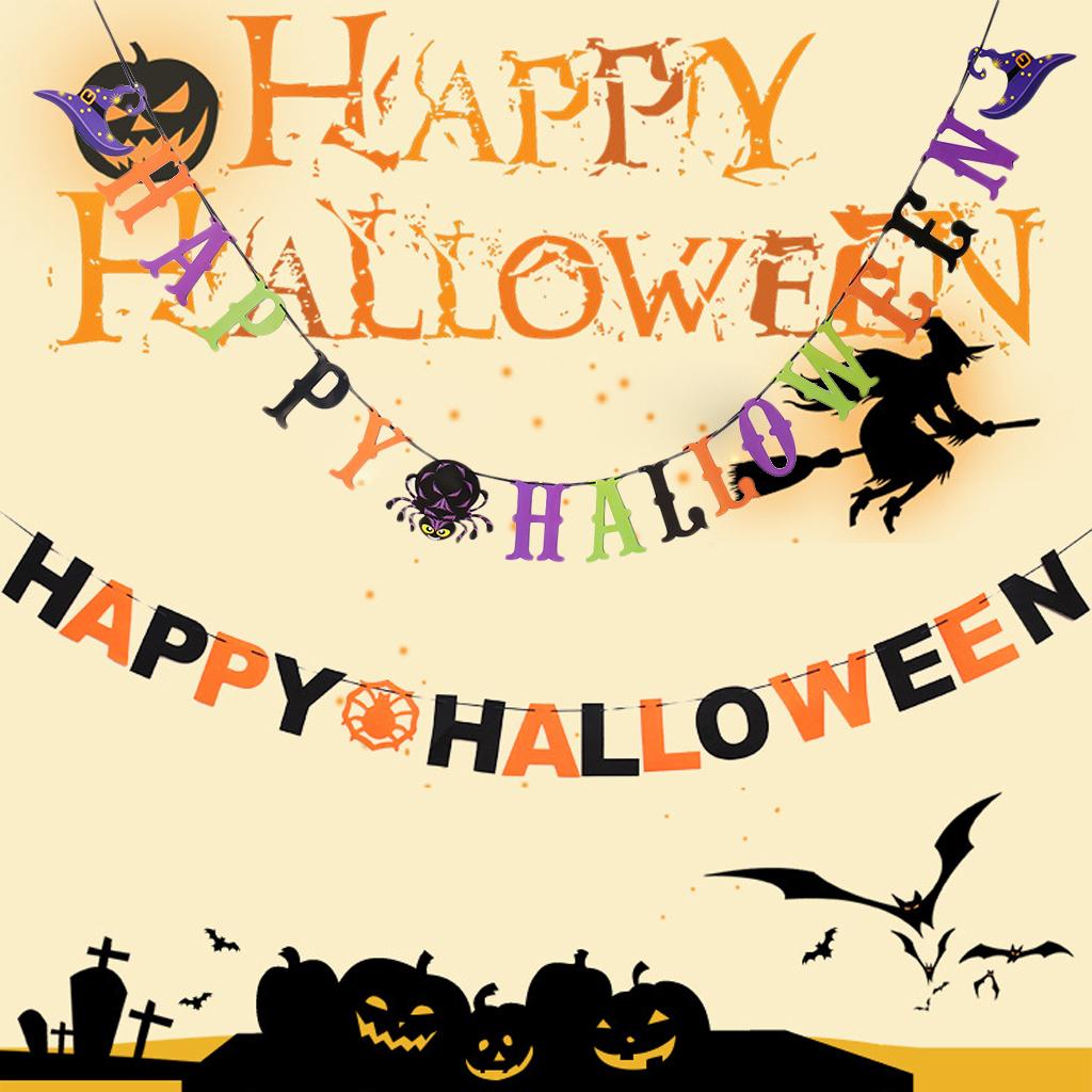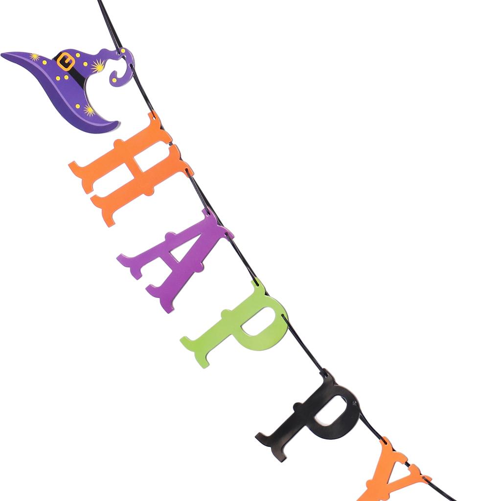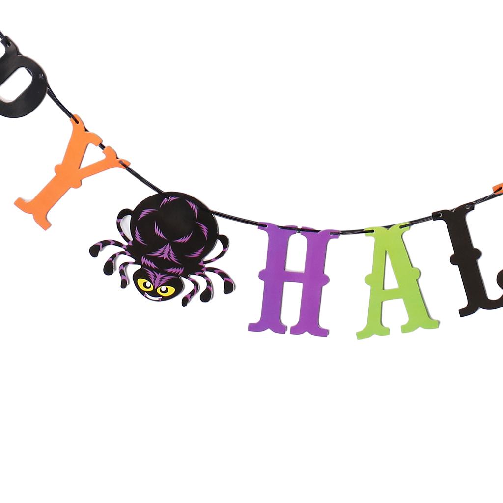 Novelty hanging banner with letters"HAPPY HALLOWEEN" and cartoon spider witch hat decoration