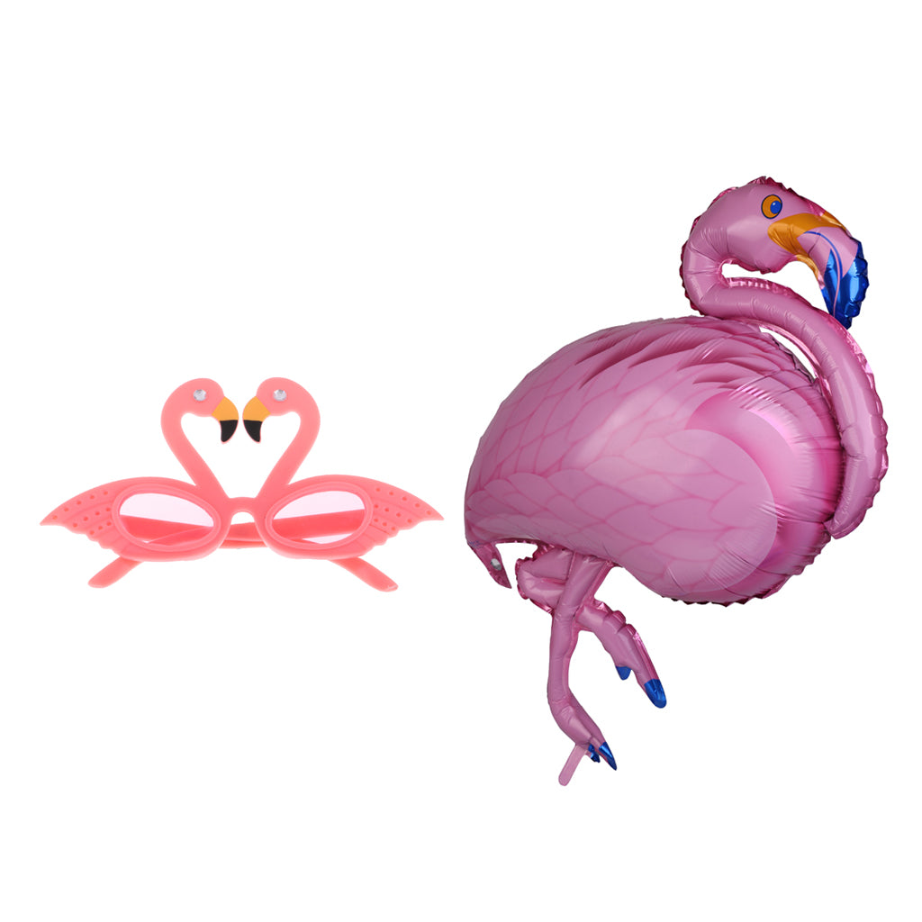 Funny hawaiian tropical flamingo style sunglasses and large flamingo balloon set.