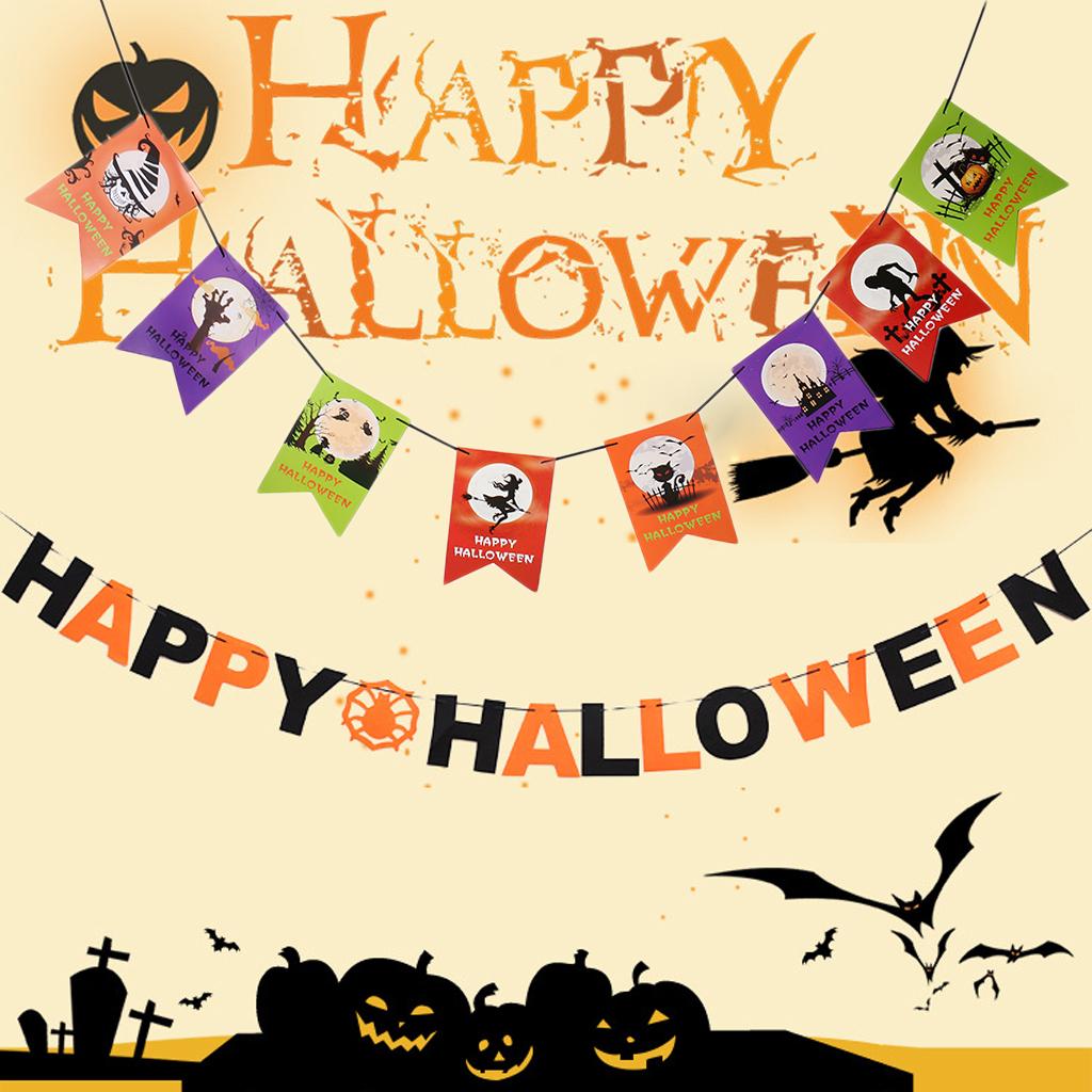 Colorful cartoon paper Halloween pennant bunting banner garland hanging decoration.