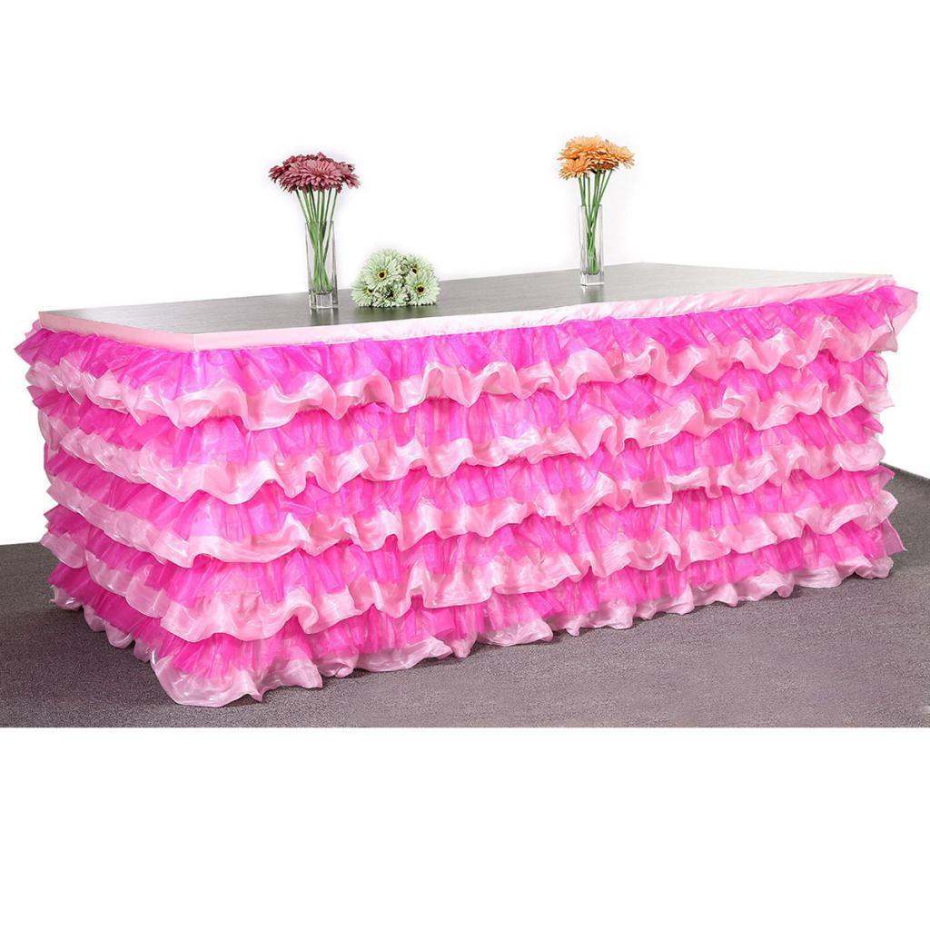 Home Wedding Decor Baby Shower Party Favors Tulle Table Skirt Table Decor Tutu Cover with Stickers Rose Red