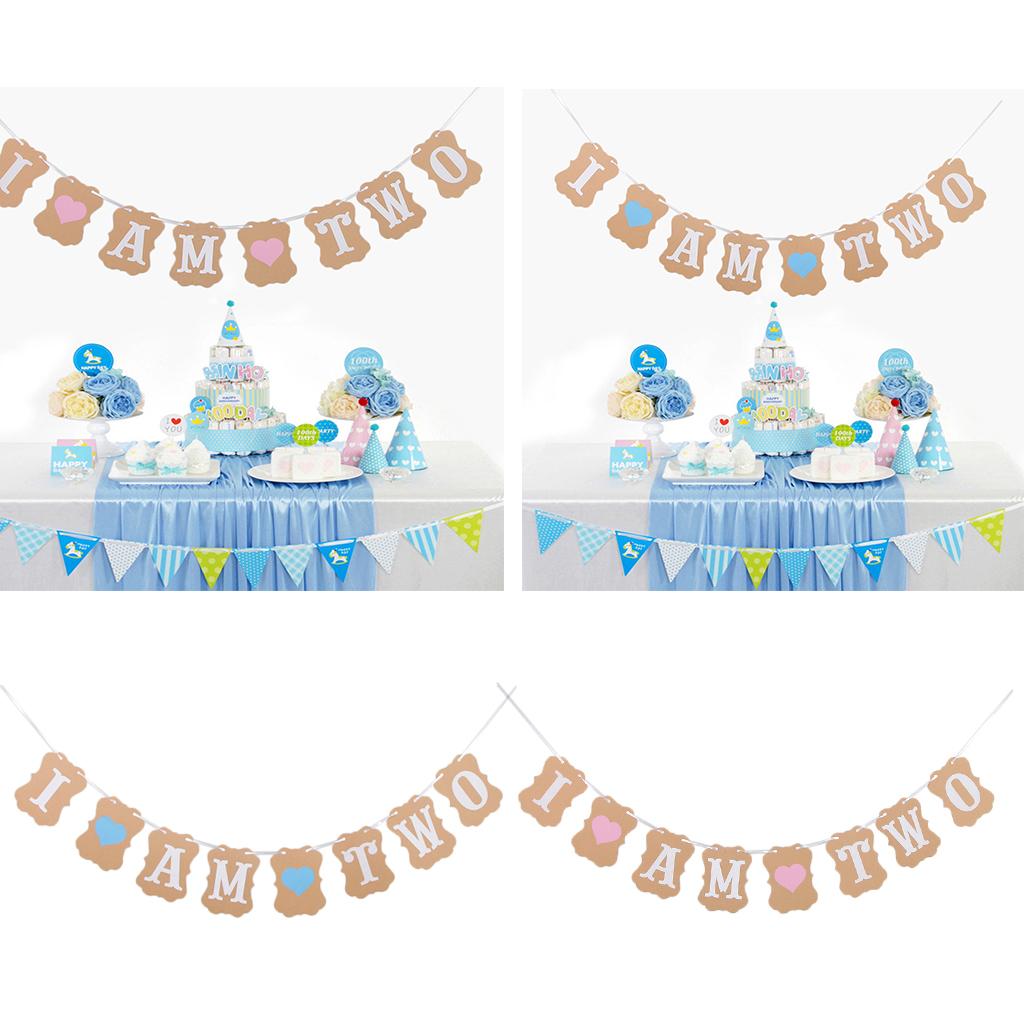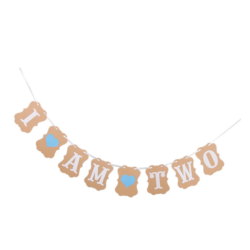 I AM TWO Bunting Banner Birthday Party Baby Shower Hanging Decorations Blue