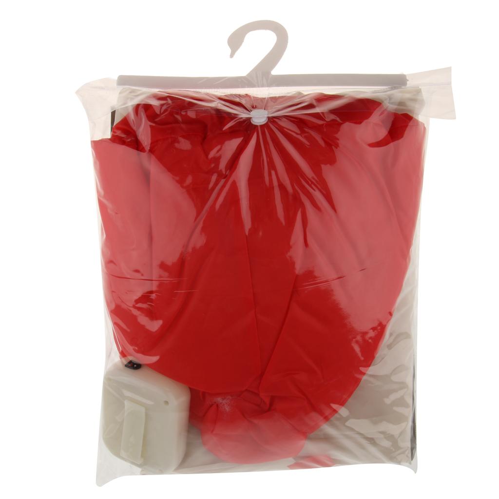 Inflatable constume with attached fan and battery case,easy to fold away for compact storage.