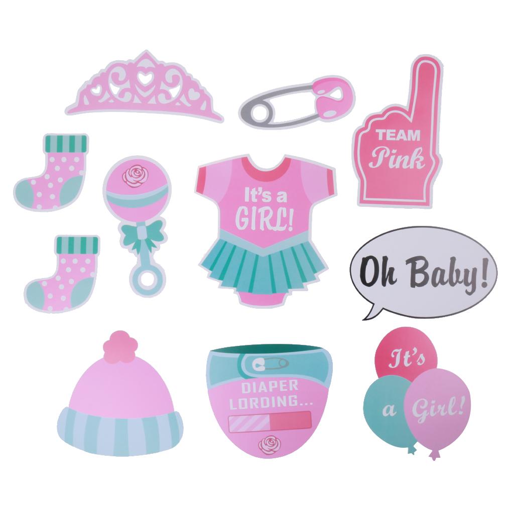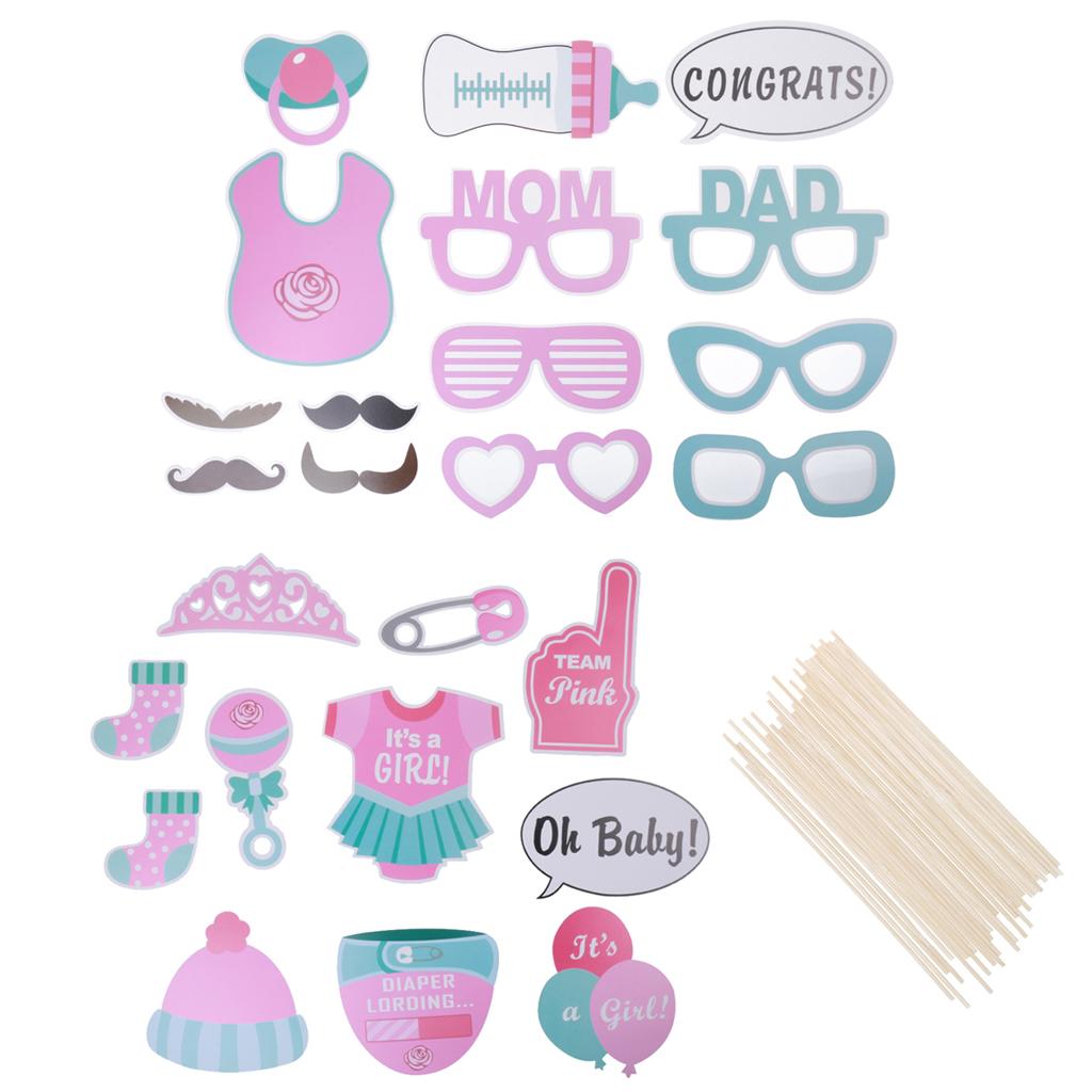 It's a GIRL Props Photo Booth Lips Glasses Crown Stick Baby Show Party Decor